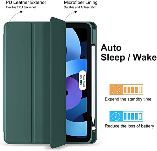 SYGA Cases for iPad Air 4 10.9 Inch A2316 A2324 A2325 A2074 Flip Cover with Pencil Holder, Dark Green