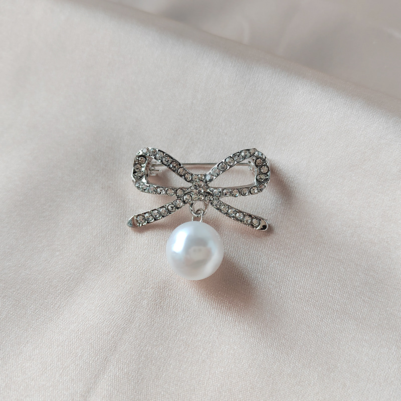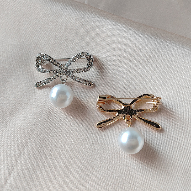 2022 Japanese and Korean trendy style anti-light pearl brooch alloy rhinestone butterfly brooch clothing accessories buckle