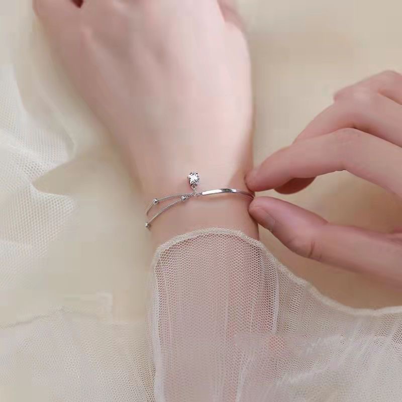 2022 new bright silver-plated five-pointed star double-layer niche bracelet women's ins girlfriends hand decoration cold wind gift