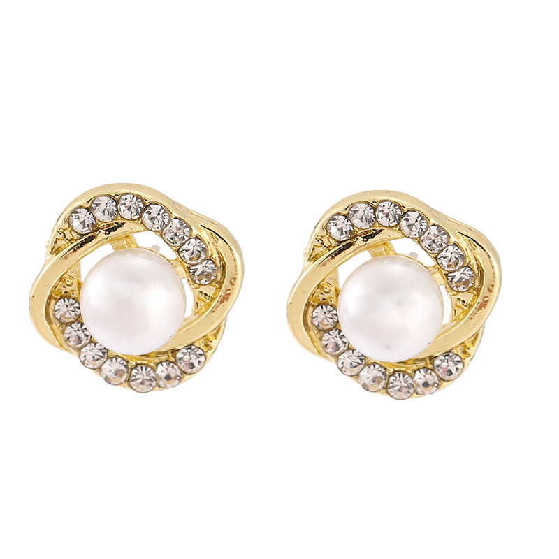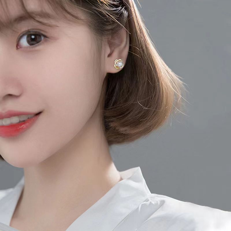 2022 New Elegant Temperament Design Earrings Exquisite Small Fashion Square Rhinestone Pearl Color Matching Earrings