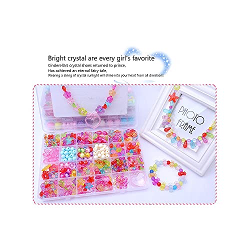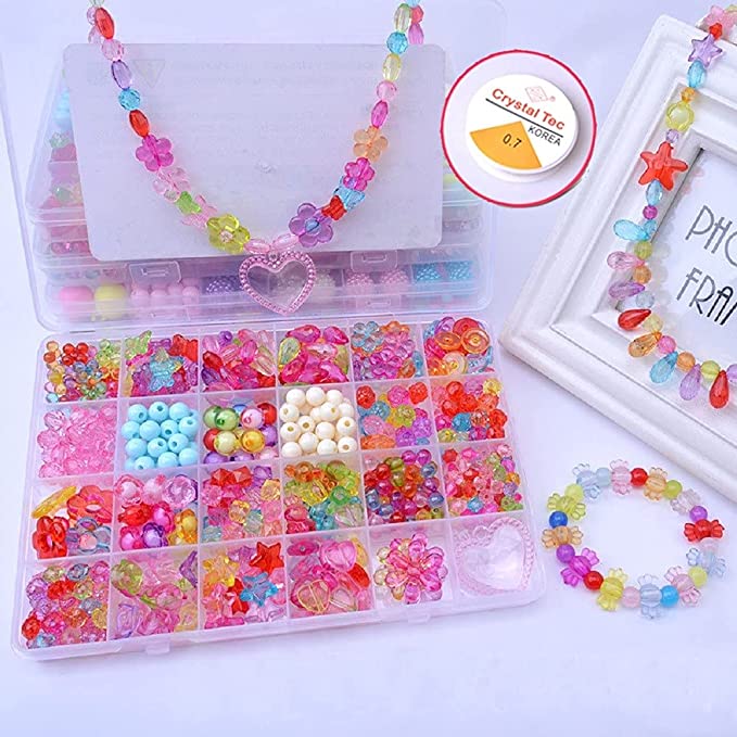 Jewellery Making Bead Kit: 24 Grid Lacing & Stringing Beads, about 500 pcs colorful craft beads in various shape and 1 elastic cord, this fabulous toy recommend for kids children girls boys 3+ years old. Creative necklace kit DIY design leading a lot of fun when playing it. Don't miss it!