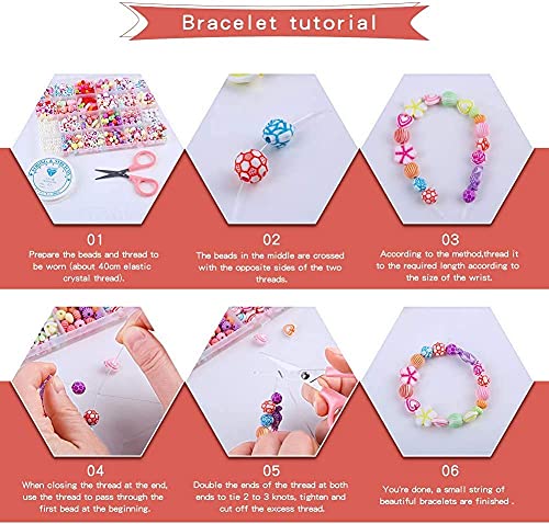 Promote Child's Imagination: Kids can create various shapes with their imagination with this beads set. Making hairbands(the unique style in the market), bracelets, necklaces, and rings with hundreds of different combinations to promote kids perception and discrimination of various colors, enhance their aesthetic appeal and visual senses. All you need to do is just by threading the beads through a rope to make necklace/bracelet/hair hoop/ring/sweater chain/crafts set as you like