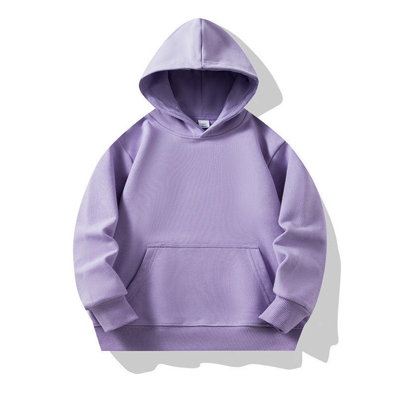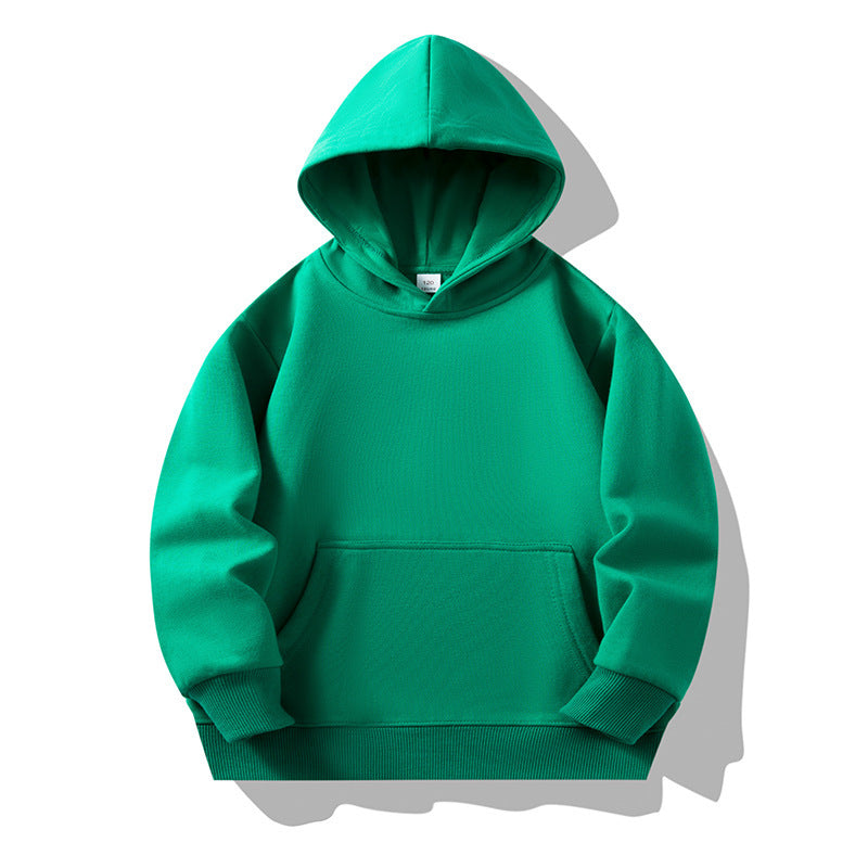 2023 autumn patch pocket hooded long-sleeved children's sweater baby bottoming shirt medium and large boys and girls trendy thin section solid color