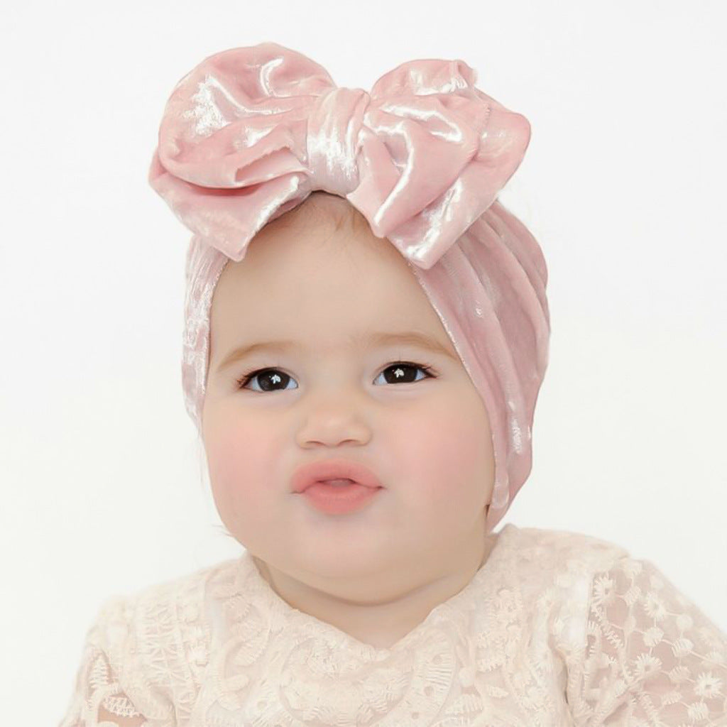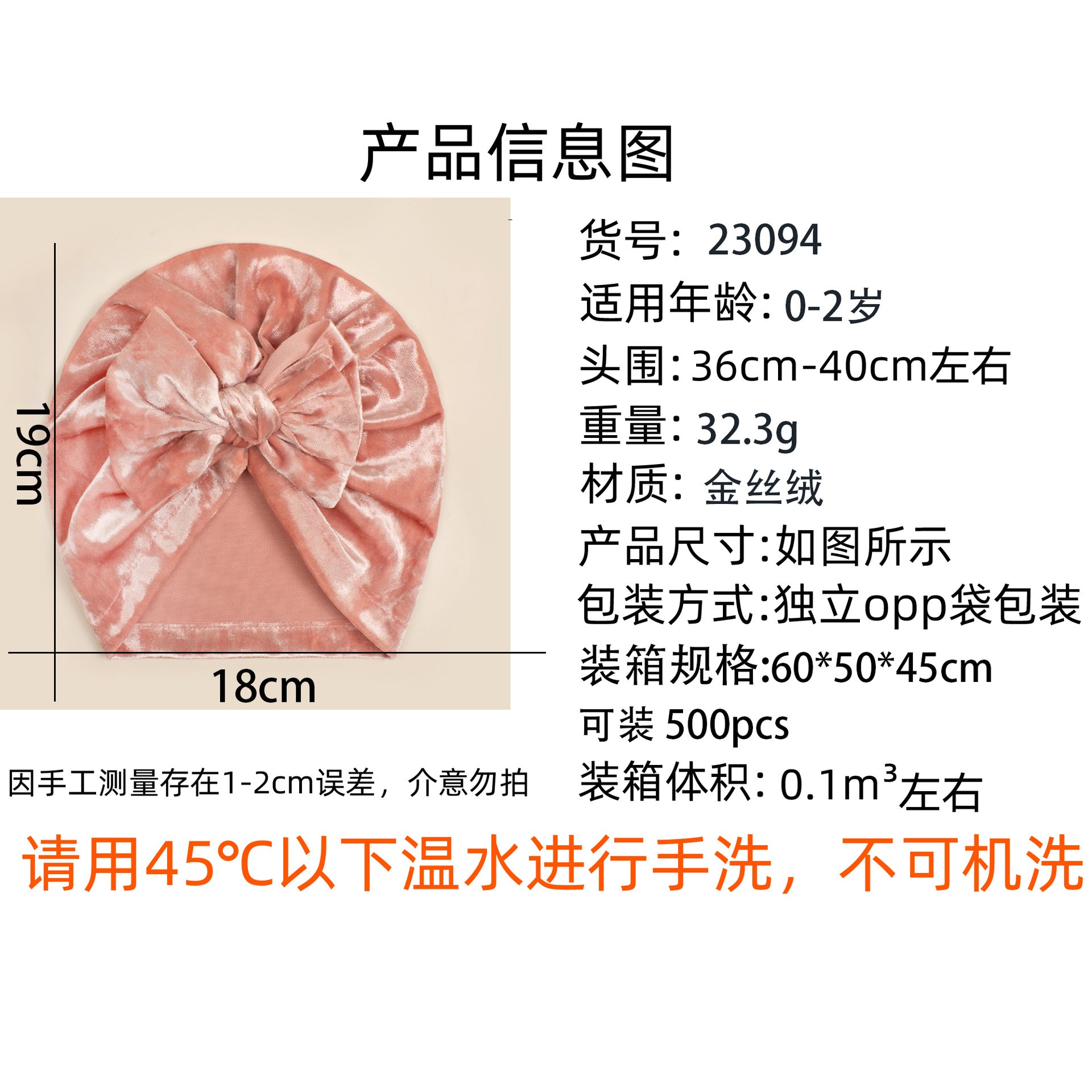 2023 European and American autumn new baby gold velvet bow hat children's warm and delicate hat baby hat