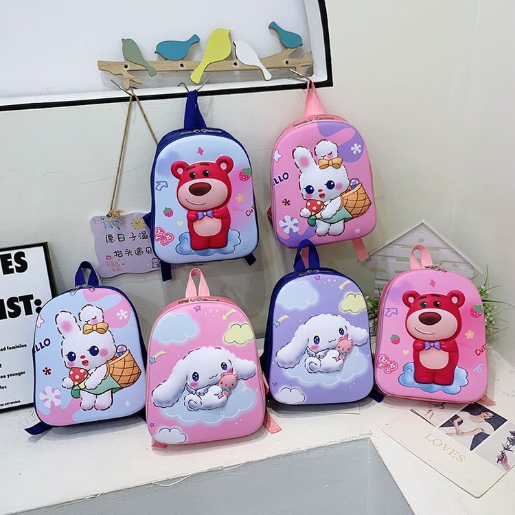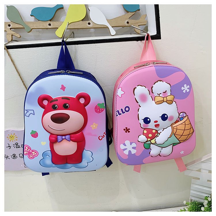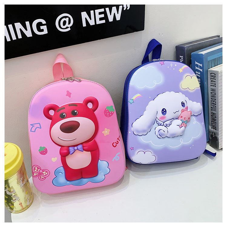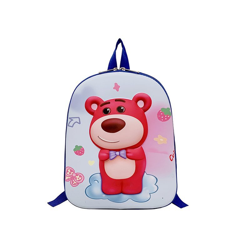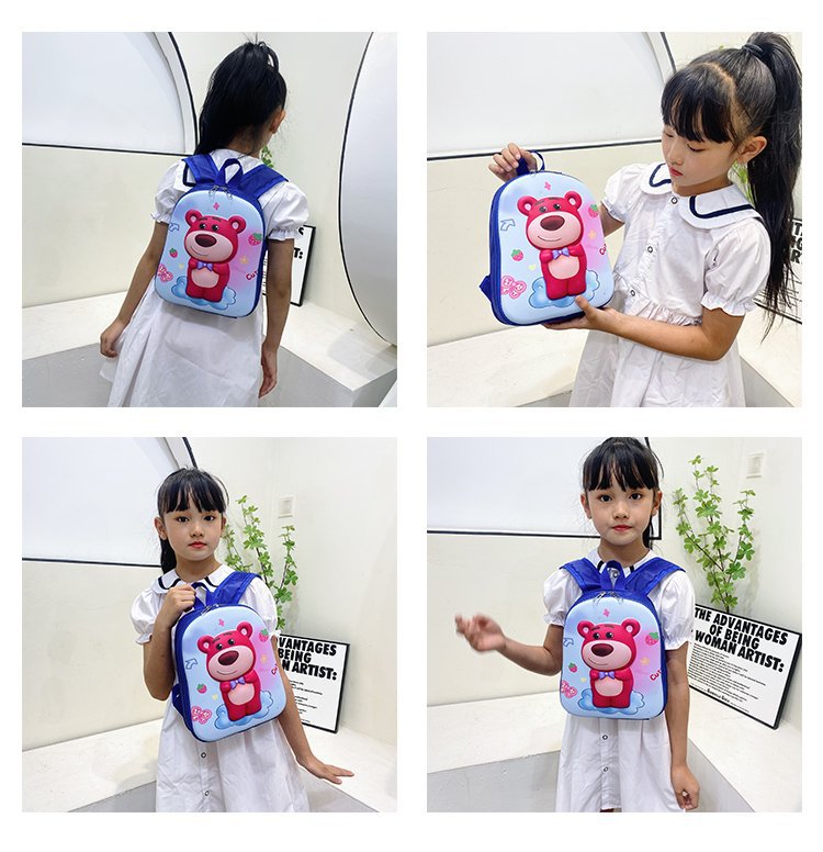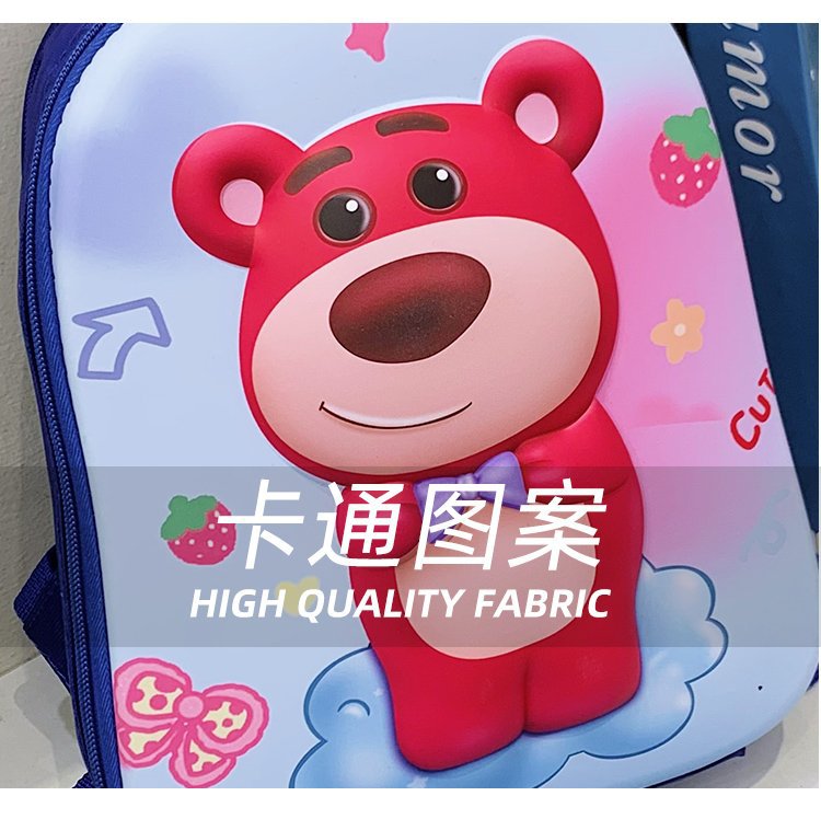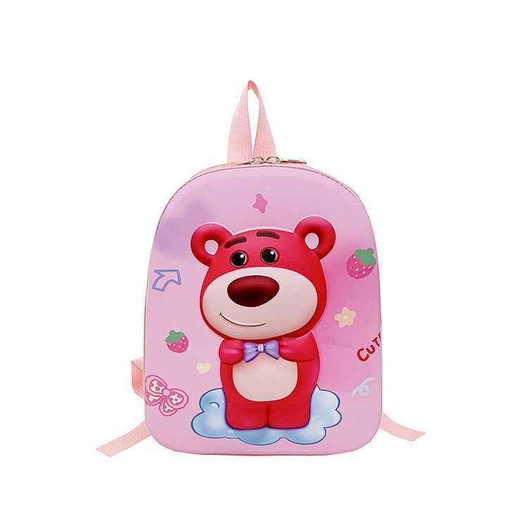 2023 New Strawberry Bear Kindergarten Cartoon Cute Baby Backpack Boys and Girls 3-6 Years Old Hard Shell Bag