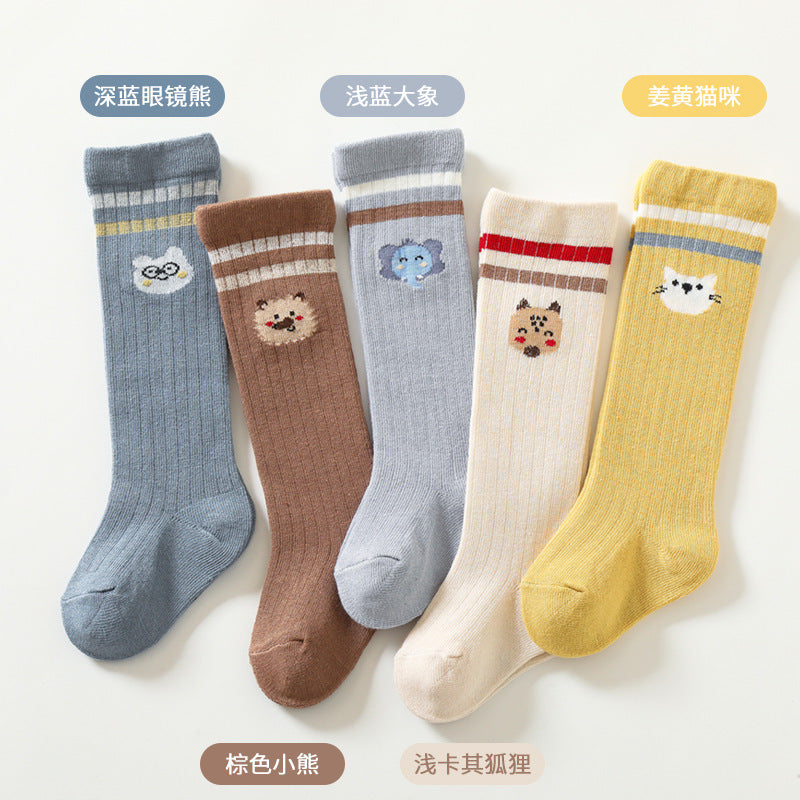 2024 autumn and winter new Korean version baby long socks college style children's calf socks striped animal student high socks