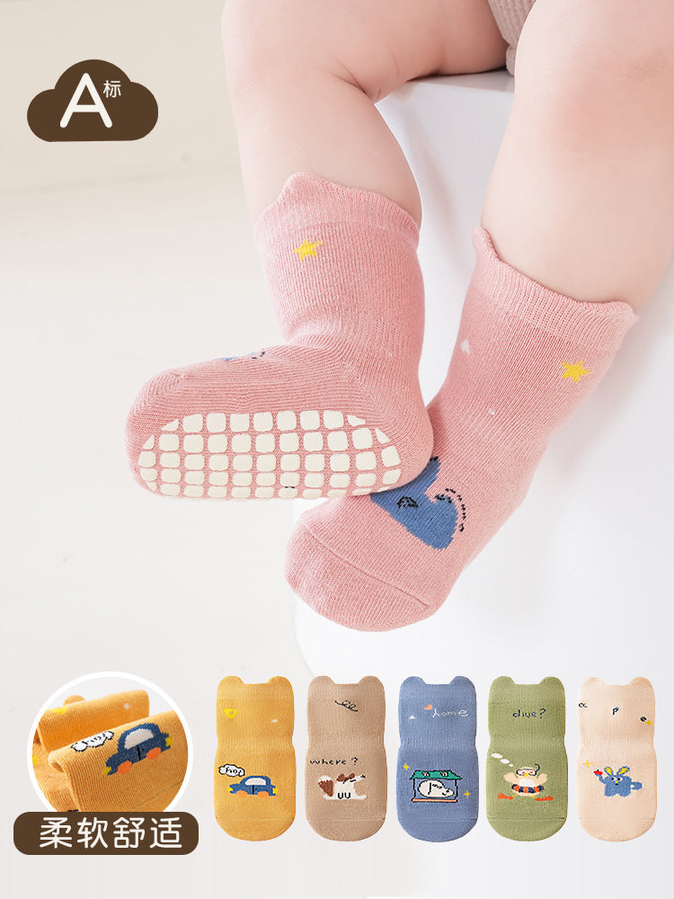 2023 Baby Cartoon Floor Socks Baby Toddler Socks Autumn and Winter Cotton Breathable Non-slip Bottom Children's Socks Trampoline Socks S size 0-1 years old M size 1-3 years old