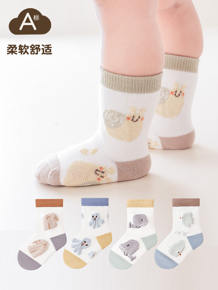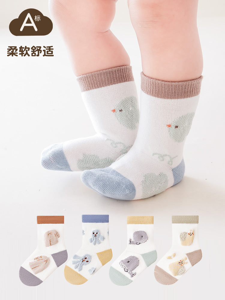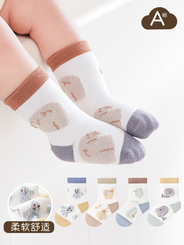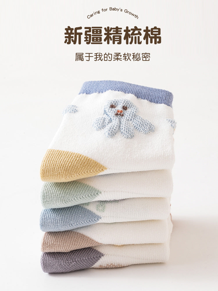 25 Spring embossed jacquard newborn socks Class A pure cotton baby socks wholesale Korean cartoon baby mid-tube socks