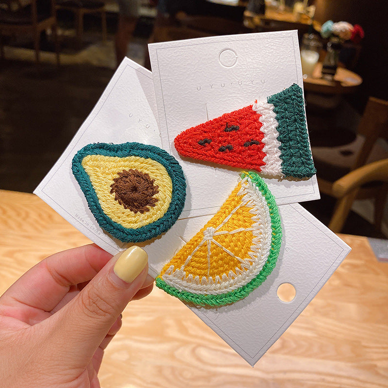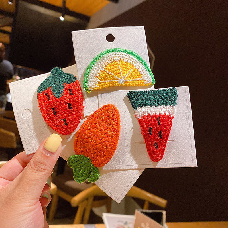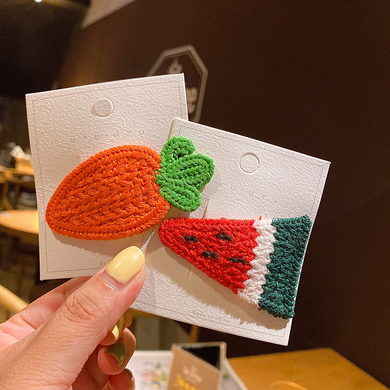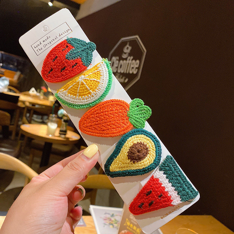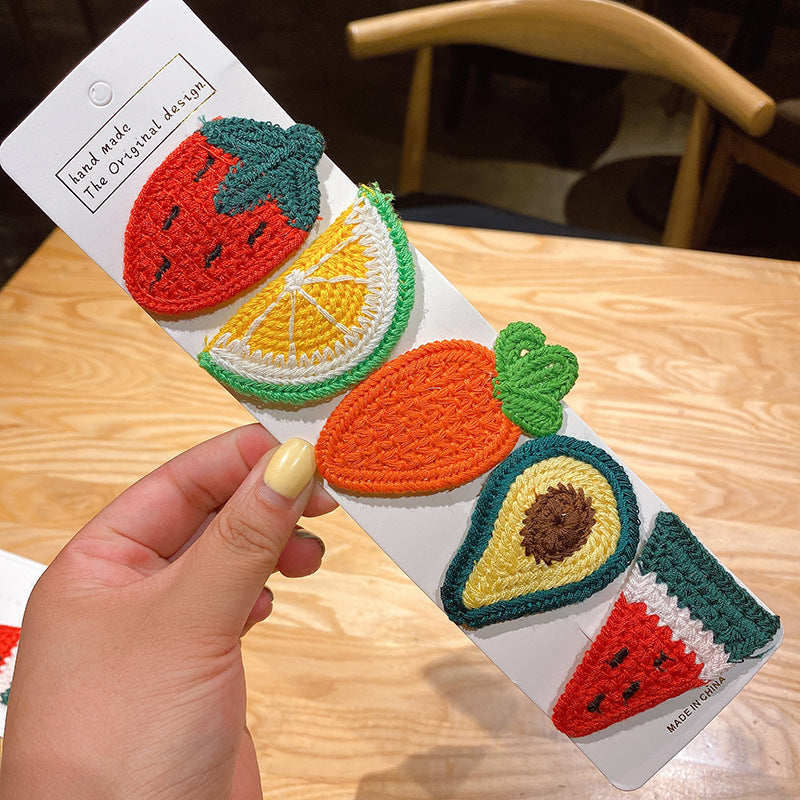 5-piece cardboard Korean version of Xuanya style children's knitted fruit hairpin girl baby side bangs broken hairpin