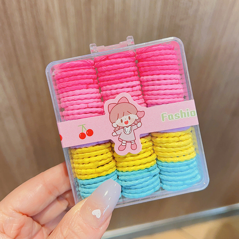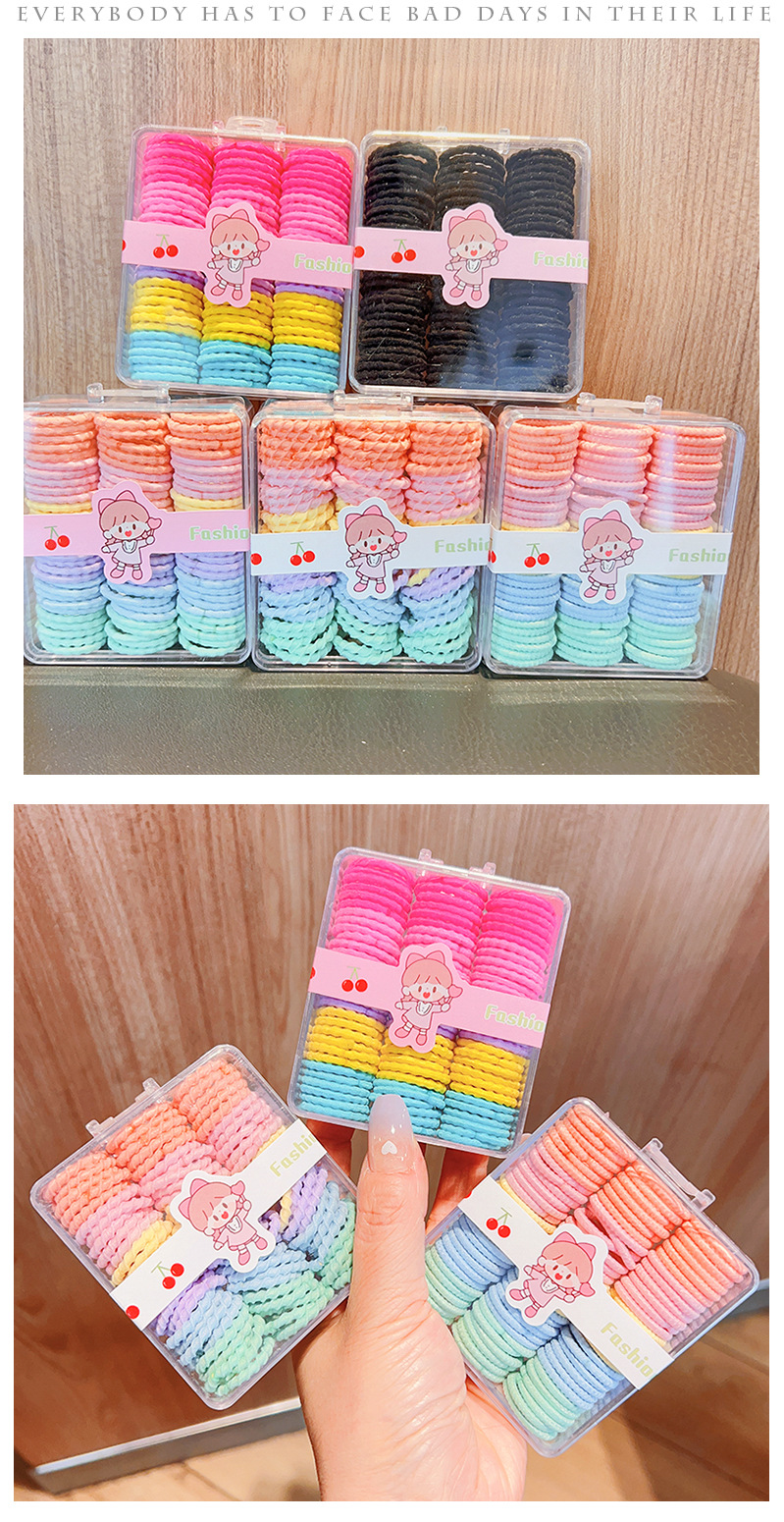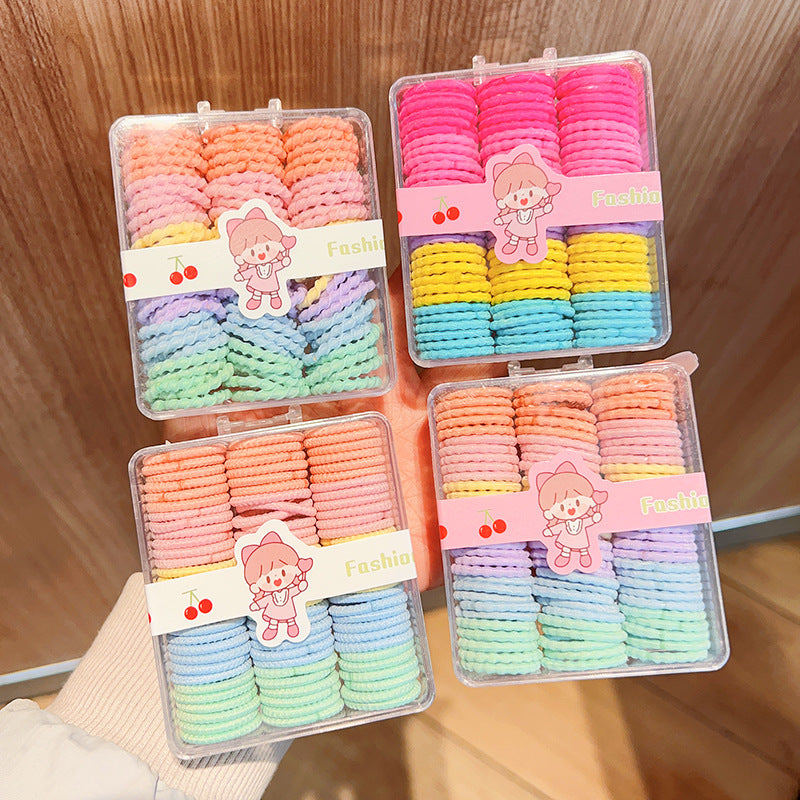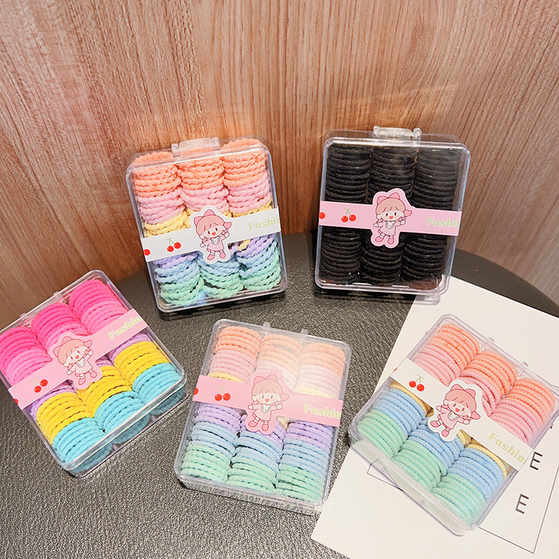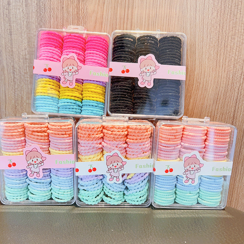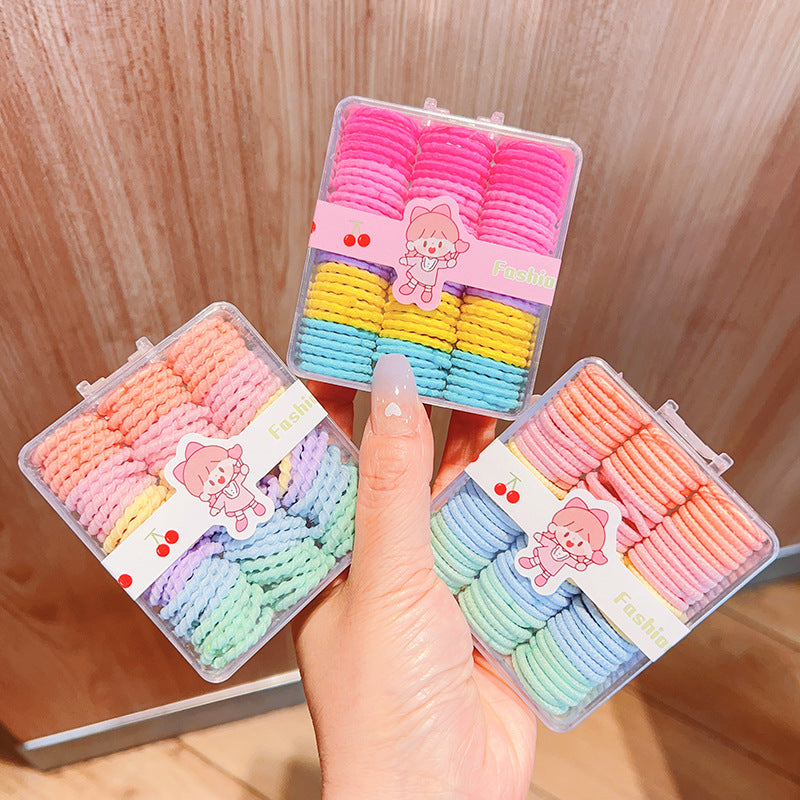 90 cute boxed seamless small rubber bands candy-colored children's baby hair rings high elastic hair tie wholesale
