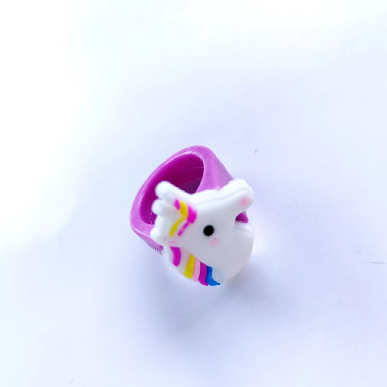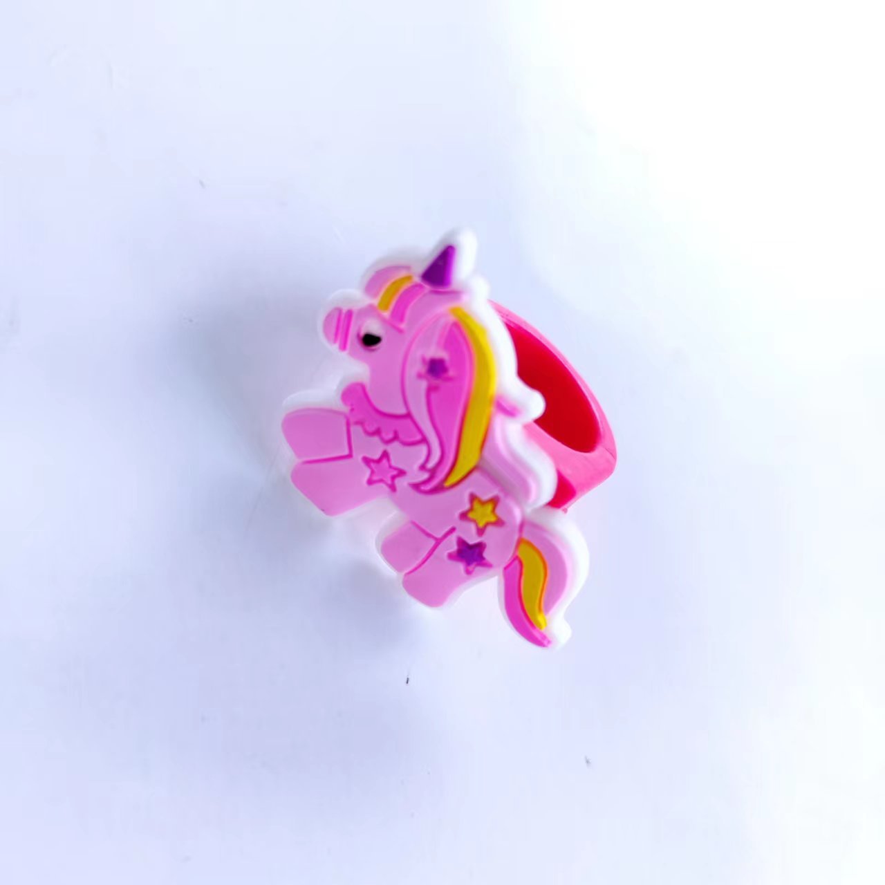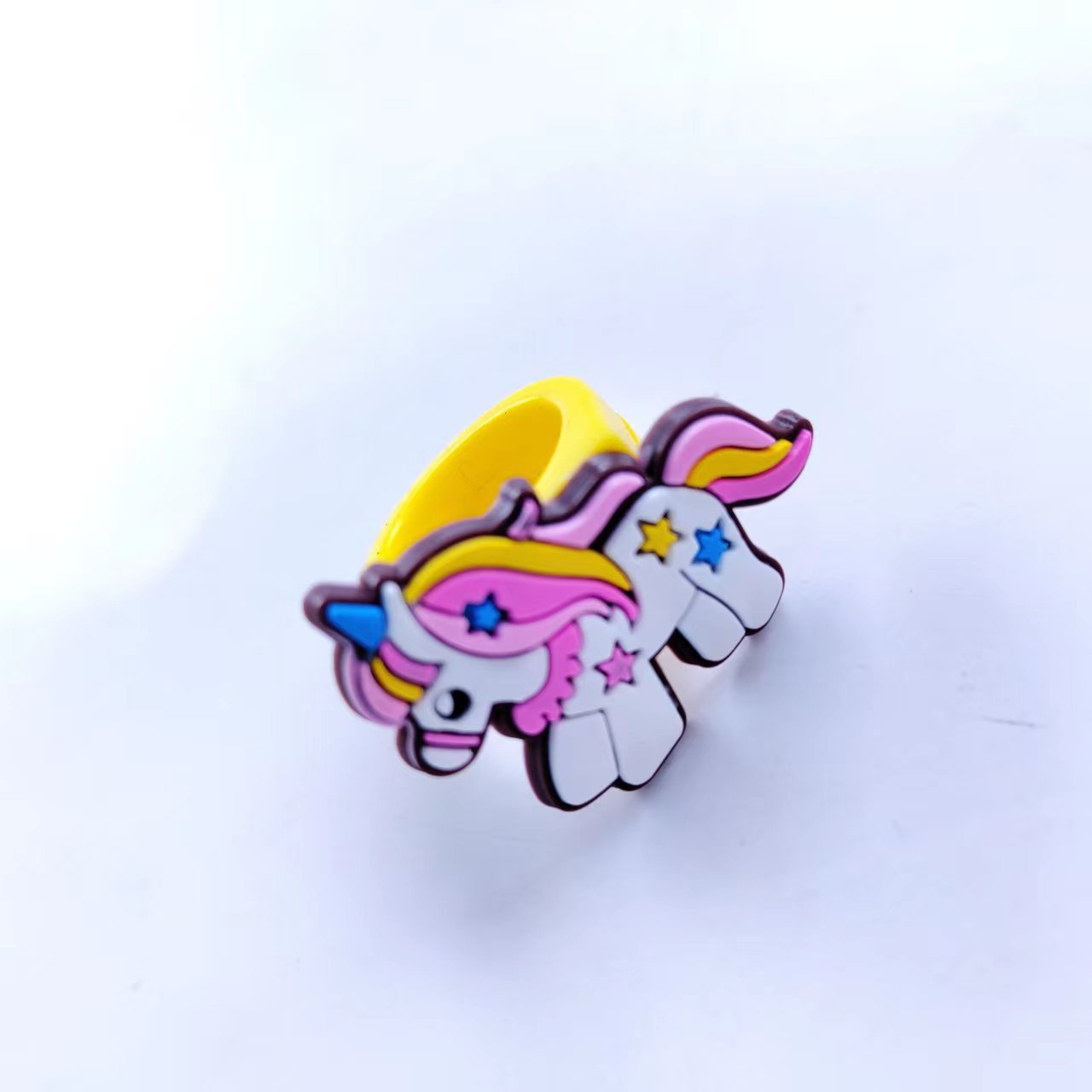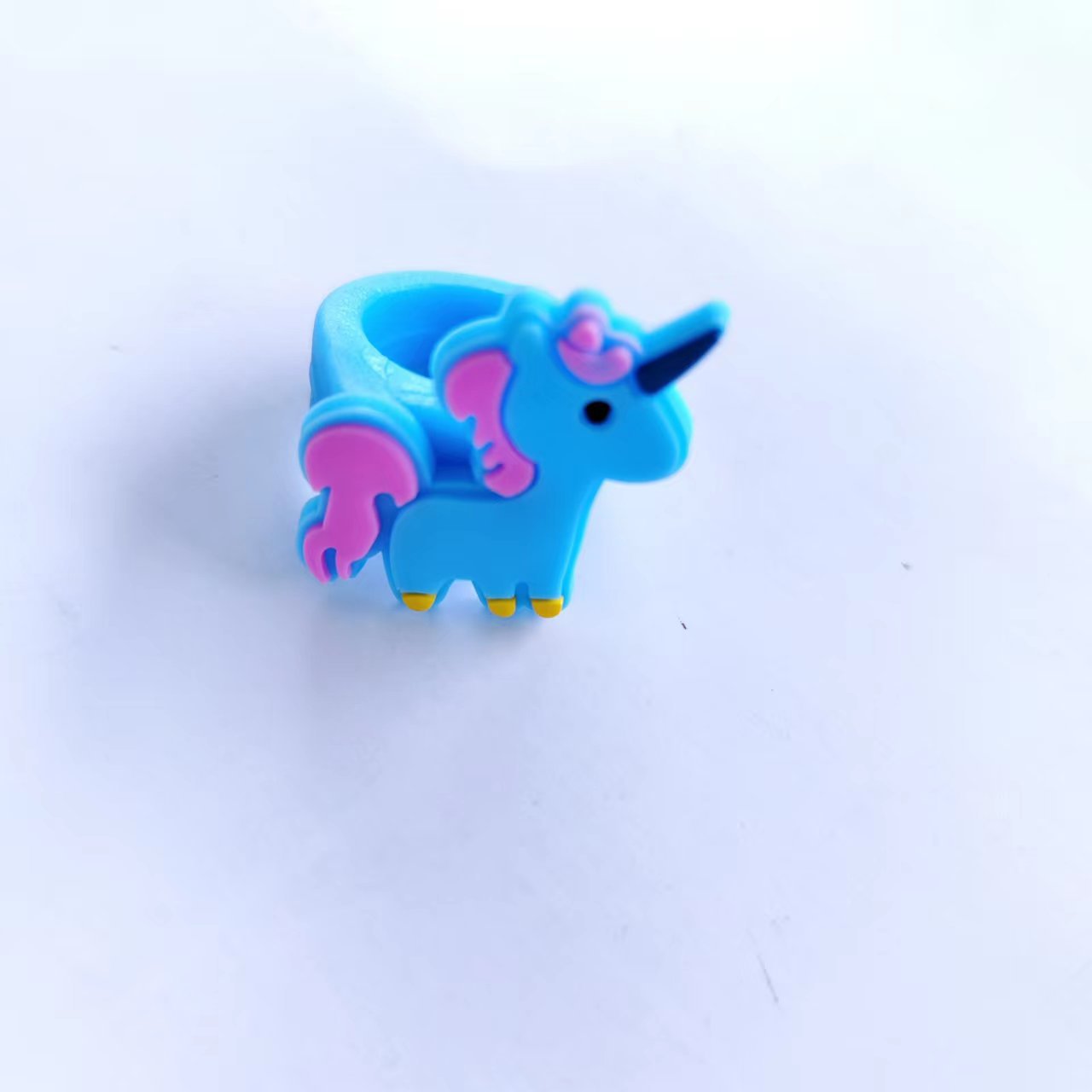 Amazon Children's Cartoon Unicorn Ring PVC Soft Rubber Finger Ring Rainbow Toy Baby Gift Wholesale