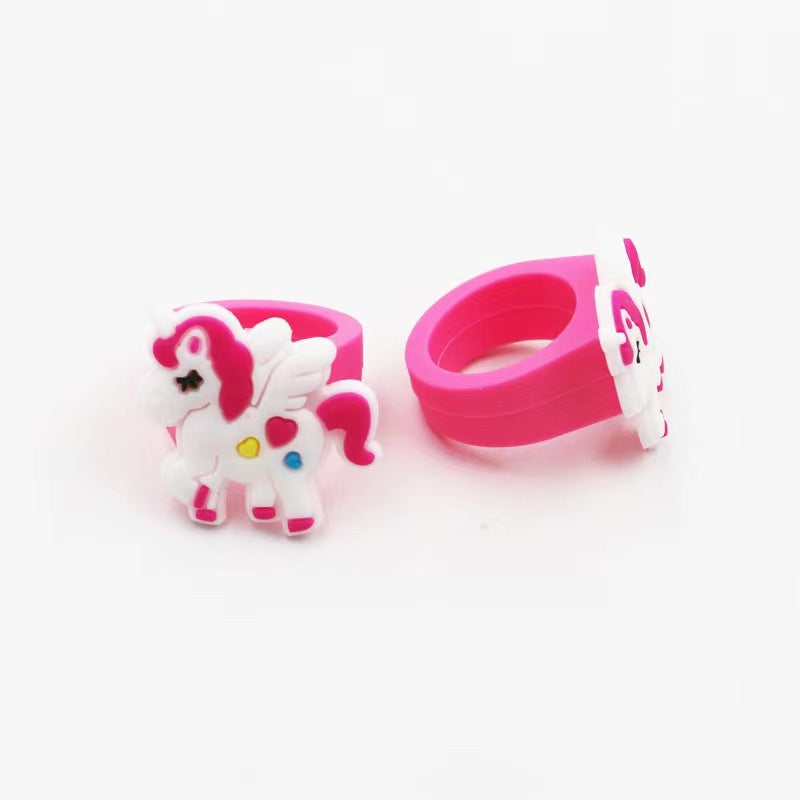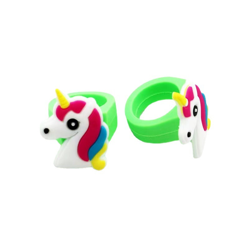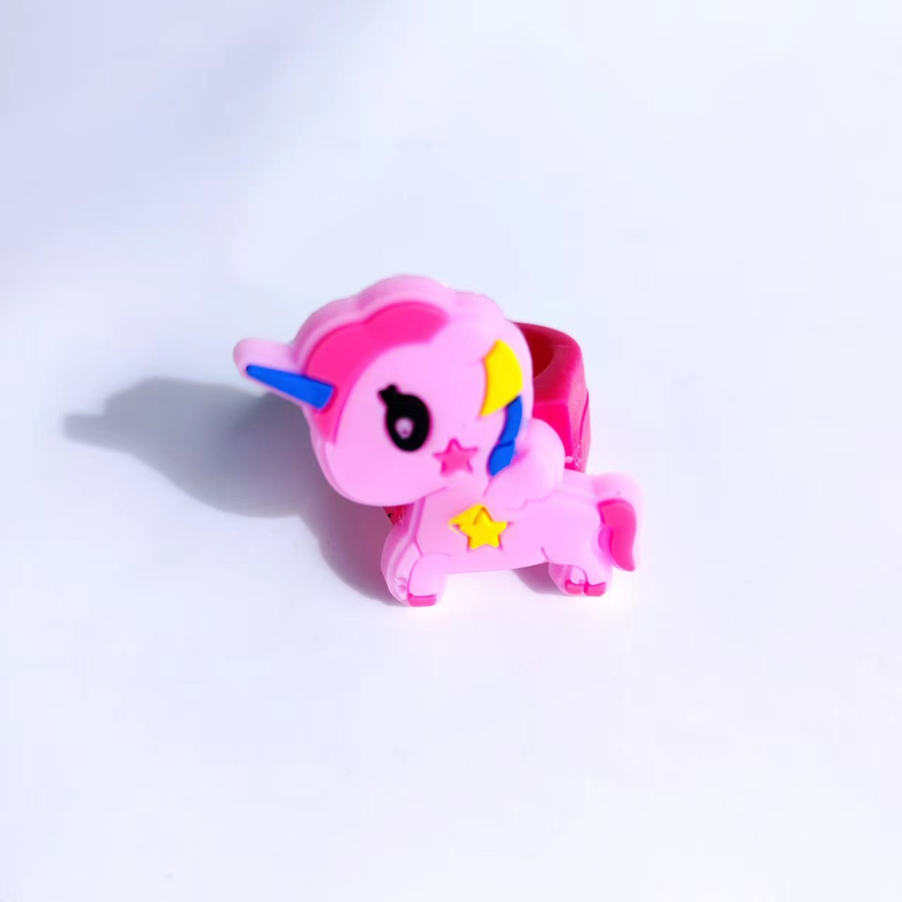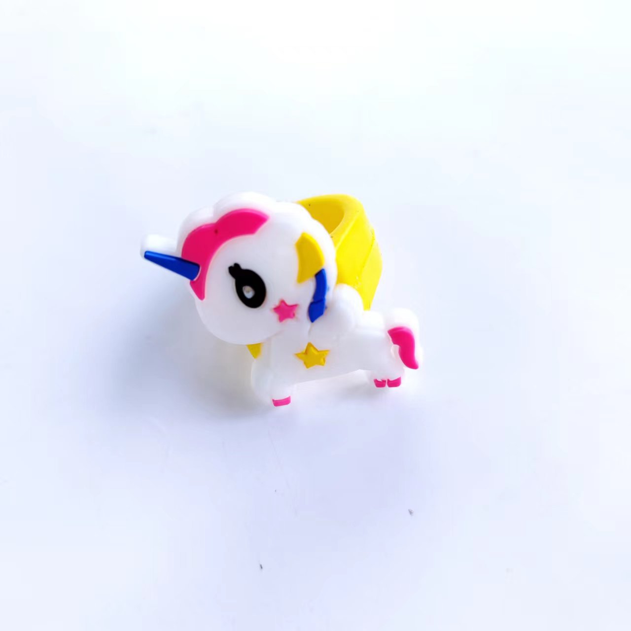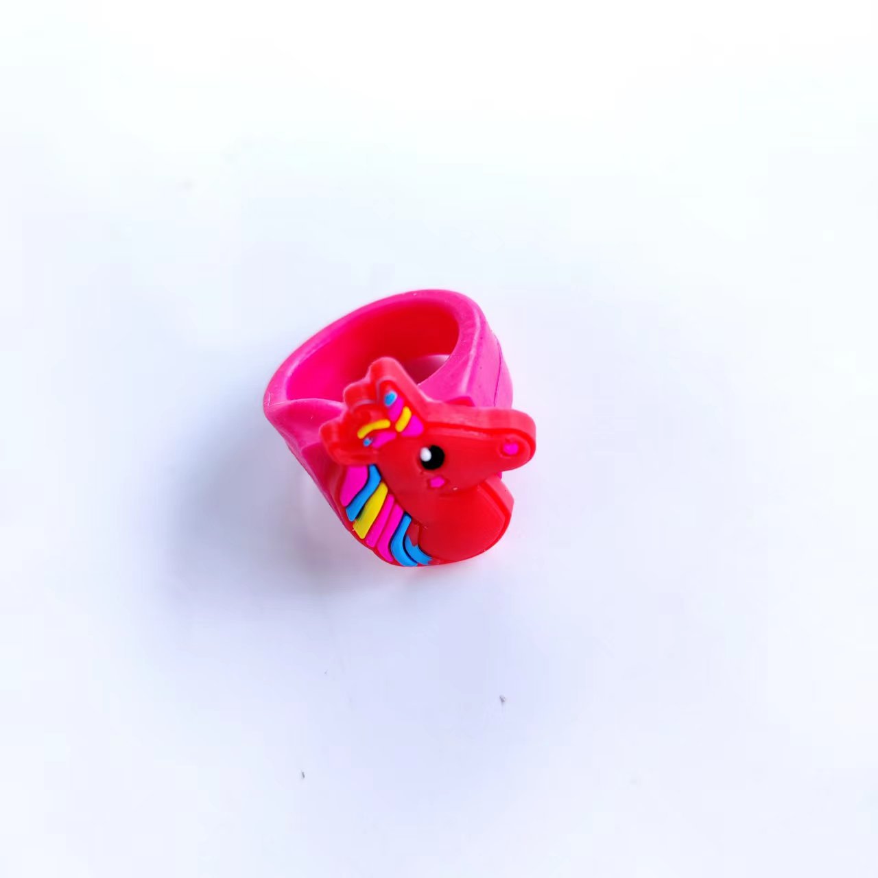 Amazon Children's Cartoon Unicorn Ring PVC Soft Rubber Finger Ring Rainbow Toy Baby Gift Wholesale