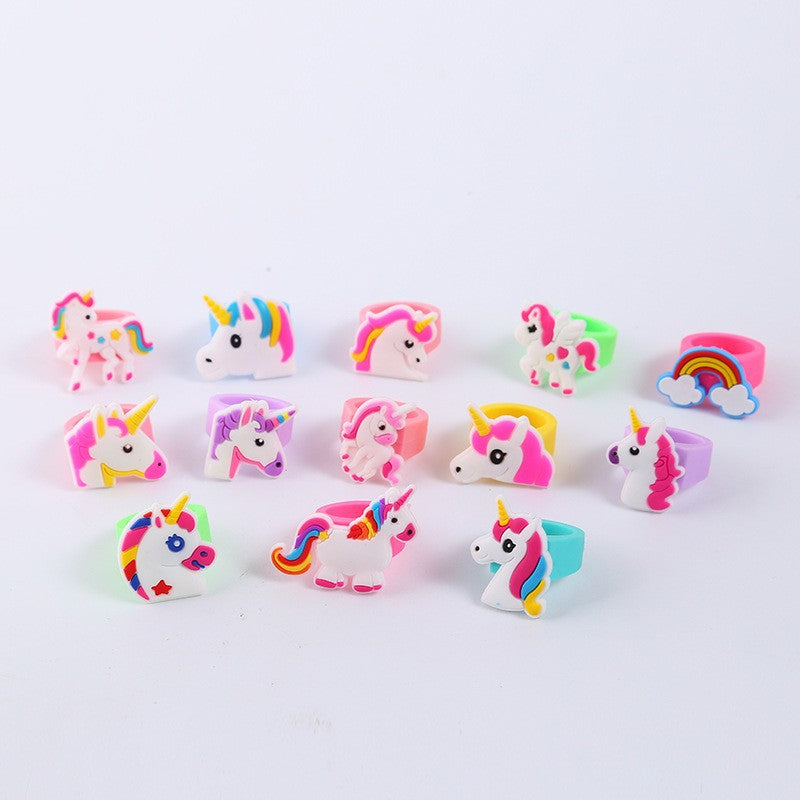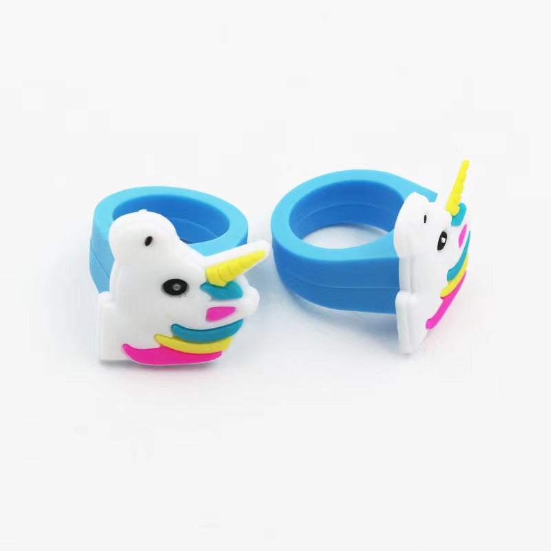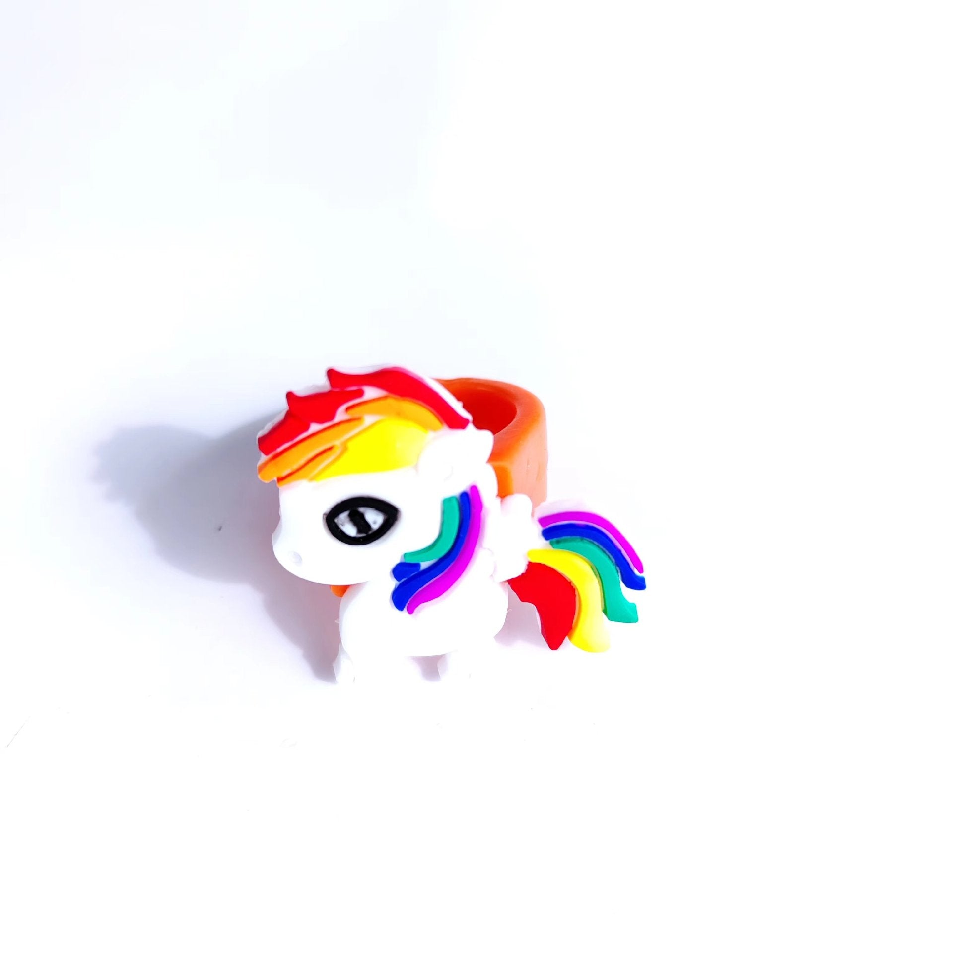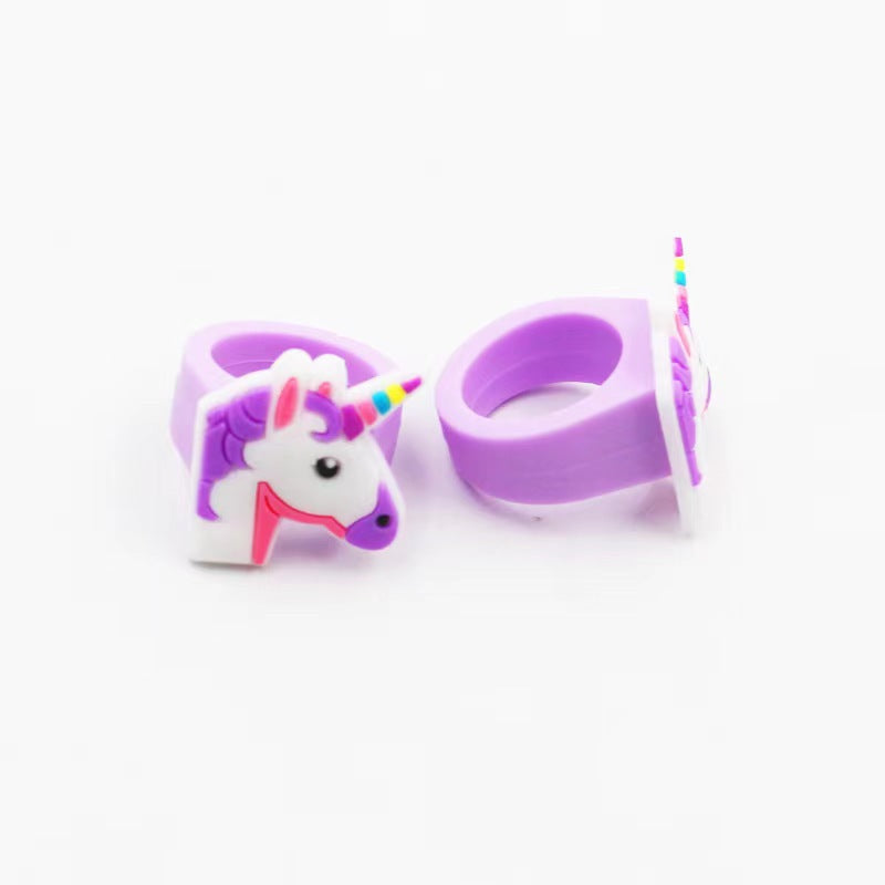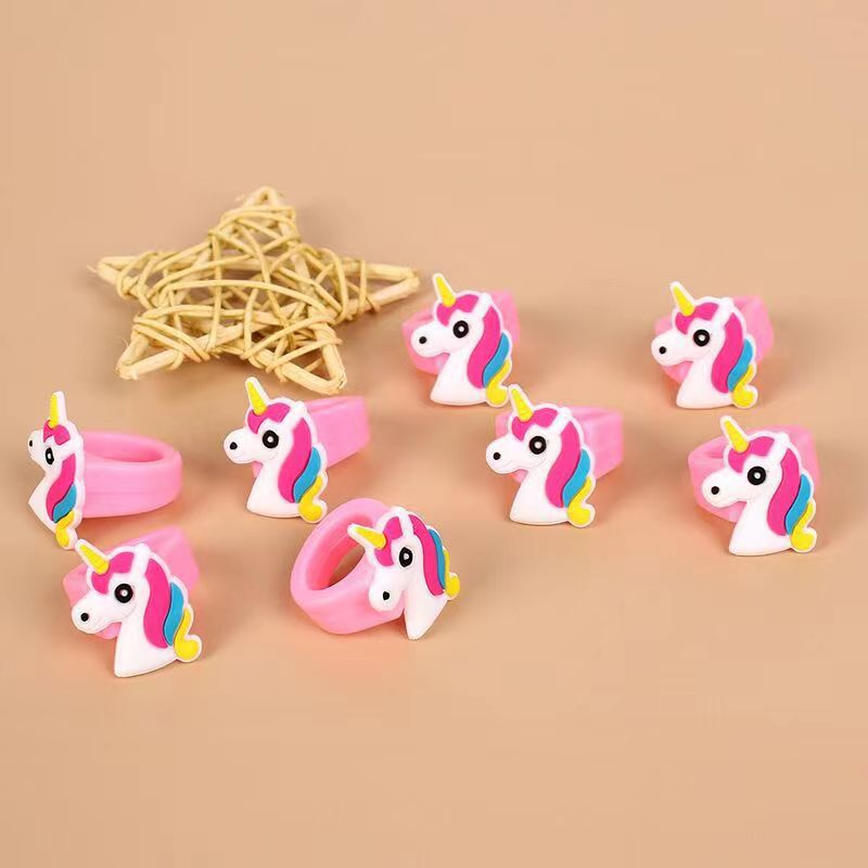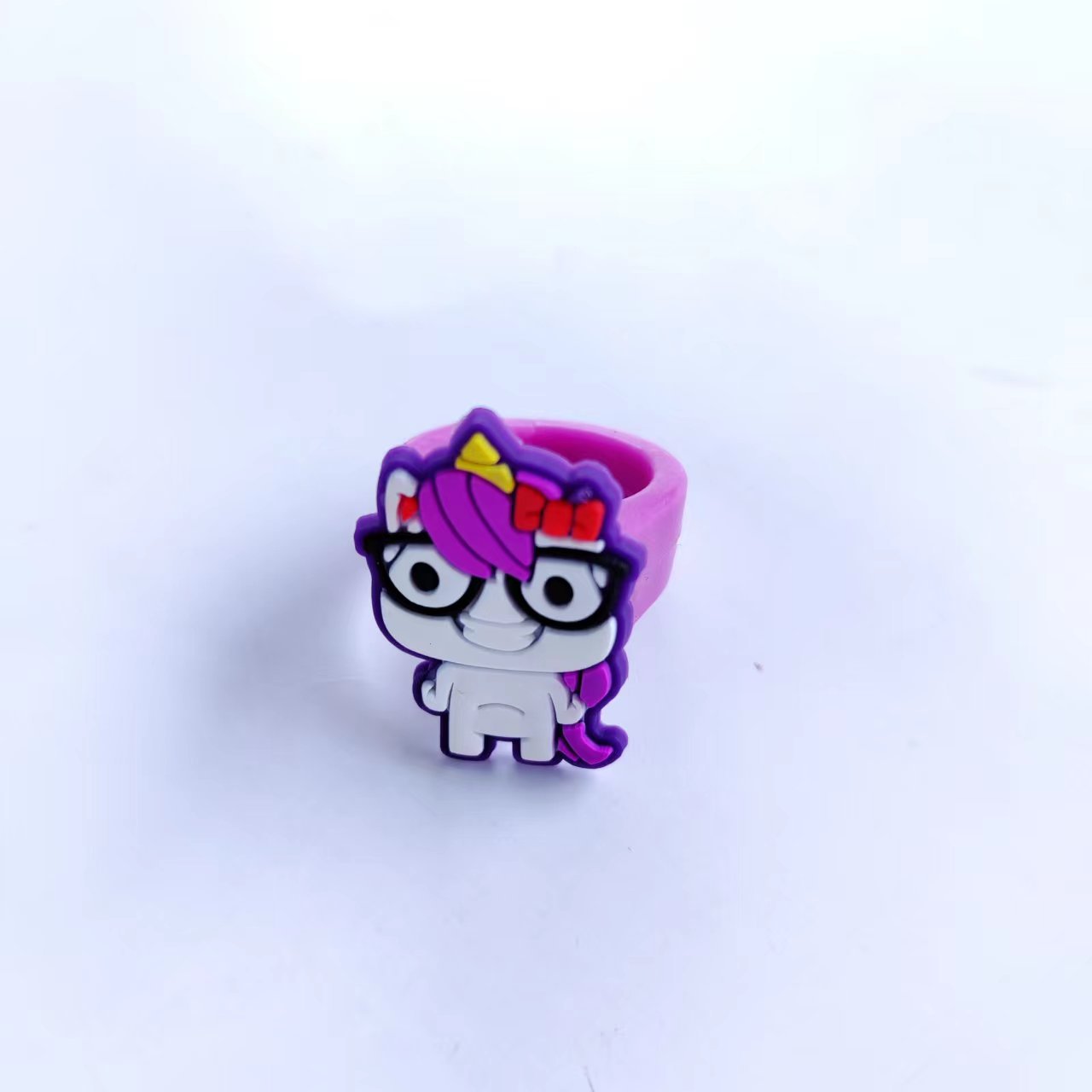 Amazon Children's Cartoon Unicorn Ring PVC Soft Rubber Finger Ring Rainbow Toy Baby Gift Wholesale