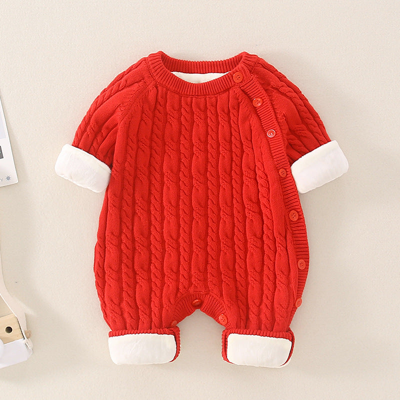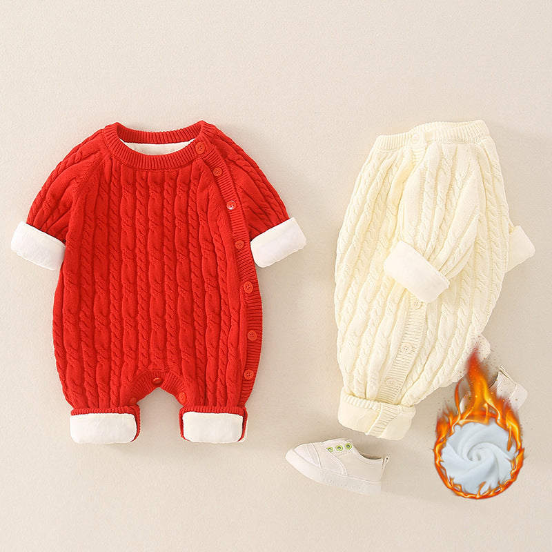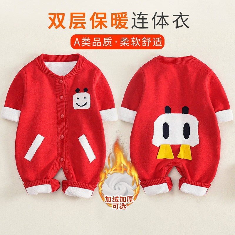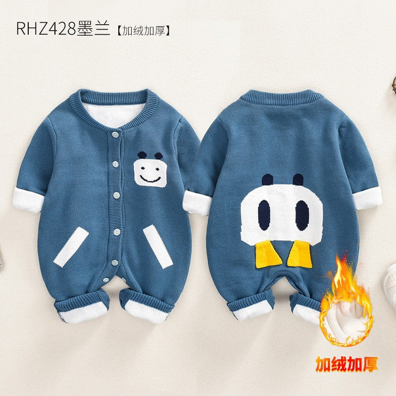 Autumn and winter baby clothes jumpsuit newborn baby girl sweater suit autumn men's knitted sweater coat clothes with fleece
