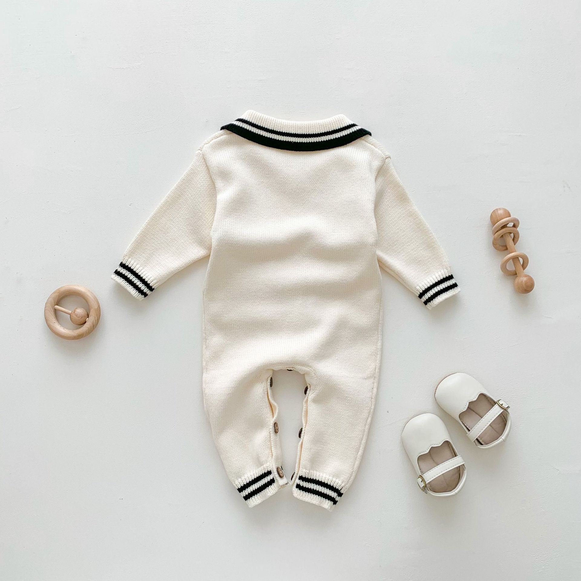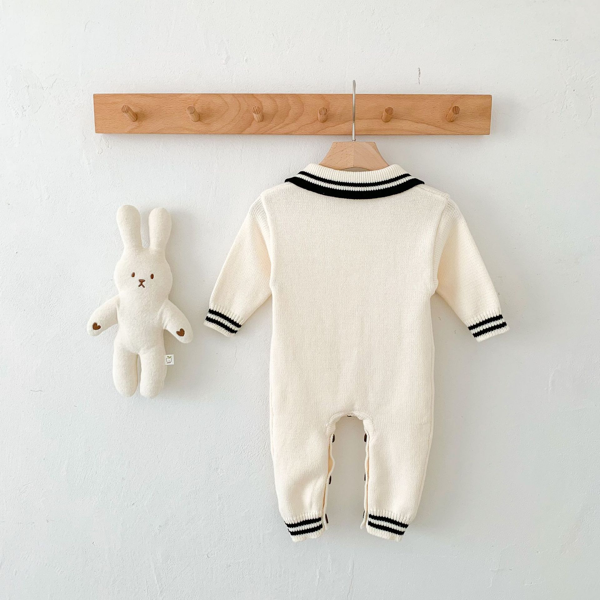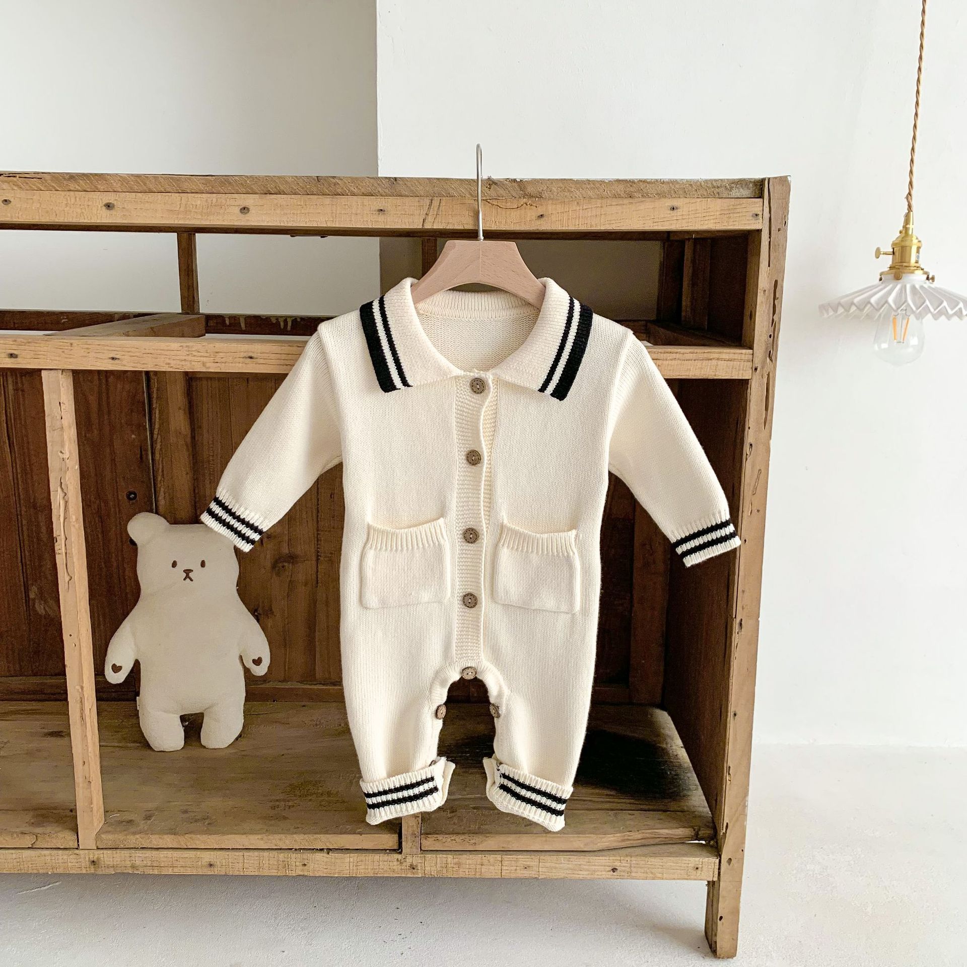 Baby clothes spring newborn male baby jumpsuit full moon hundred days gentleman romper knitted sweater spring and autumn climbing clothes