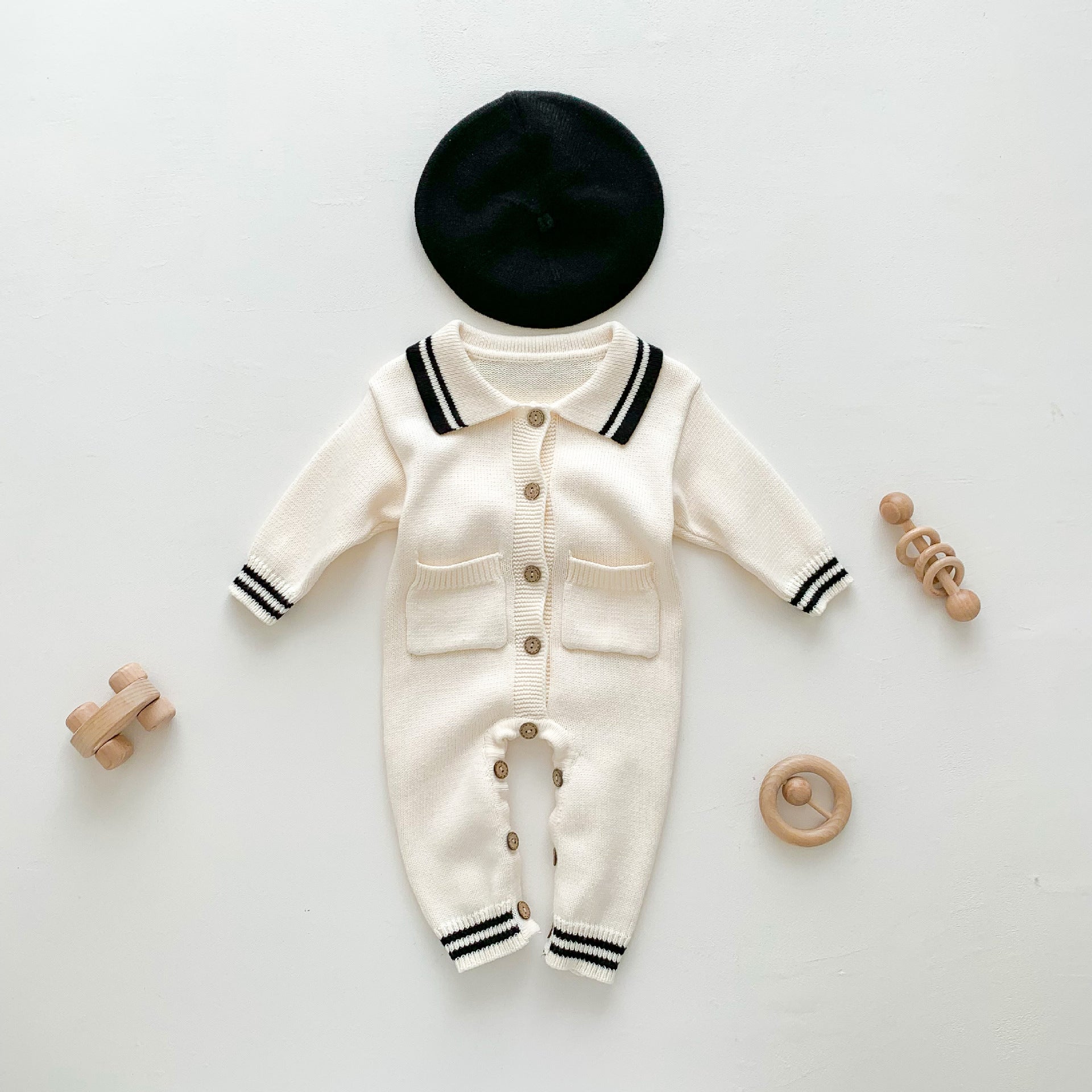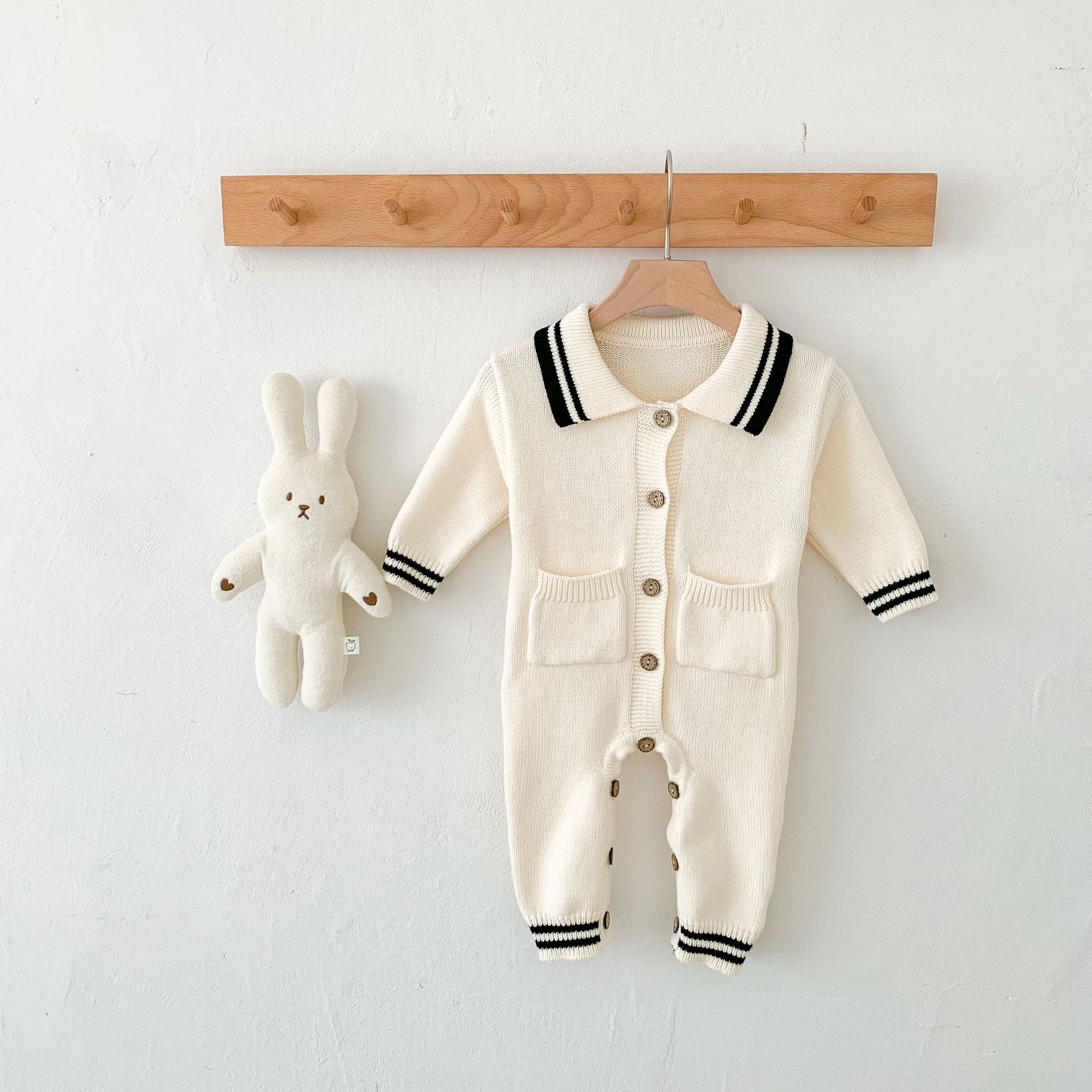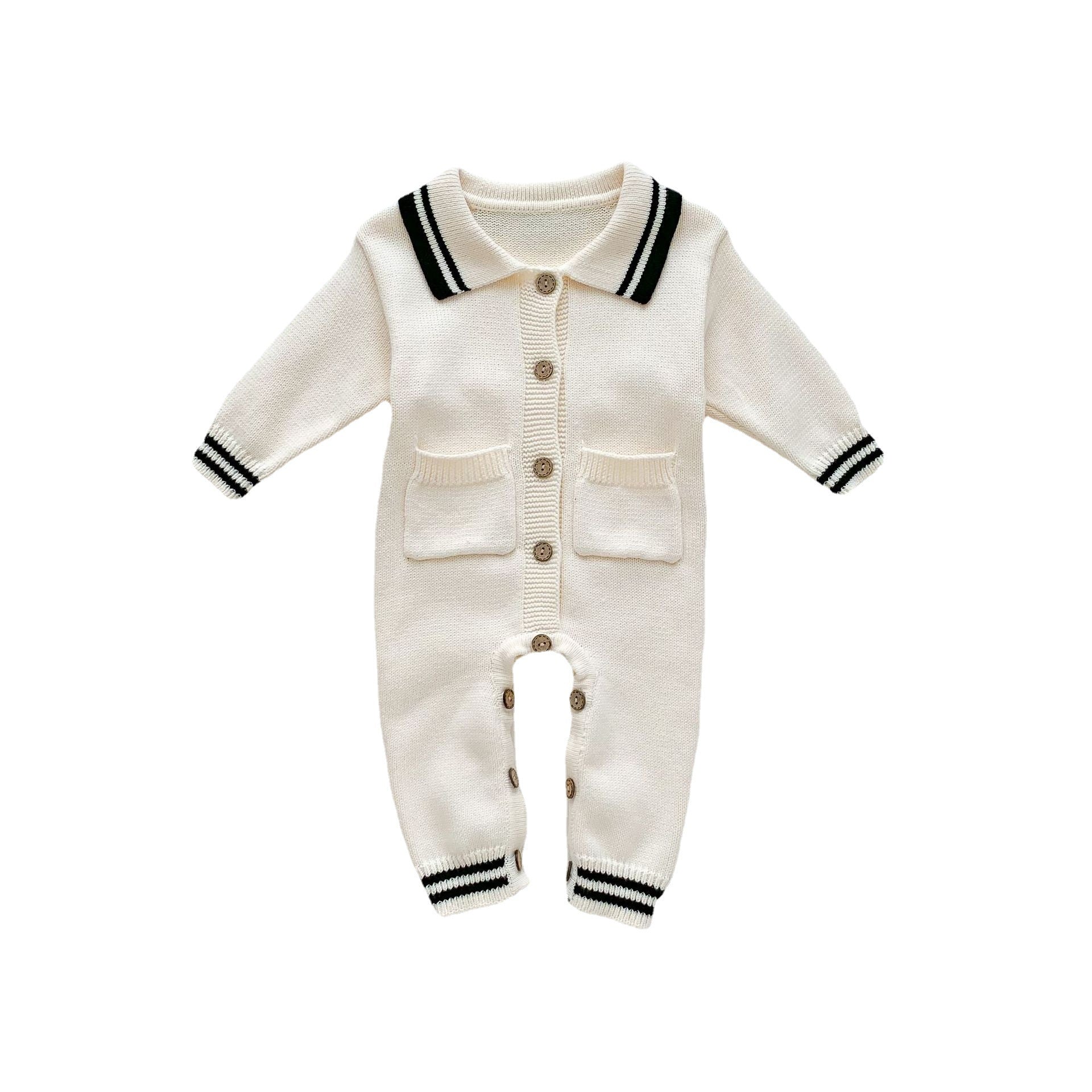 Baby clothes spring newborn male baby jumpsuit full moon hundred days gentleman romper knitted sweater spring and autumn climbing clothes