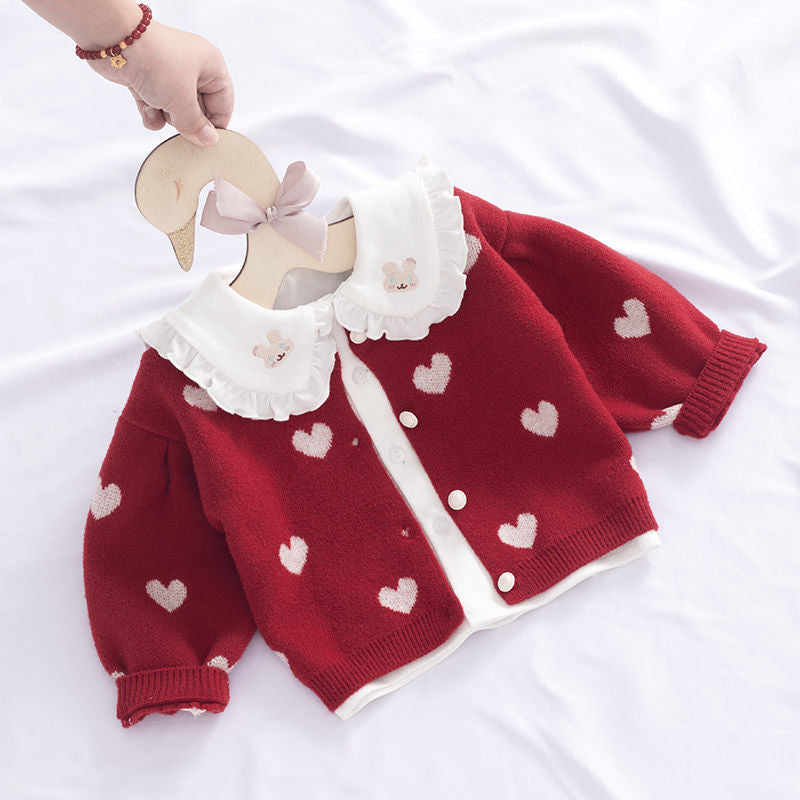 Baby coat 2023 new girls' sweater 0 to 3 years old autumn clothes baby princess foreign style children's knitted cardigan