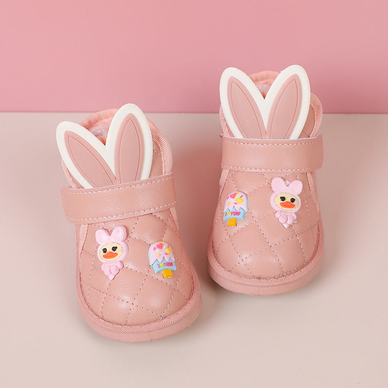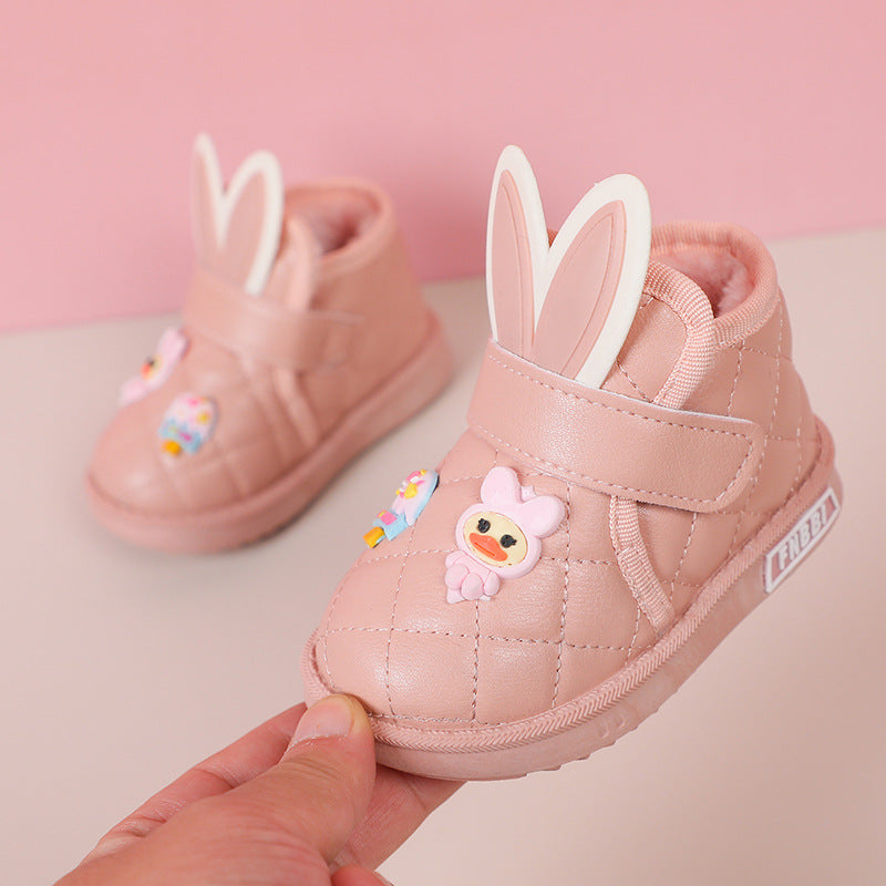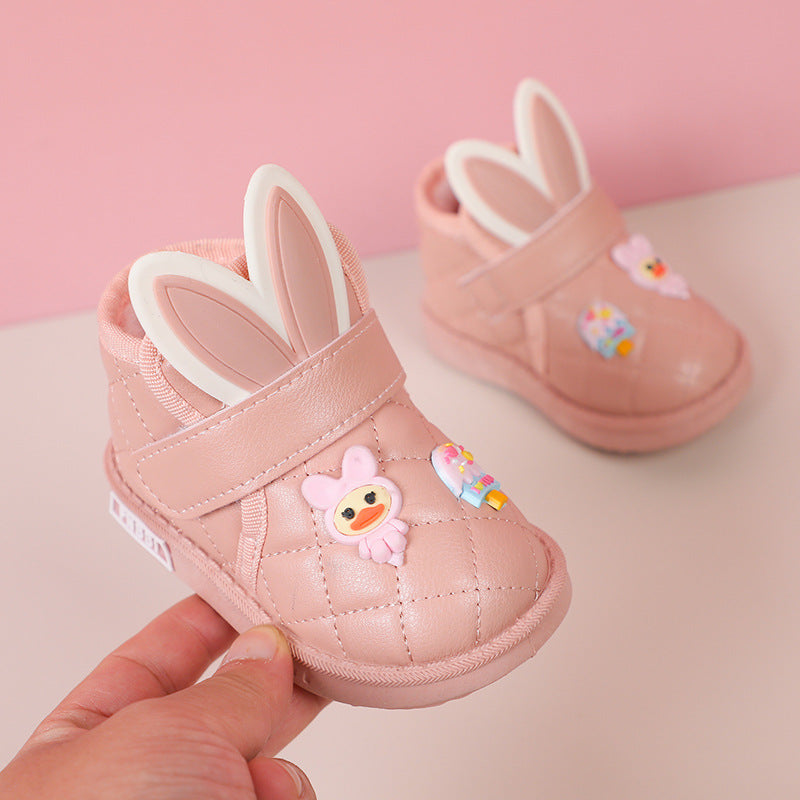 Baby cotton shoes women's winter baby warm short boots toddler waterproof leather high-top plus velvet thickened boy's cotton boots