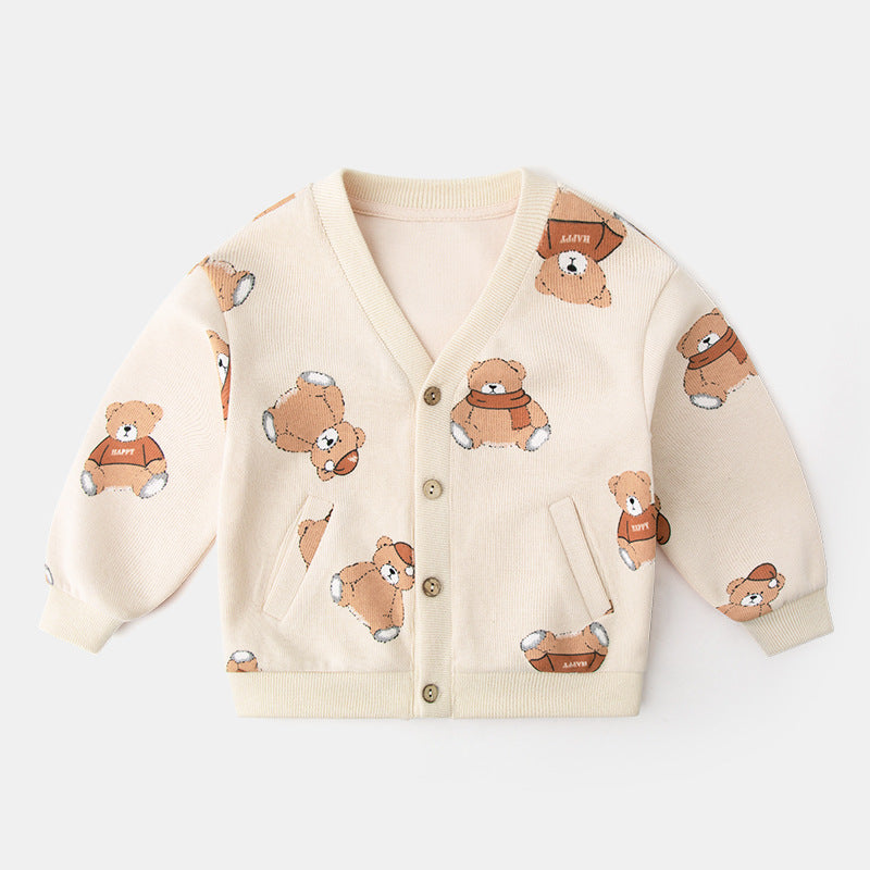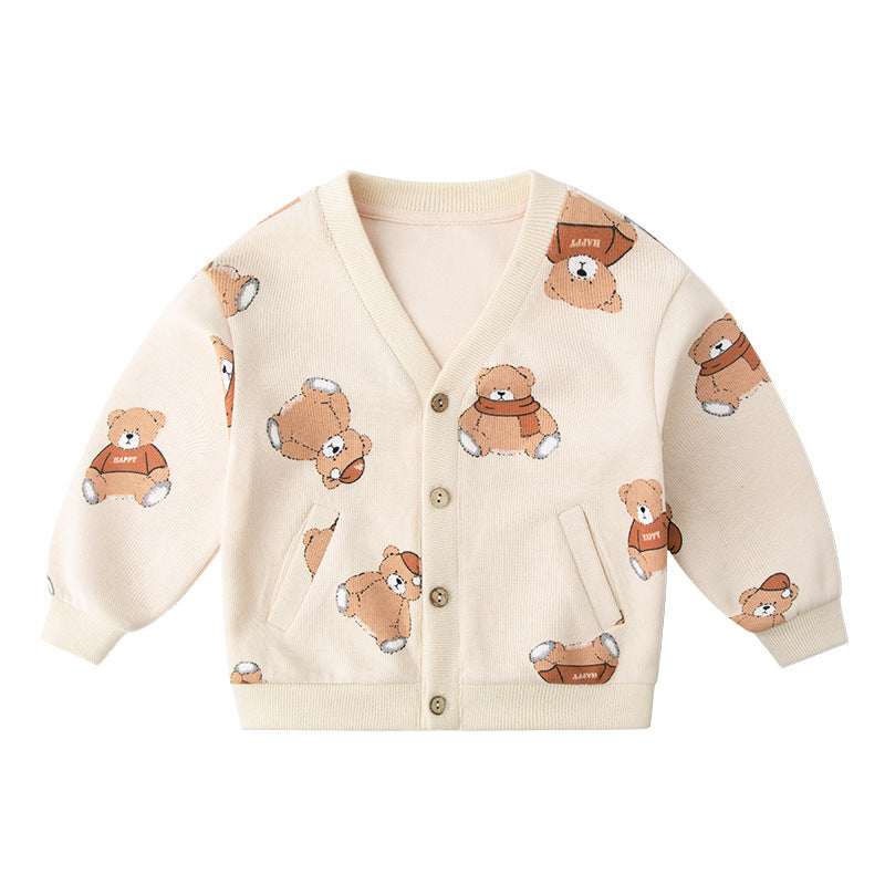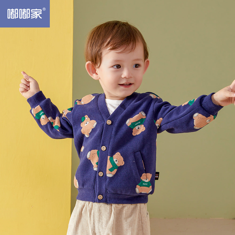 Baby full printed cartoon jacket boy cardigan children's sweater baby tops children's clothing