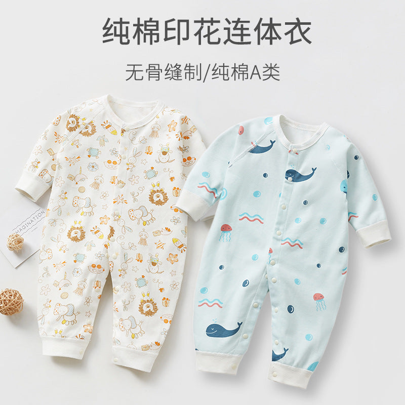 Baby jumpsuit baby spring and summer four seasons long-sleeved pure cotton male and female baby climbing suit newborn romper