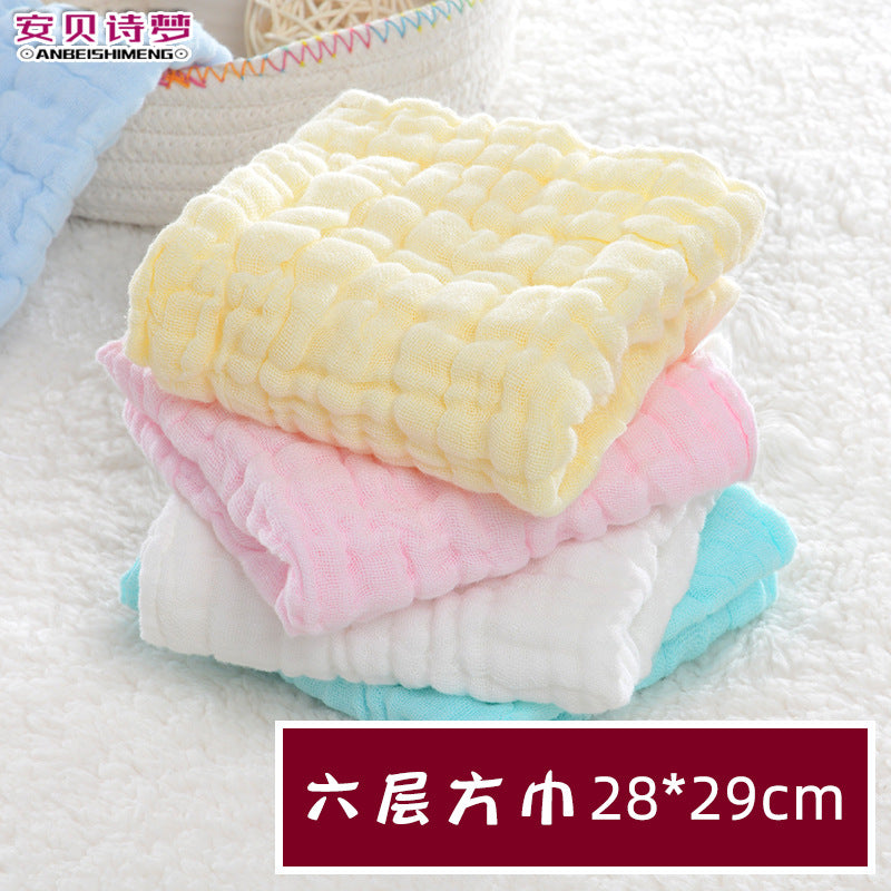 Baby towel pure cotton gauze plain seersucker baby newborn face towel cotton six-layer gauze square towel