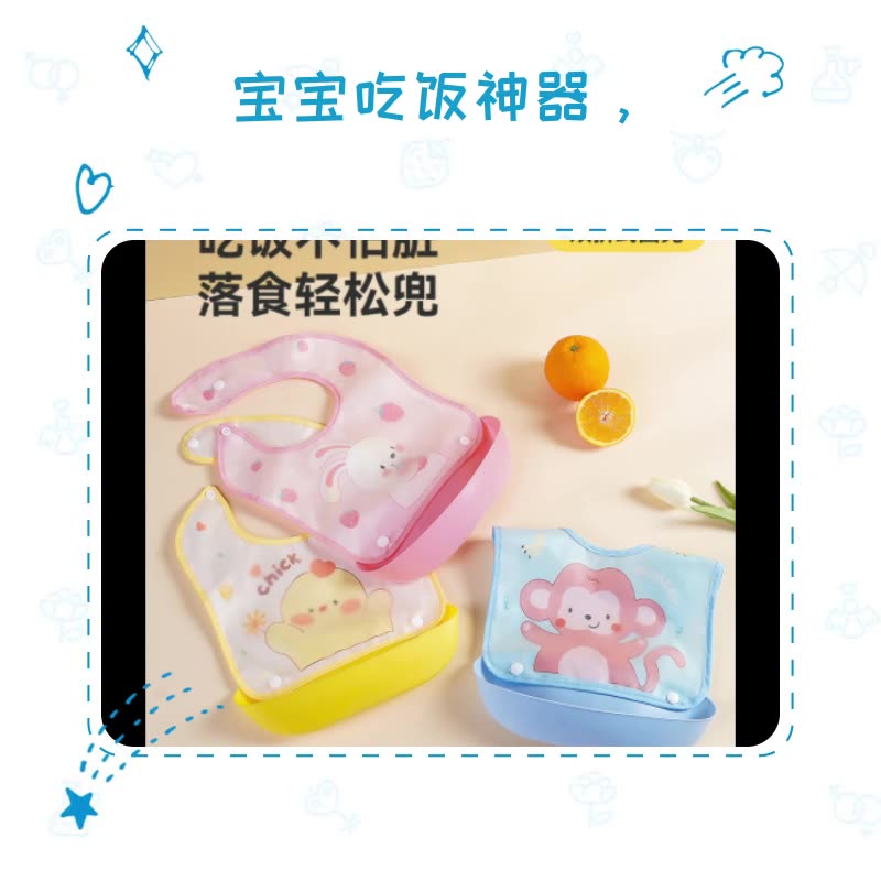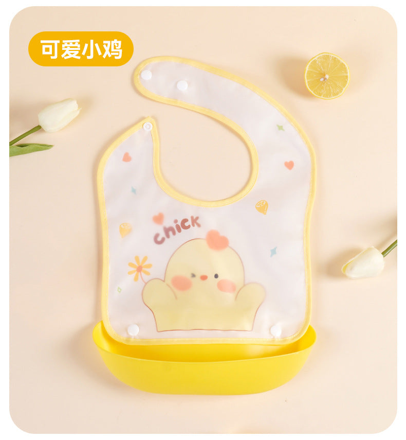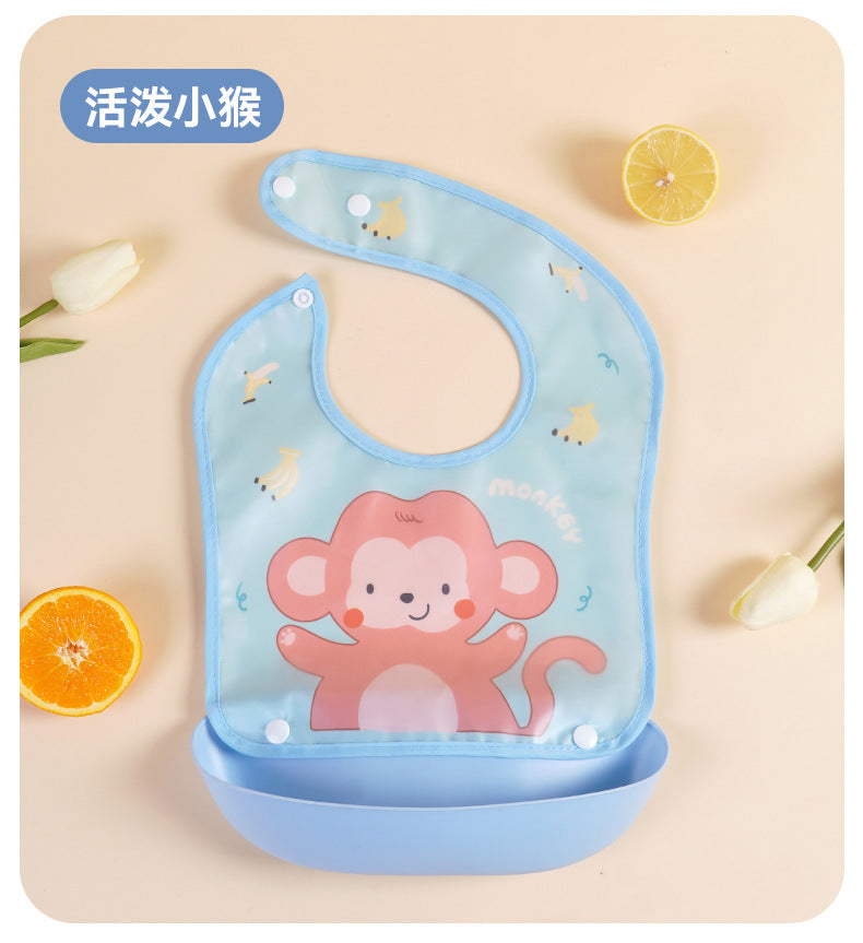 Cartoon detachable bib baby eating EVA waterproof bib boys and girls wash-free baby food supplement three-dimensional bib