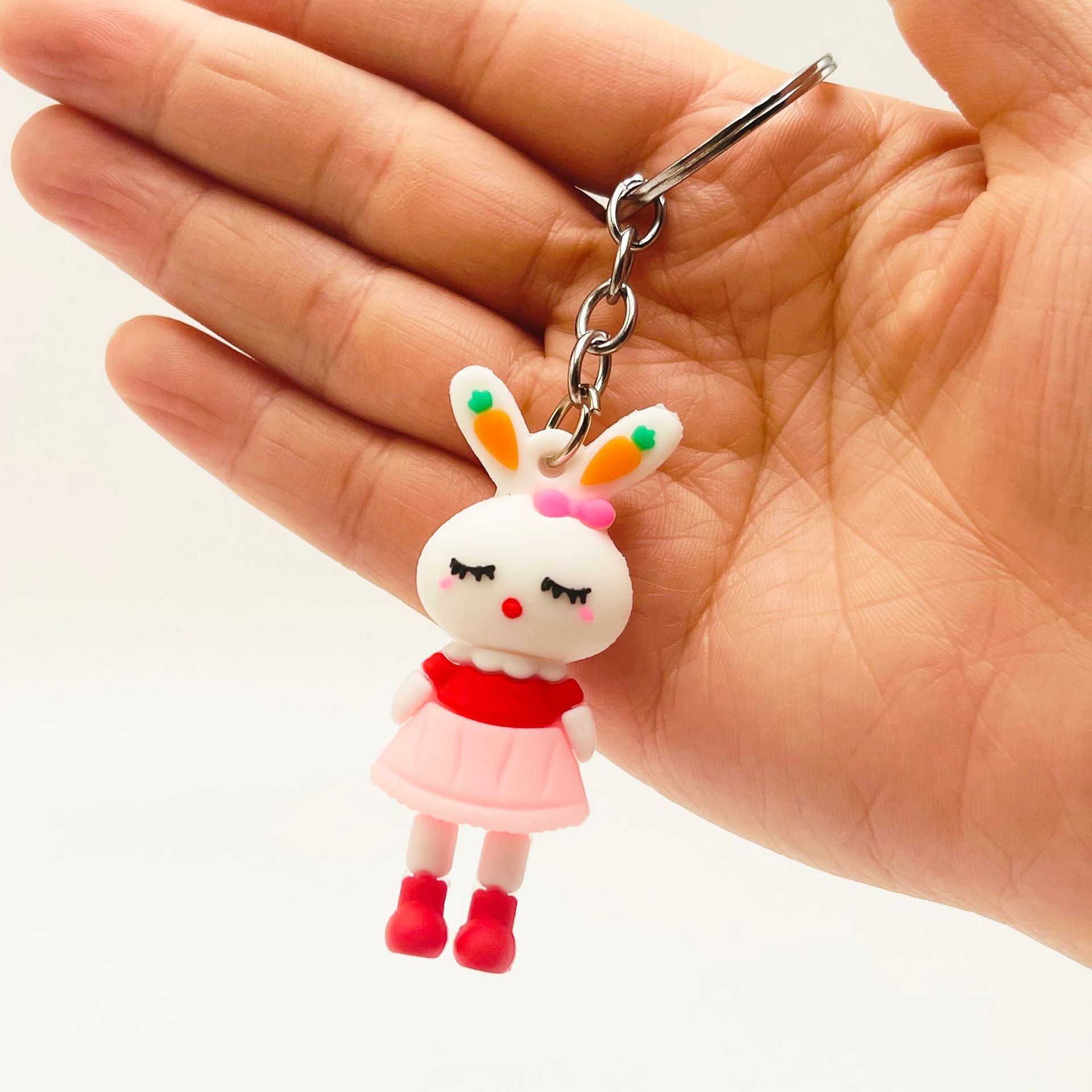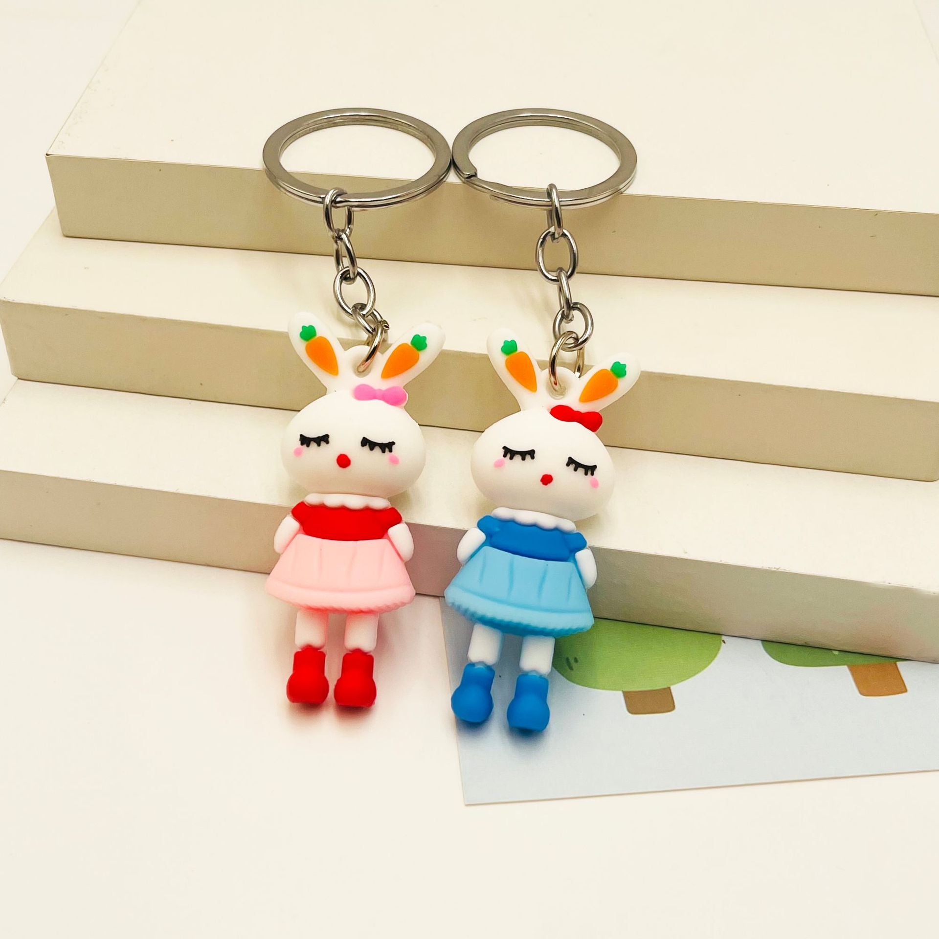 Cartoon radish rabbit key chain bag pendant PVC soft rubber tutu skirt baby rabbit key chain rabbit year gift