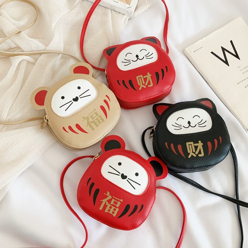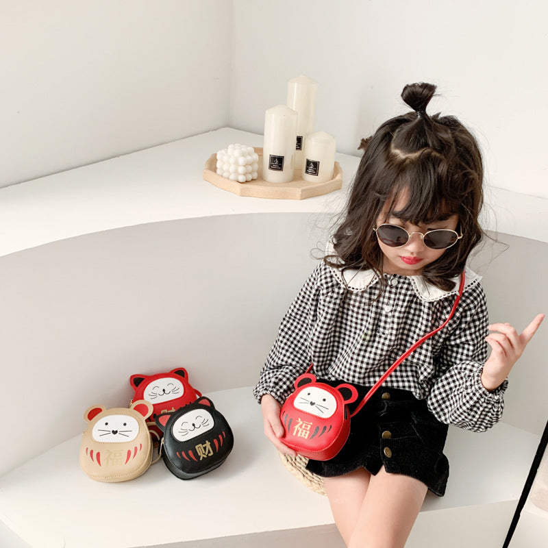 Children Messenger Bag Girls Korean Lucky Cat Coin Purse Baby Stall Cartoon Toy Bag Mini Cute Bag