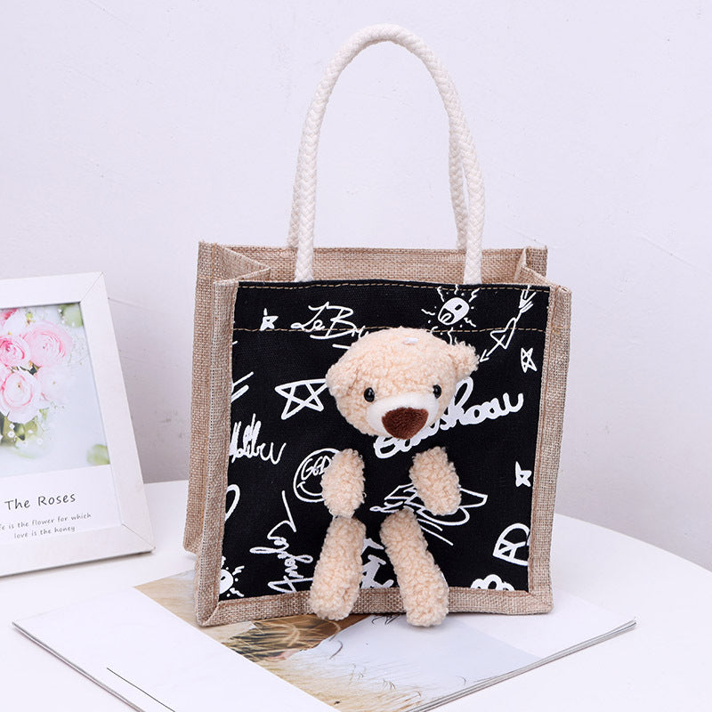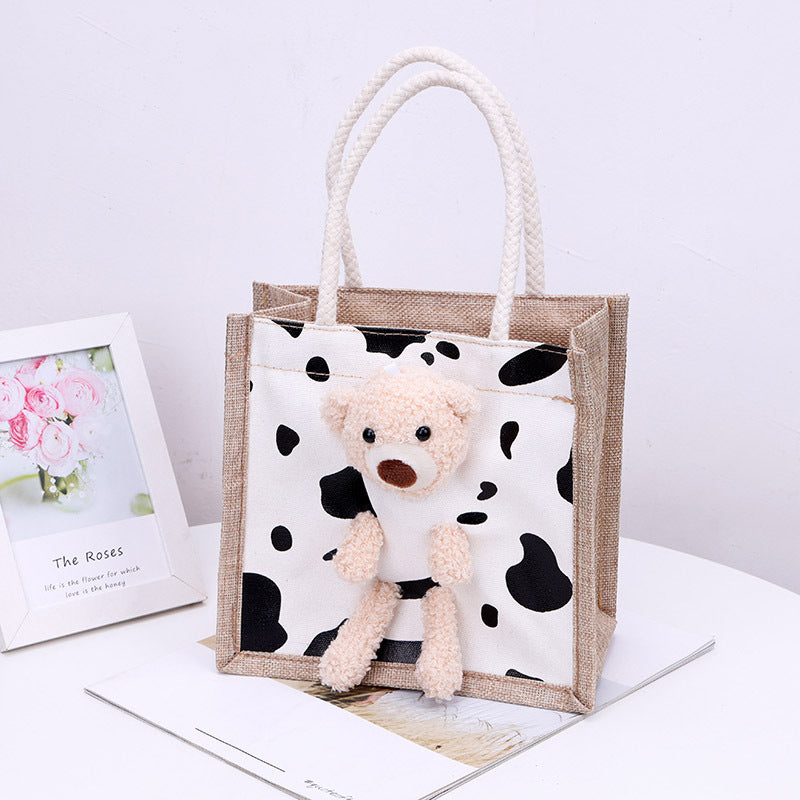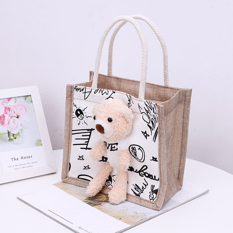Children's Bags 2023 Spring New Girls Messenger Bag Baby Cute Bear Doll Canvas Handbag Foreign Trade
