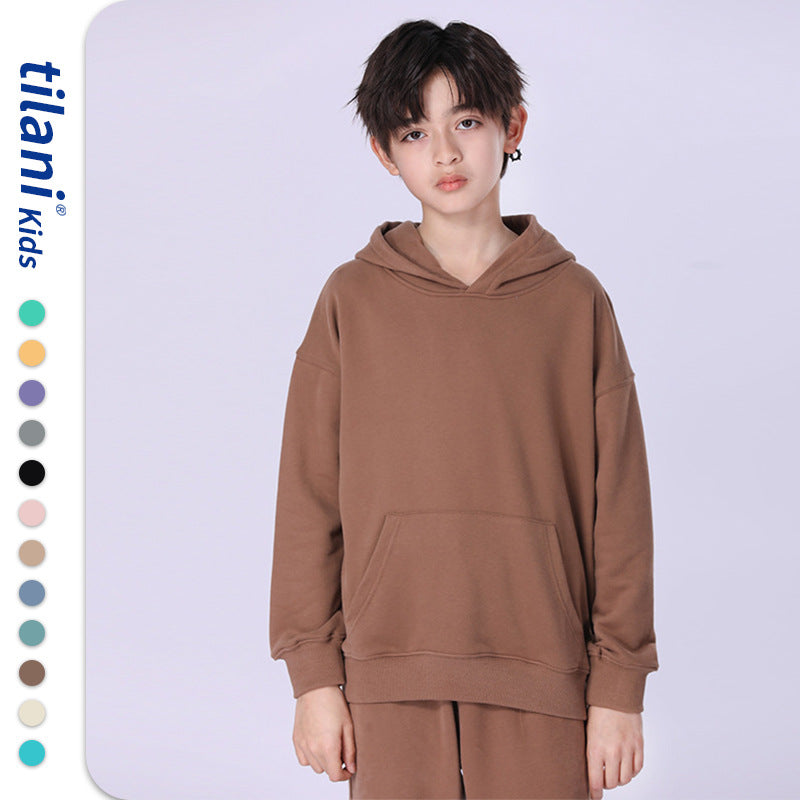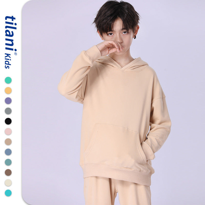 Children's clothing for boys and girls in the spring of 2023 Europe and the United States solid color terry children's sweater boys and girls baby middle and big children's tops