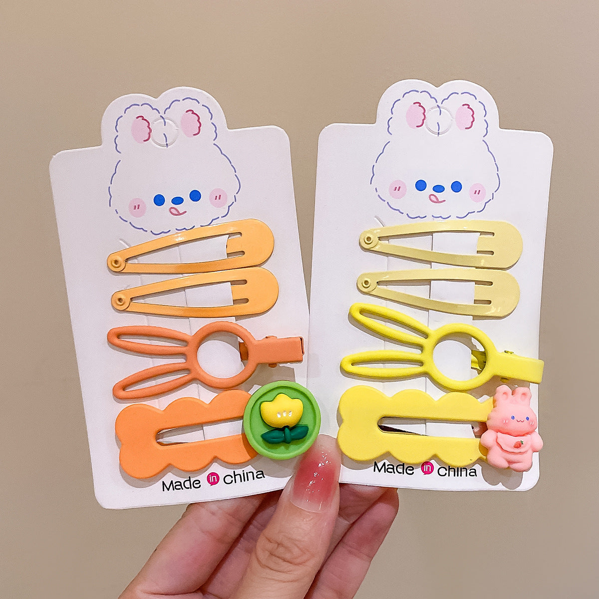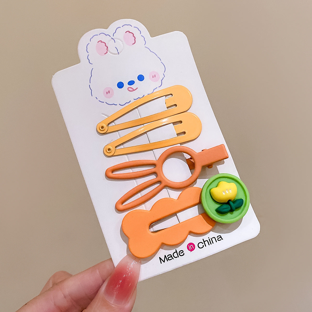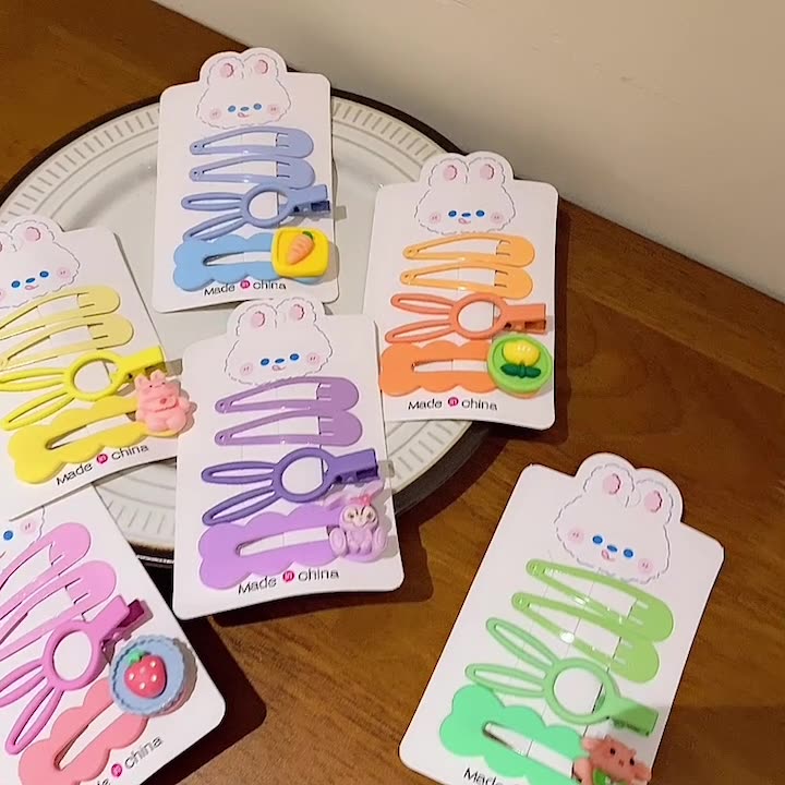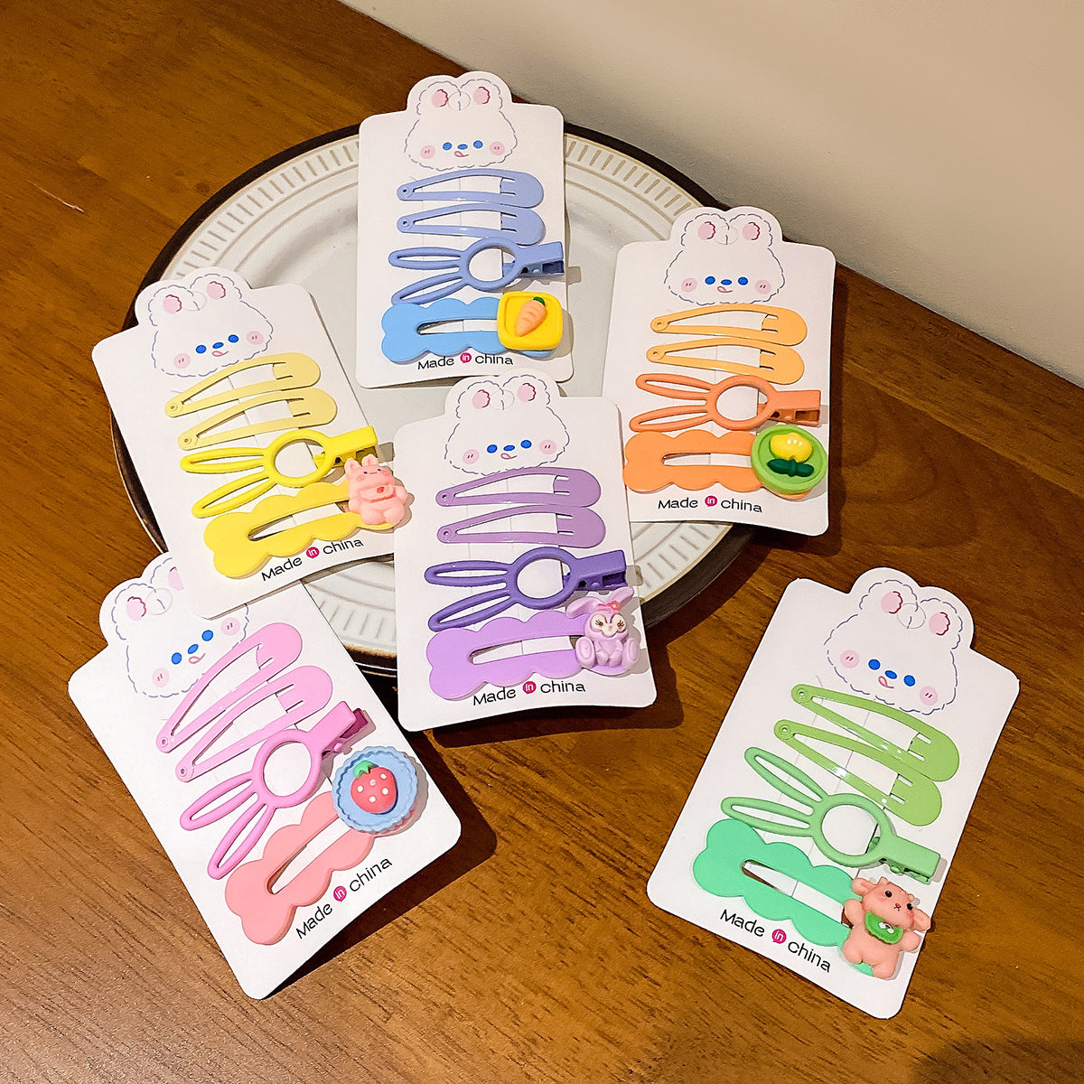color : Four-piece set of cute hair clips (individually packaged in blue), four-piece set of cute hair clips (individually packaged in pink), four-piece set of cute hair clips (individually packaged in yellow), four-piece set of cute hair clips (individually packaged in purple), cute four-piece set of hair clips (individually packaged in green), four-piece set of cute hairpins (individually packaged in orange)