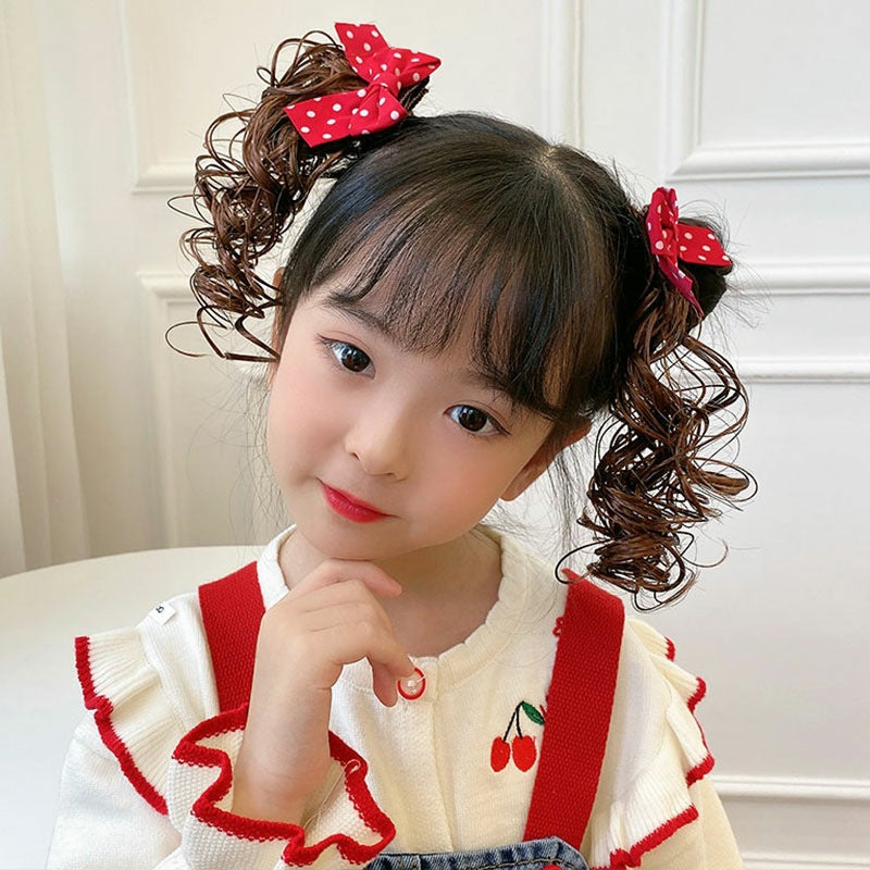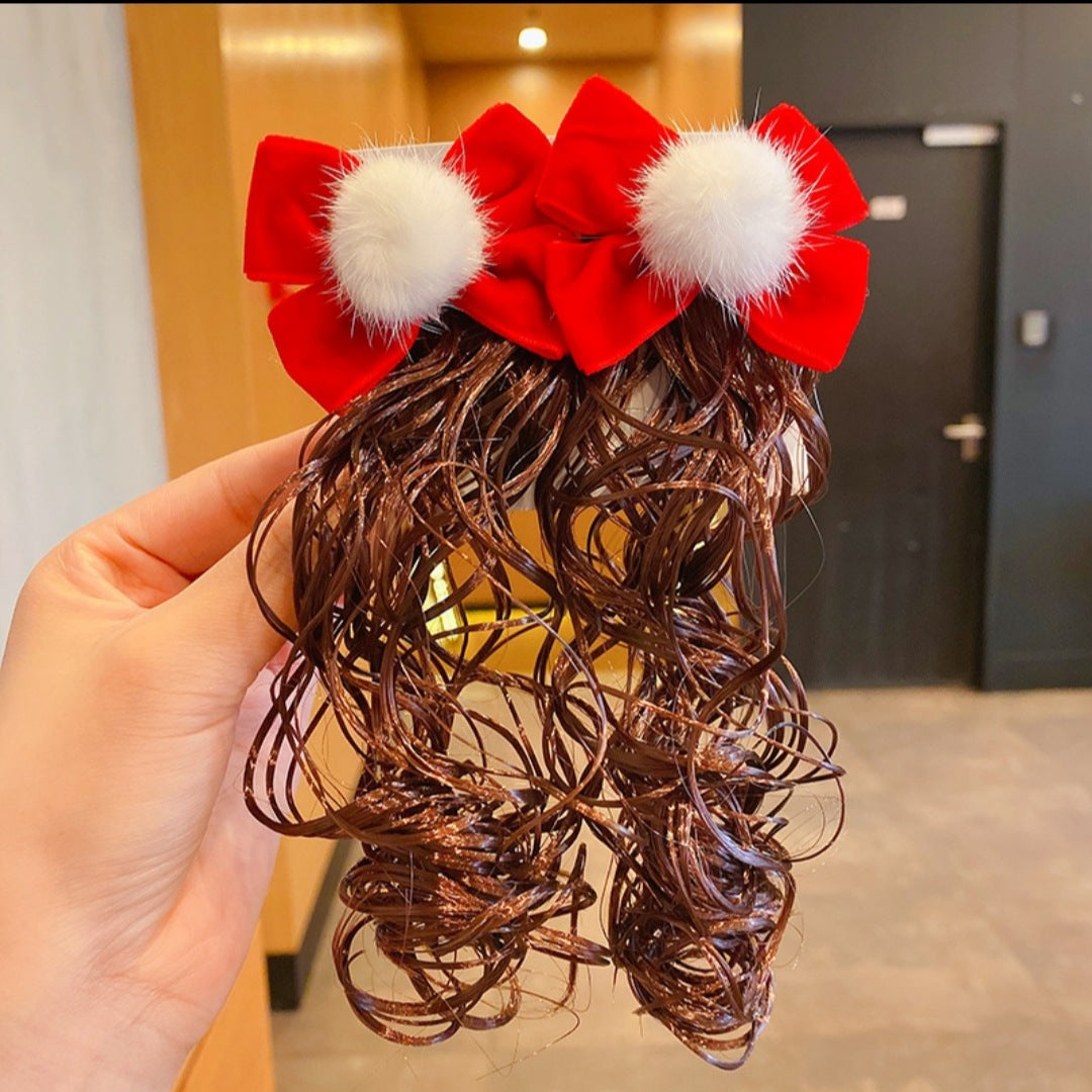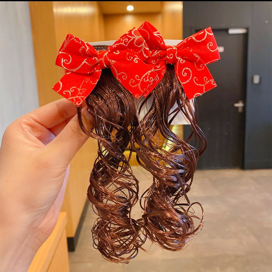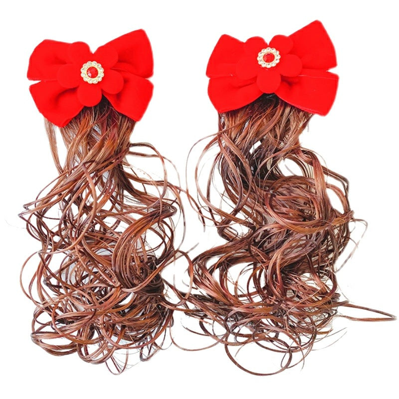Children's festive red hairpin wig bowknot Chinese style Hanfu New Year's headdress baby ancient style fur ball hairpin