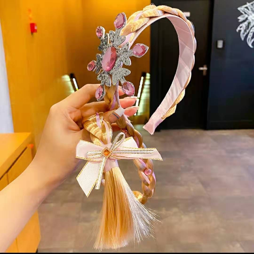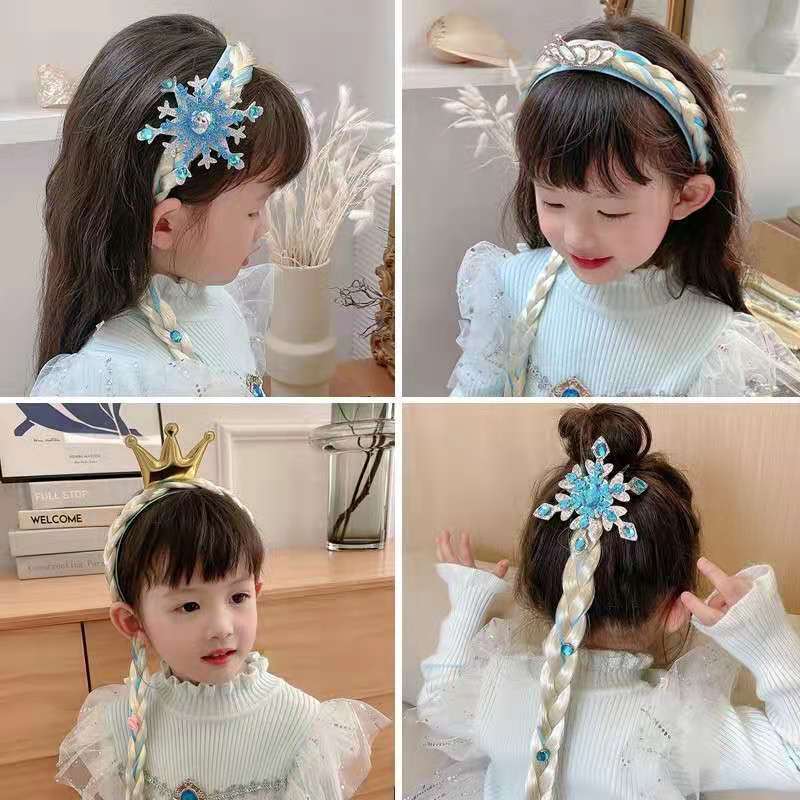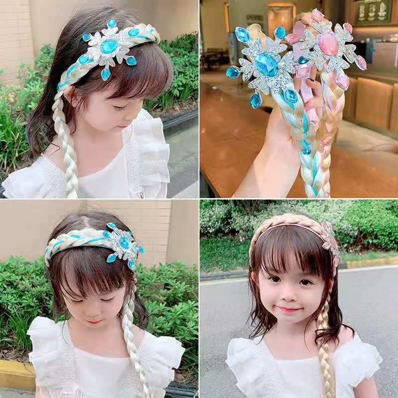 Children's Frozen Hair Accessories Korean Girls Princess Wig Braids Baby Princess Aisha Sweet Western Style Headwear