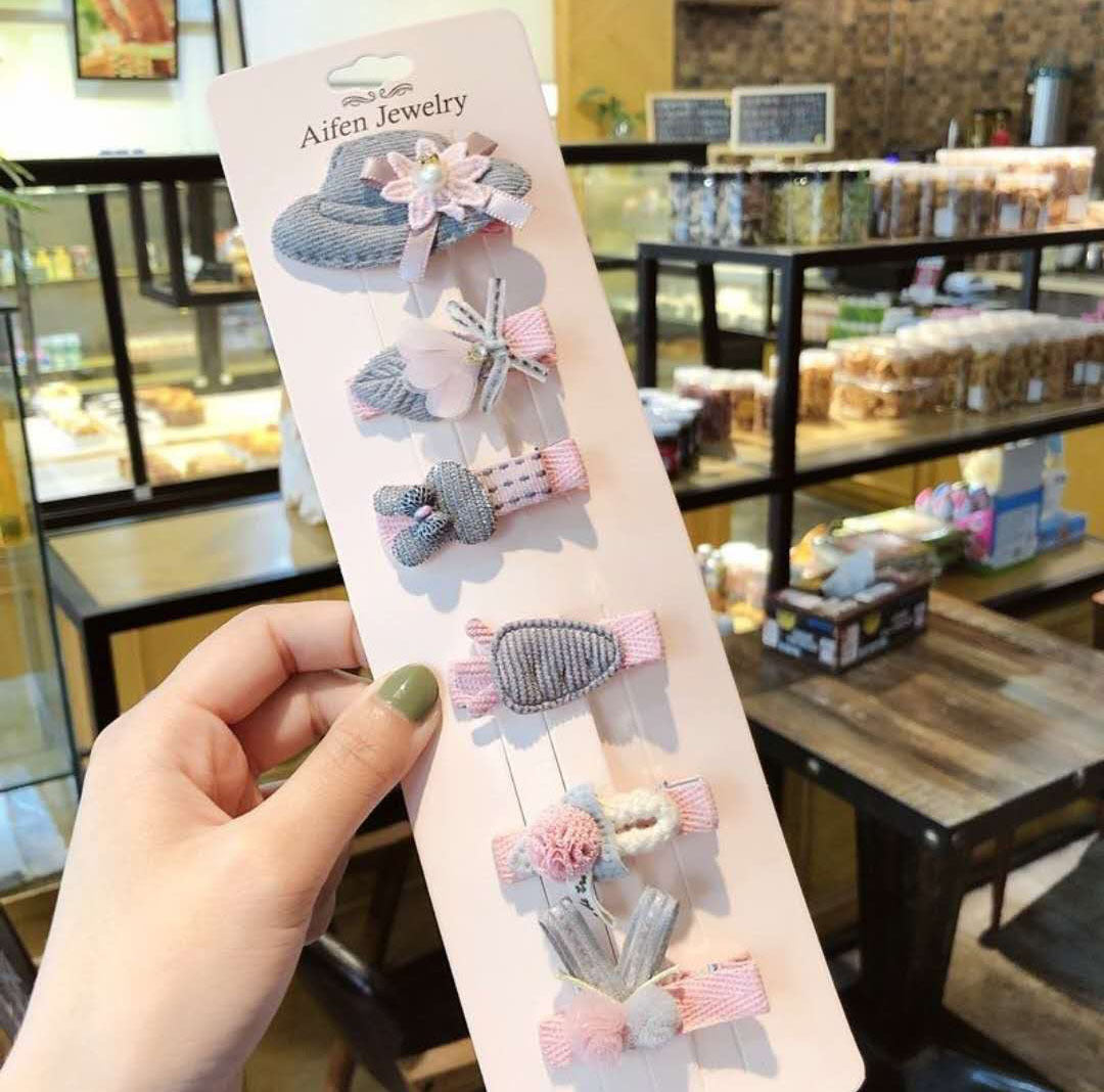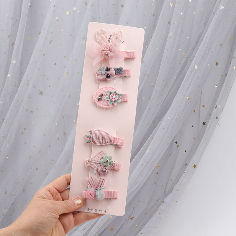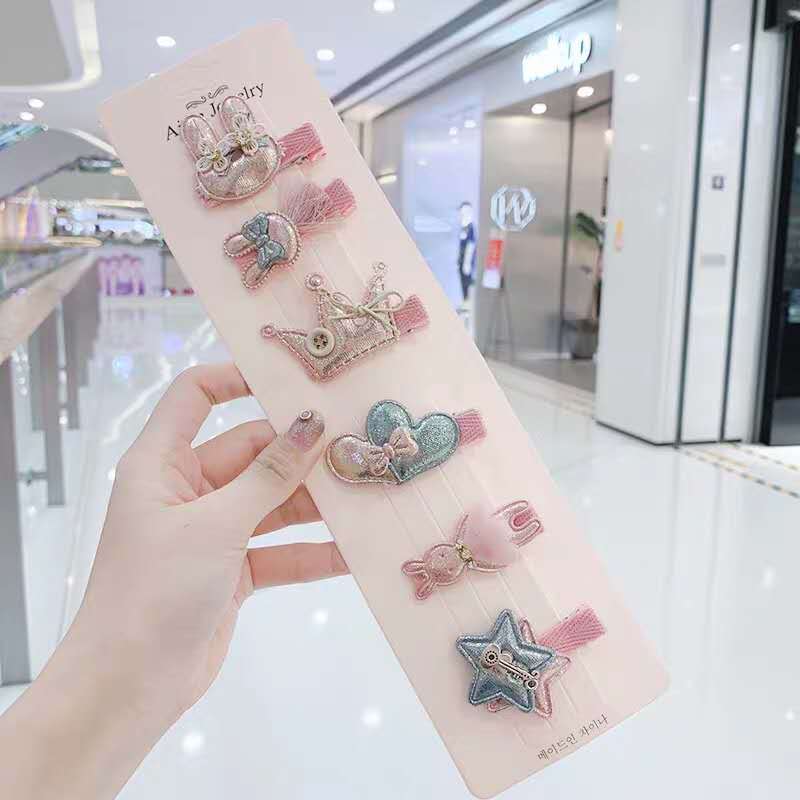 Children's hair clip 6-piece set seamless card hair Korean girl hair accessories net red princess cute baby small clip clip