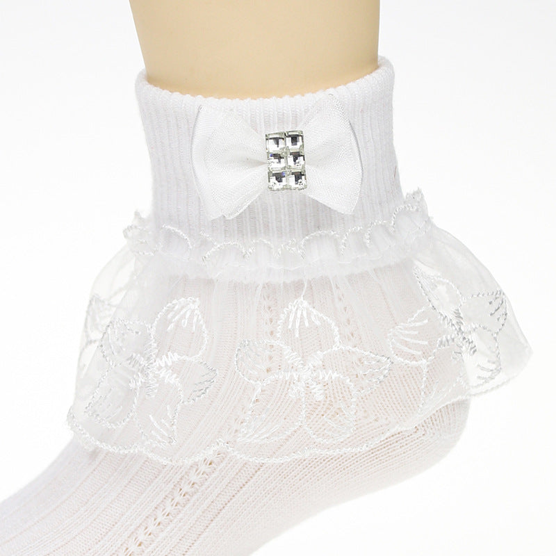 Children's lace socks autumn and winter combed cotton baby girls socks white lace princess big children's lace socks