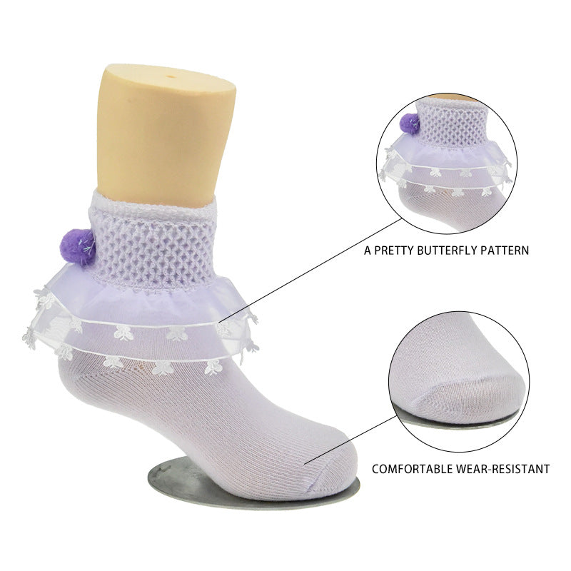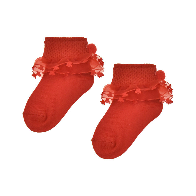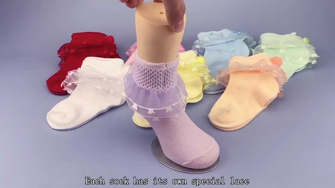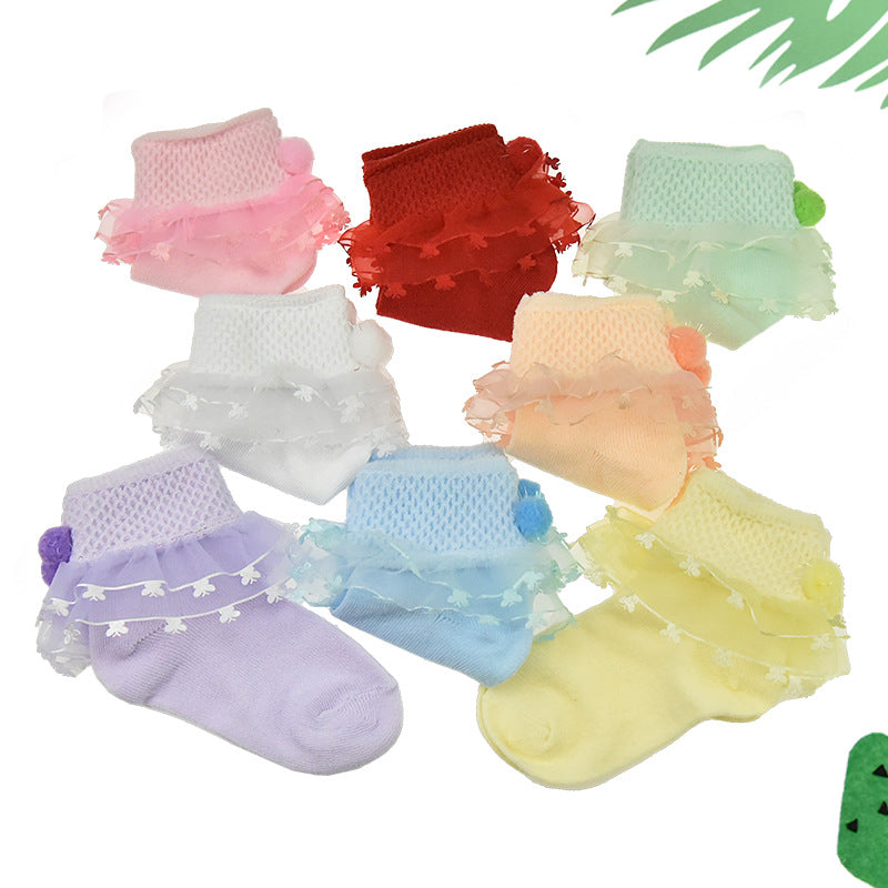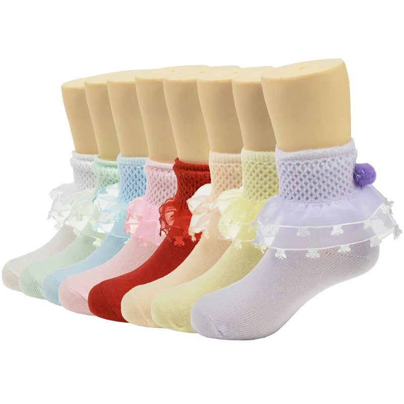 Children's lace socks colorful baby cotton socks girls socks ribbon double layer lace princess lace socks