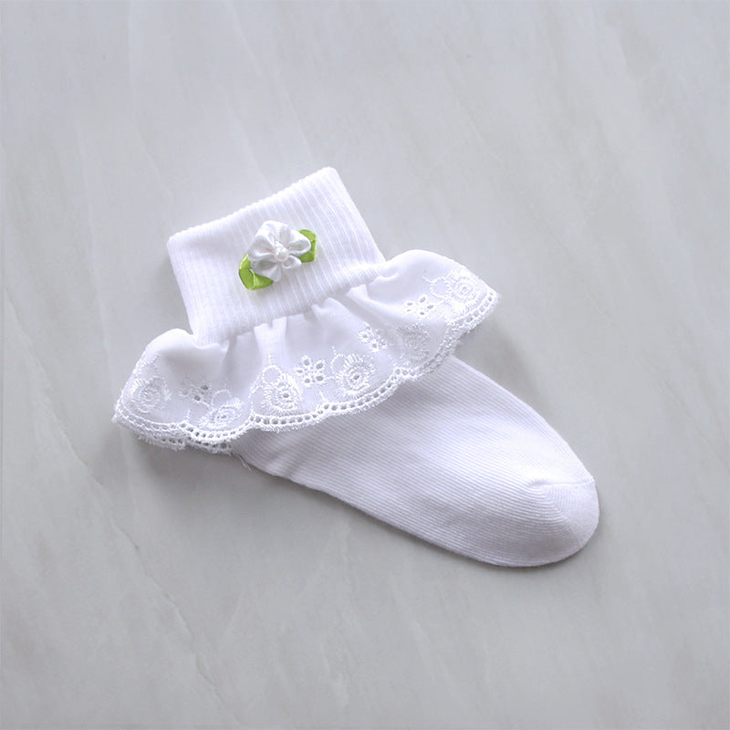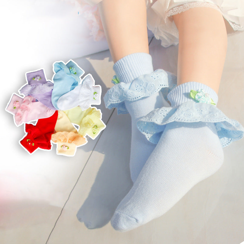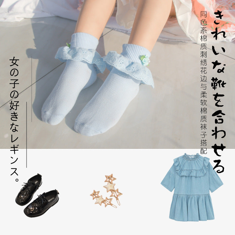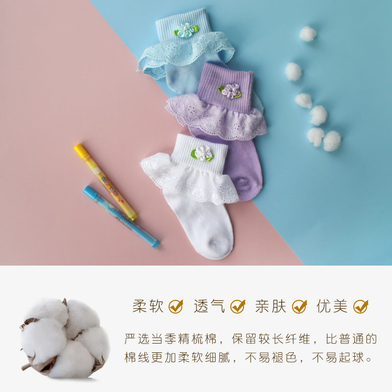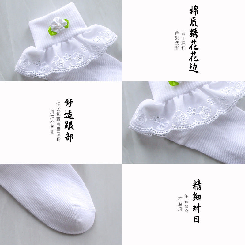 Children's Lace Socks Embroidered Cotton Selvage Dance Socks Baby Baby Socks Girls Socks Factory Direct Sales
