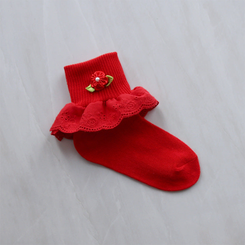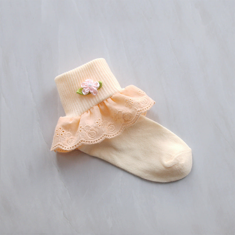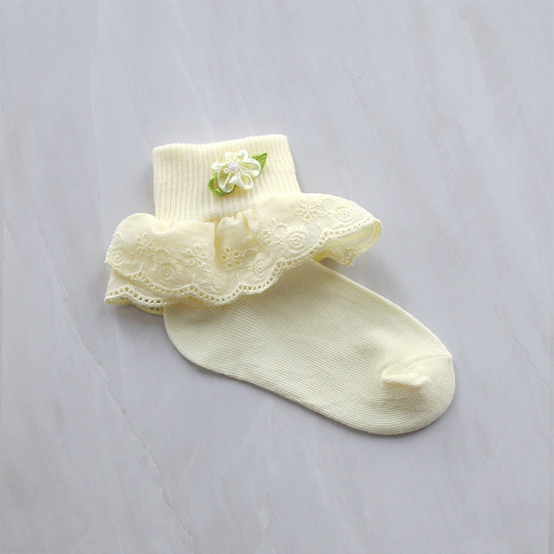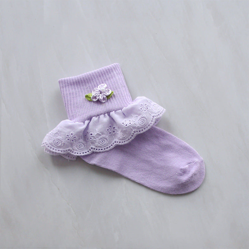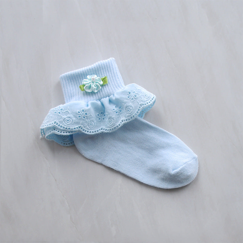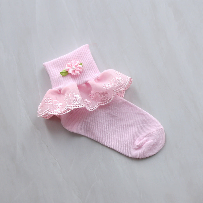 Children's Lace Socks Embroidered Cotton Selvage Dance Socks Baby Baby Socks Girls Socks Factory Direct Sales