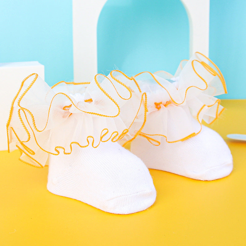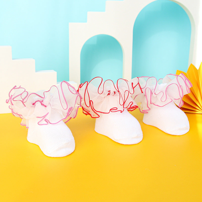 Children's lace socks new cotton girls' baby socks colorful three-dimensional lace socks short tube baby socks