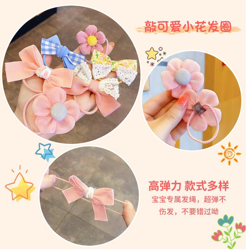 Children's rubber band baby hair rope girl's fabric flower bow no damage hair accessories cute hair ring ponytail headdress