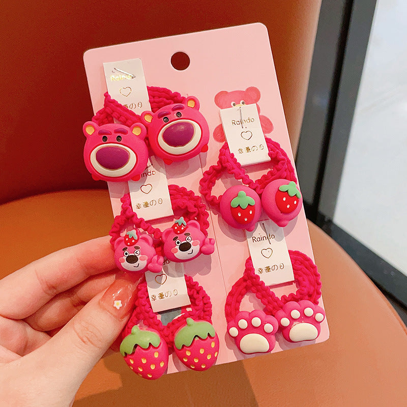 Children's rubber band strawberry bear tie head rope does not hurt hair elastic good baby head rope girls Korean hair ring girls hair accessories