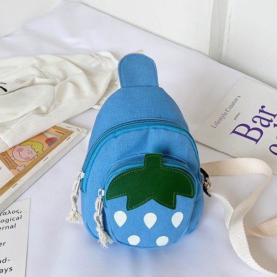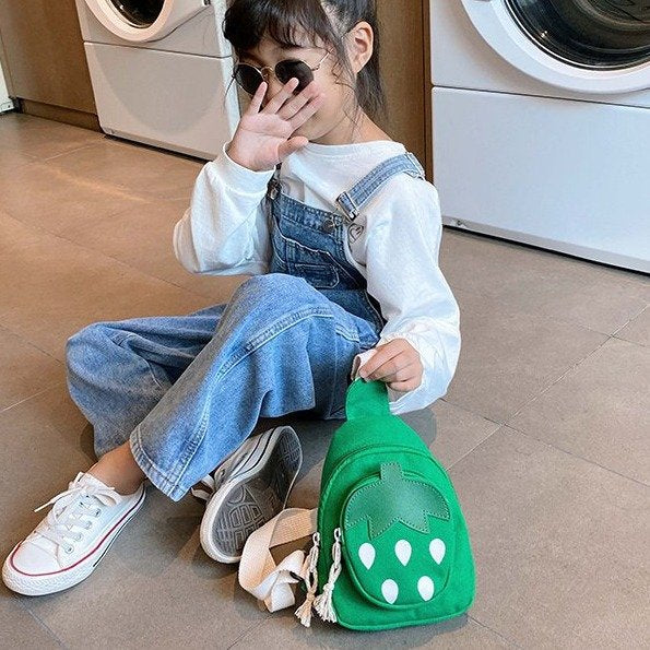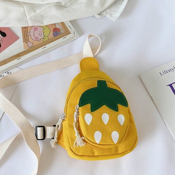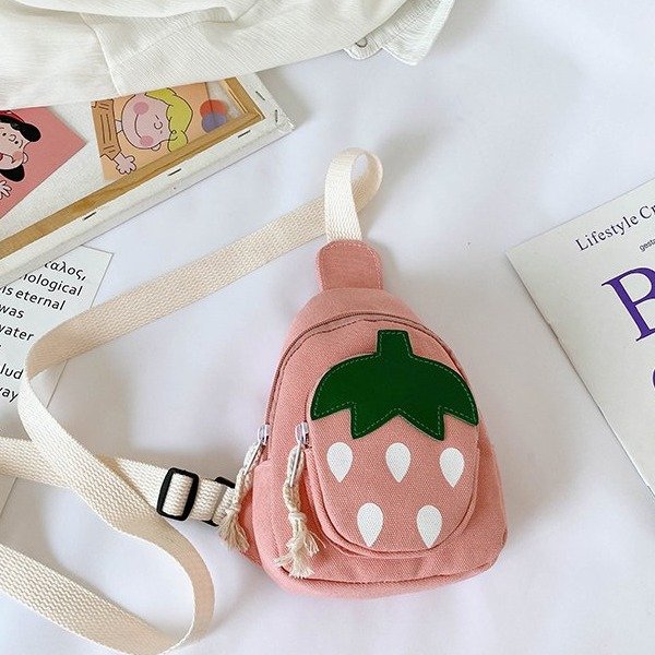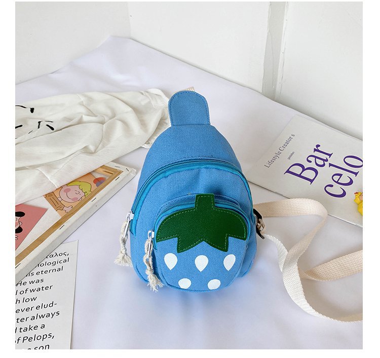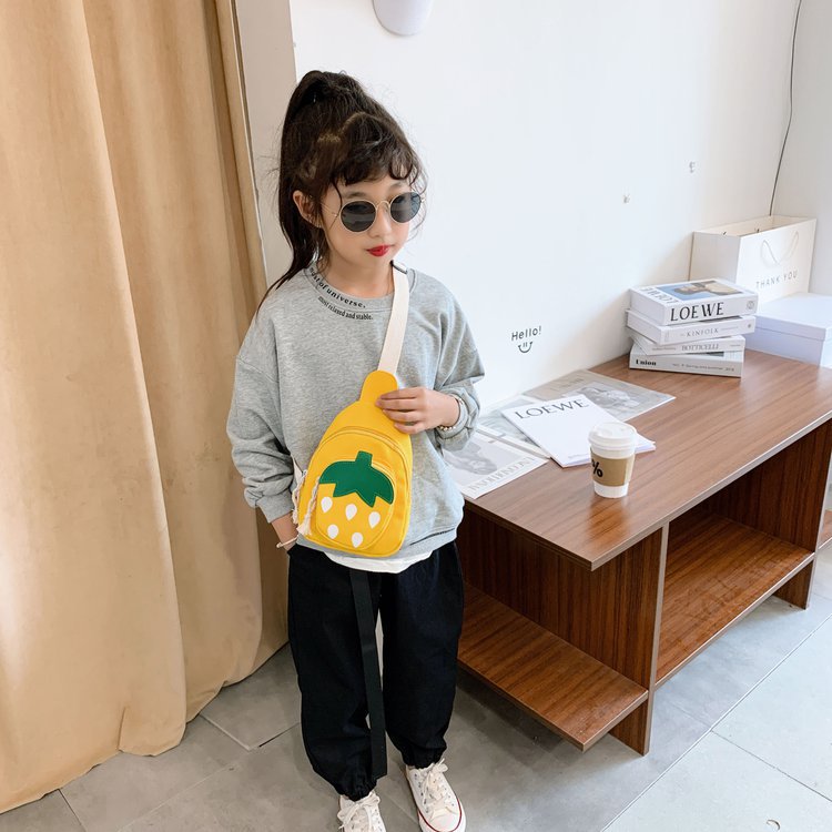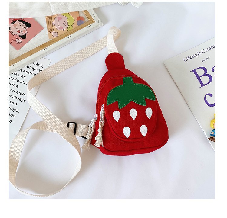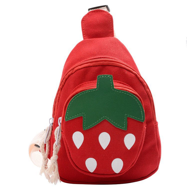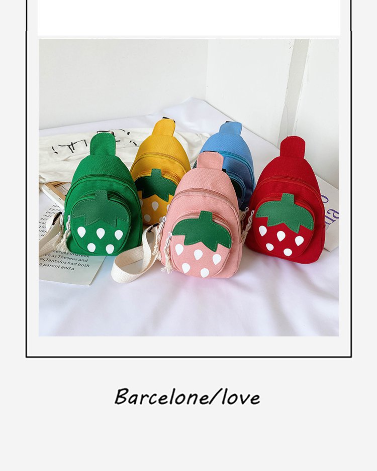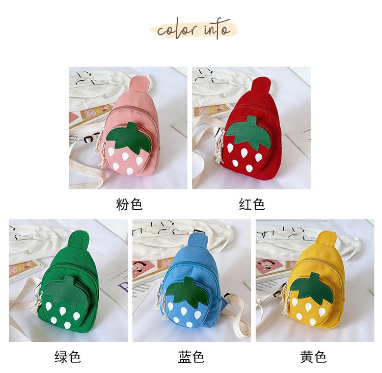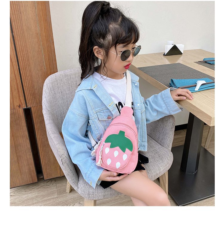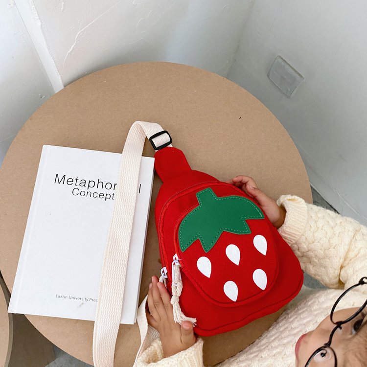 Children's Small Bag Korean Cartoon Canvas Strawberry Chest Bag Boys and Girls Shoulder Bag Cute Baby Trend Messenger Bag
