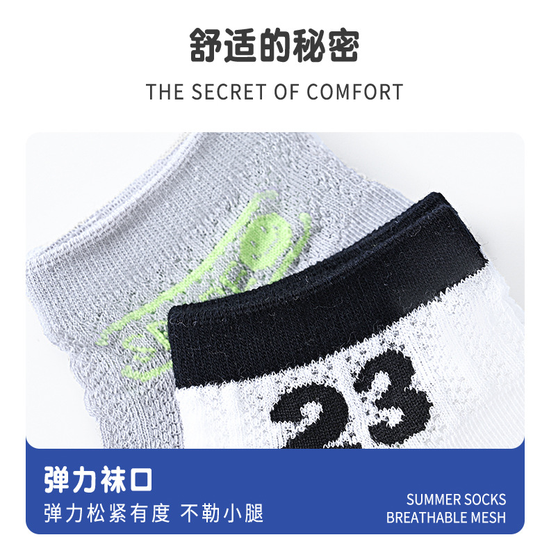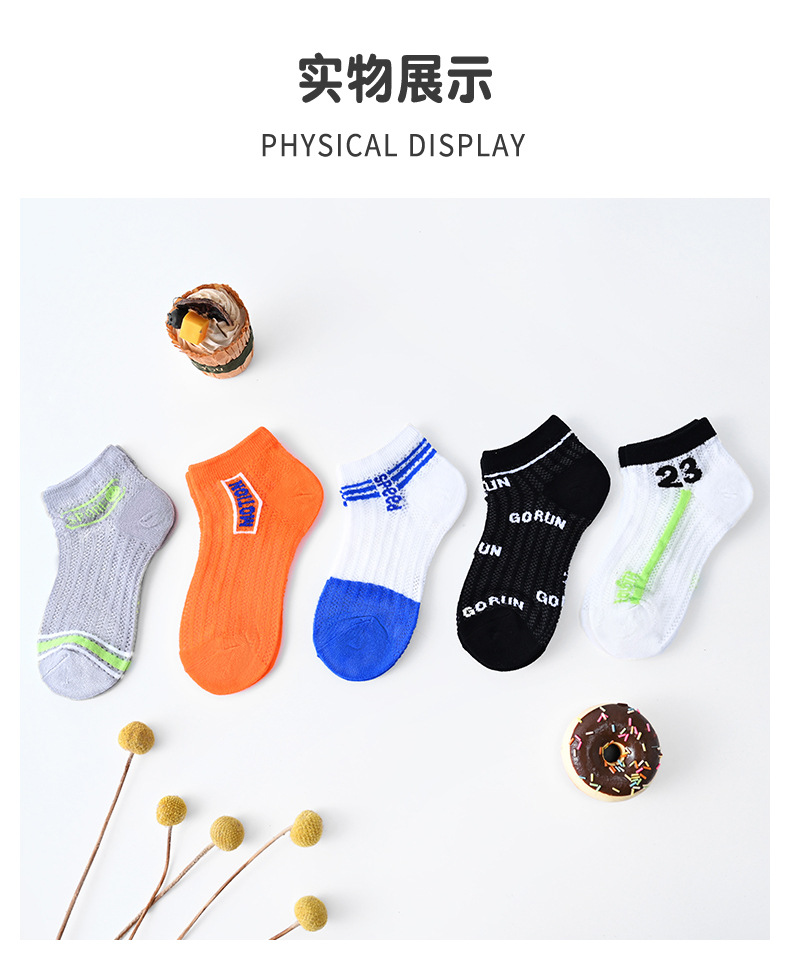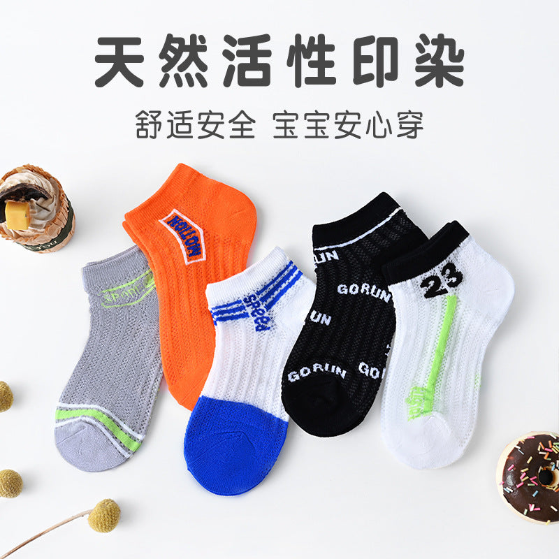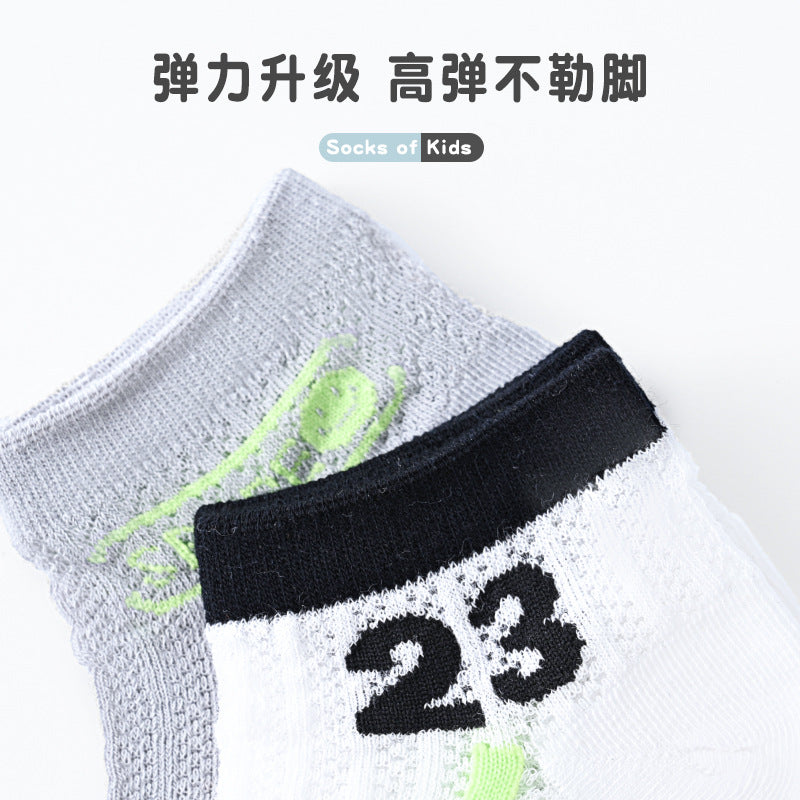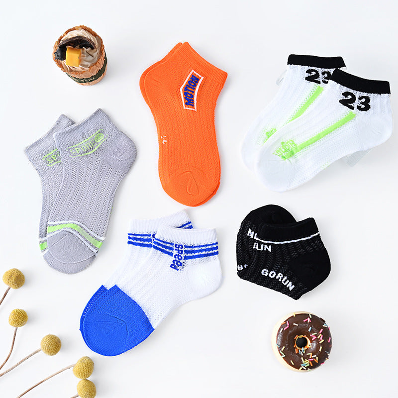 Children's socks 5 pack summer thin mesh baby cotton socks boys letter short tube socks breathable casual boat socks