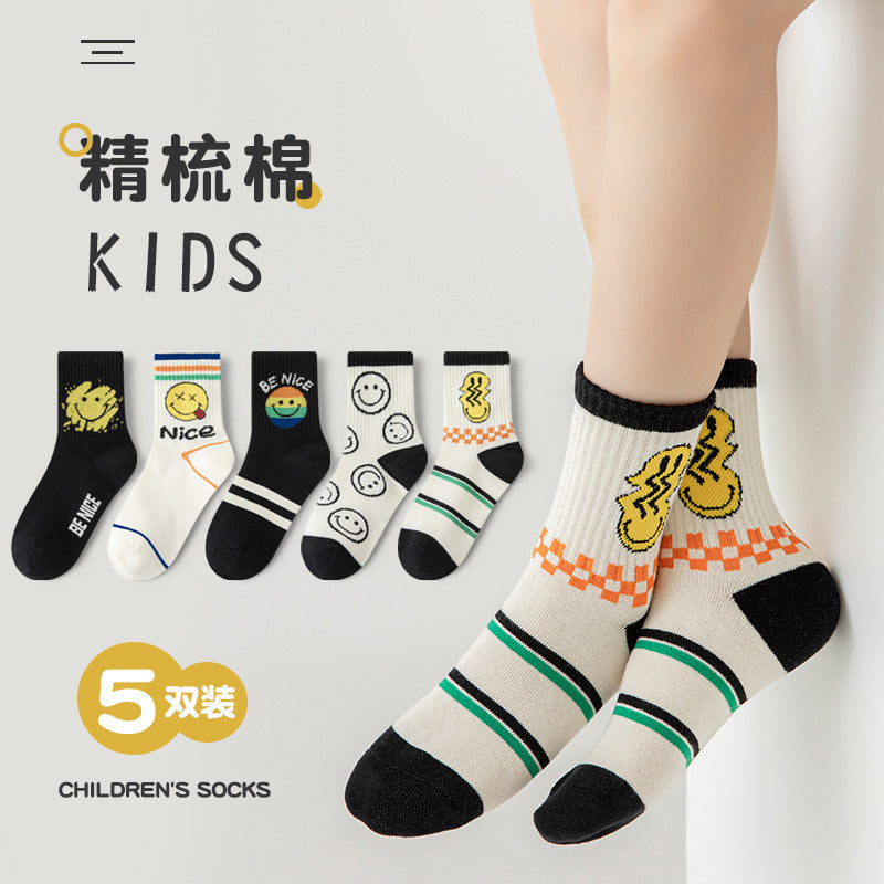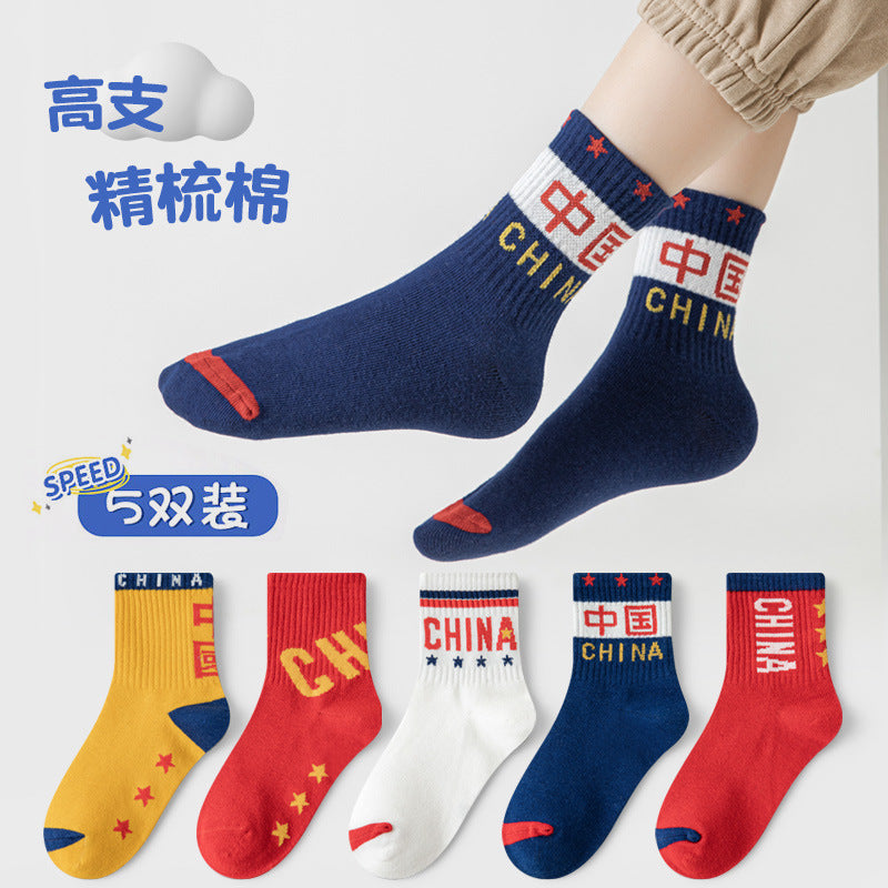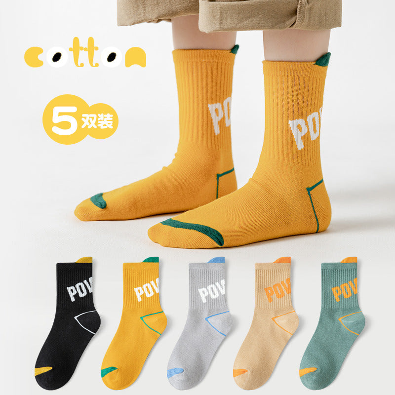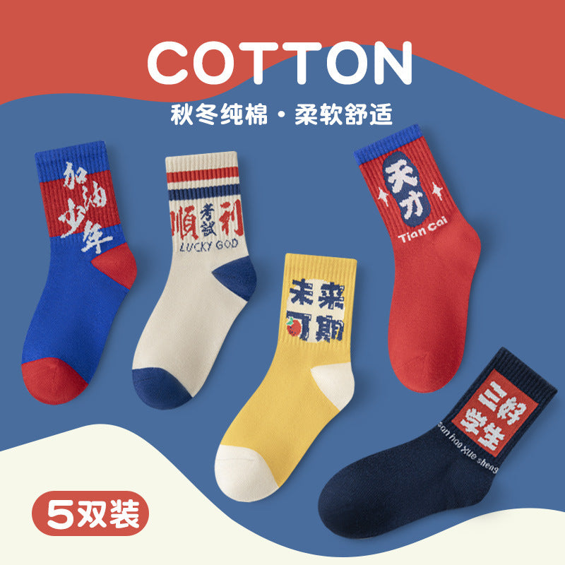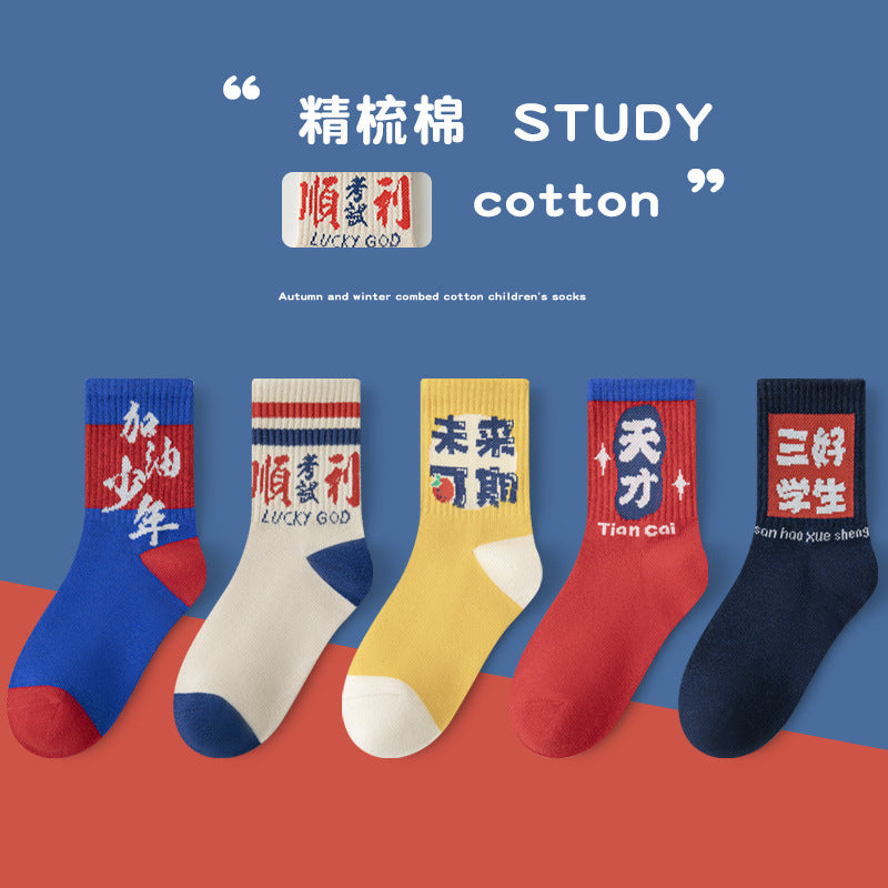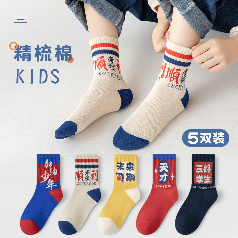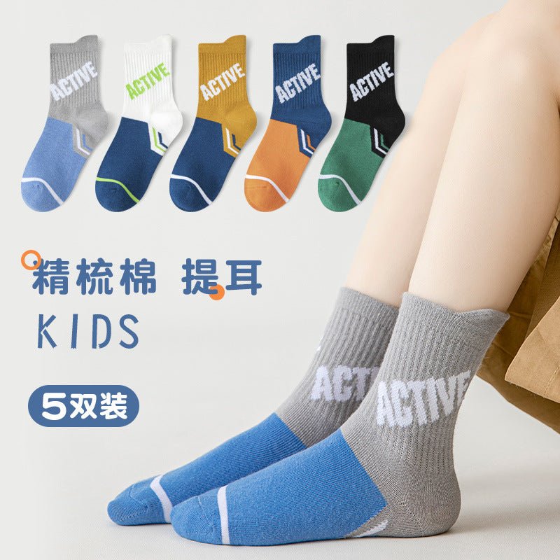 Children's socks, mid-tube socks, spring and autumn, combed cotton stockings, boys, boys, big children, baby students, sports cotton socks