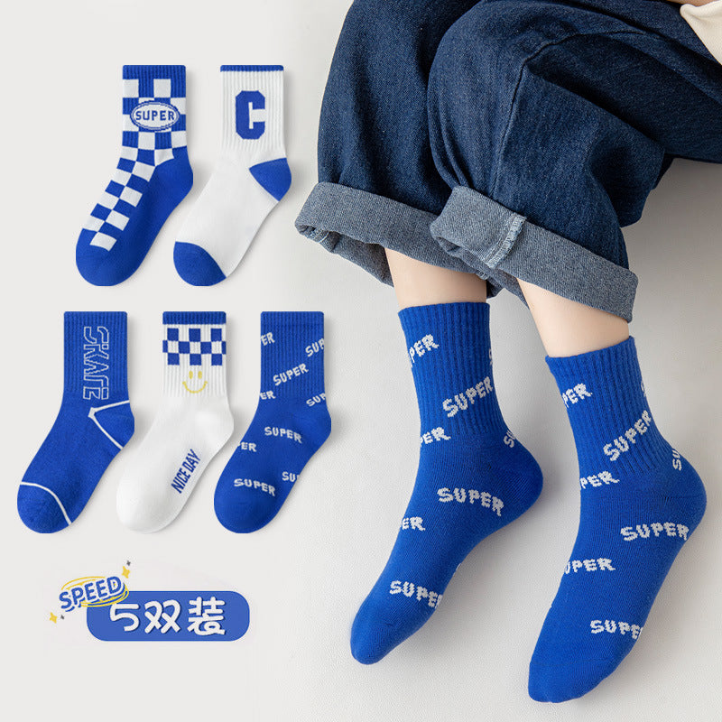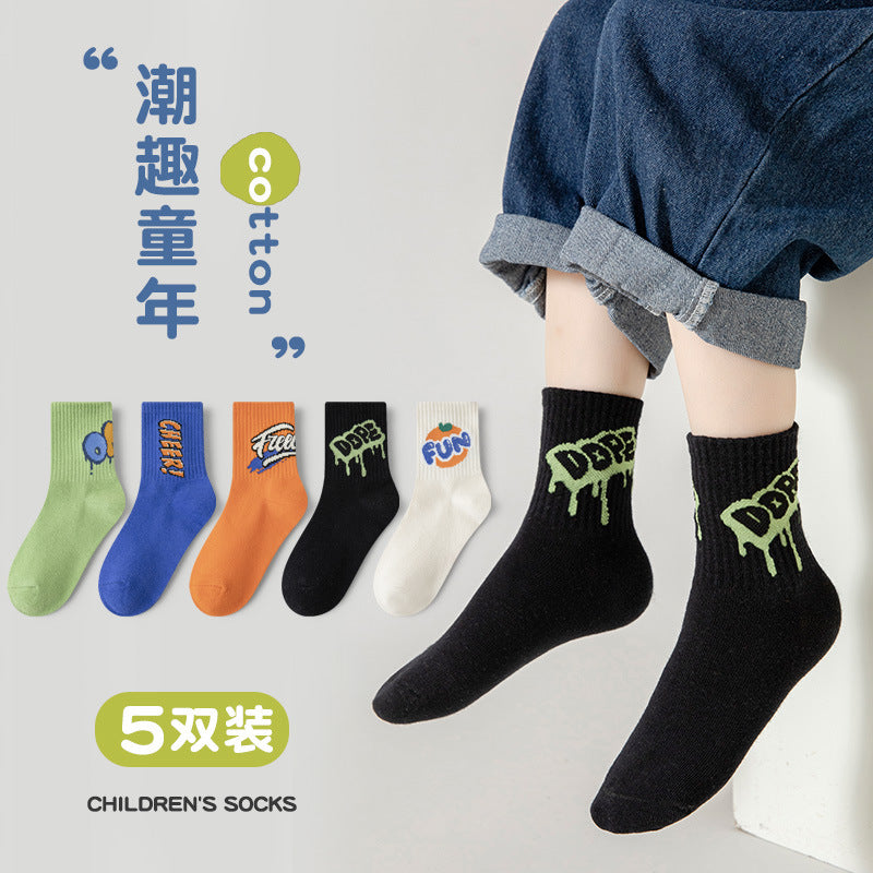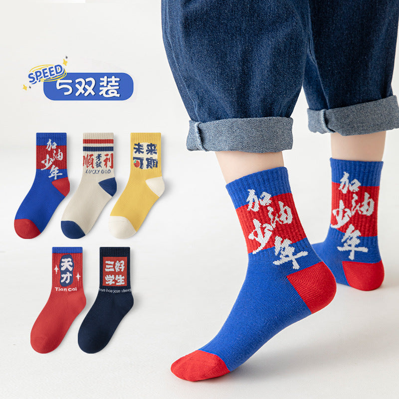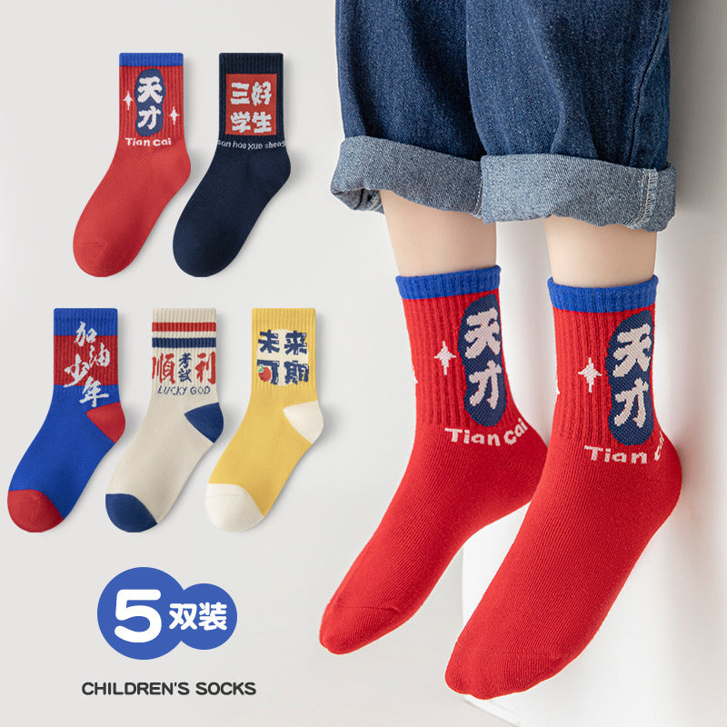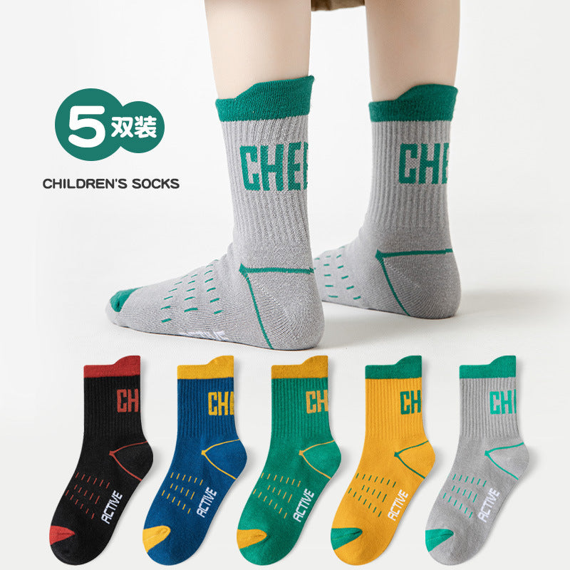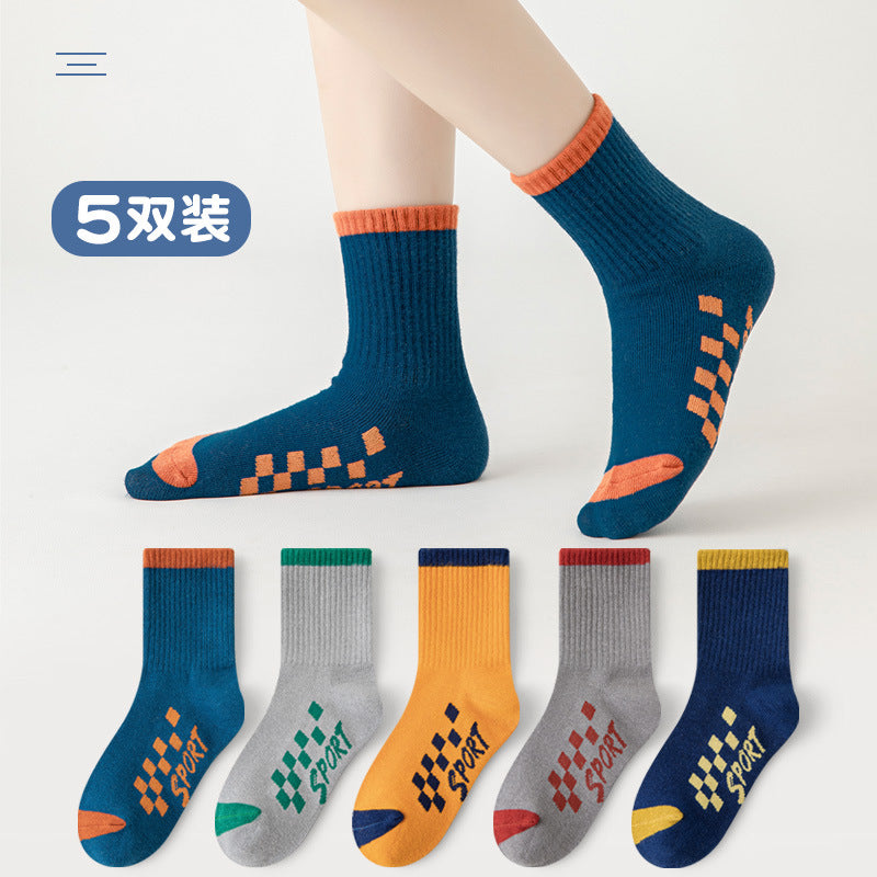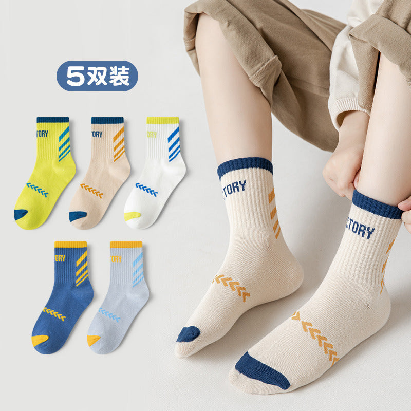 Children's socks, mid-tube socks, spring and autumn, combed cotton stockings, boys, boys, big children, baby students, sports cotton socks