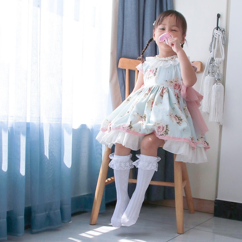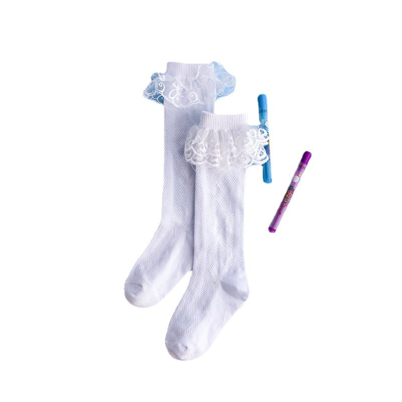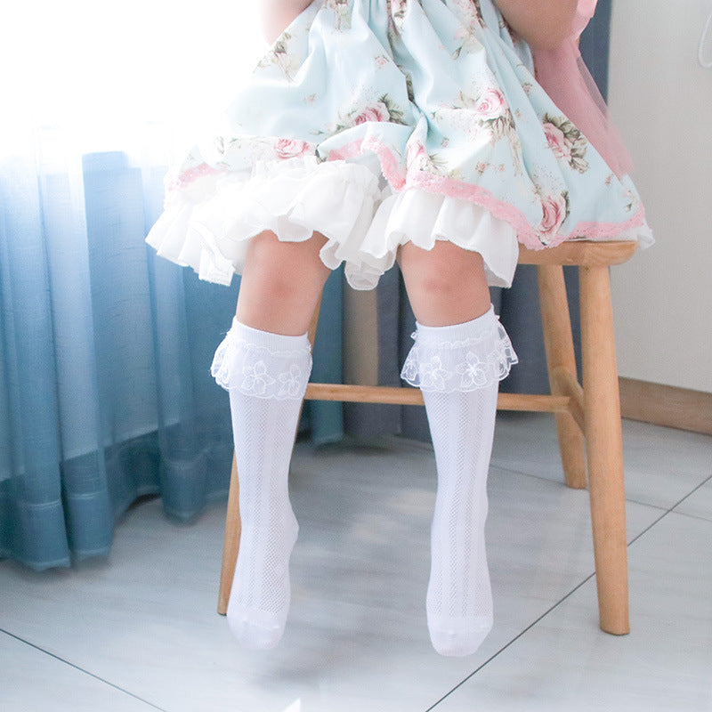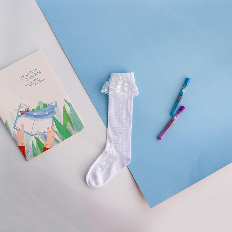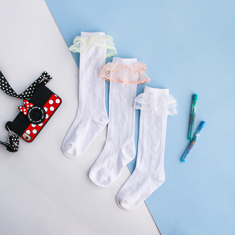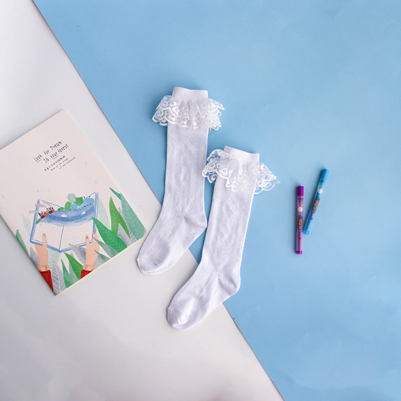 Children's socks spring and autumn thin long tube cotton socks for big children cute princess lace socks lace girls baby socks