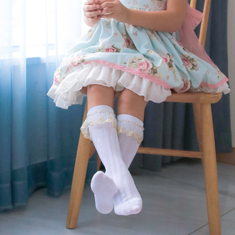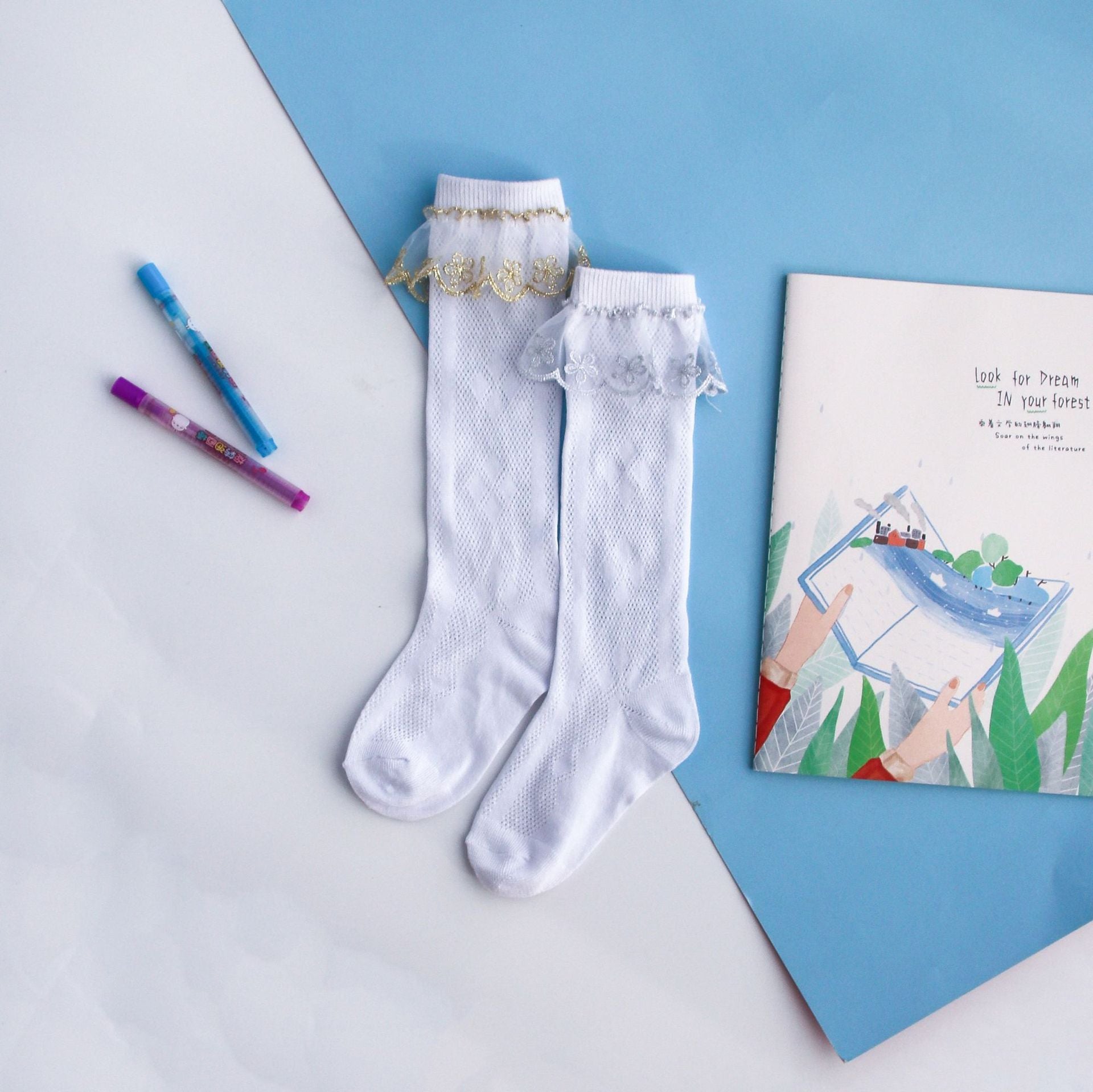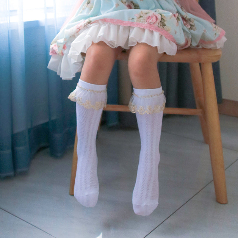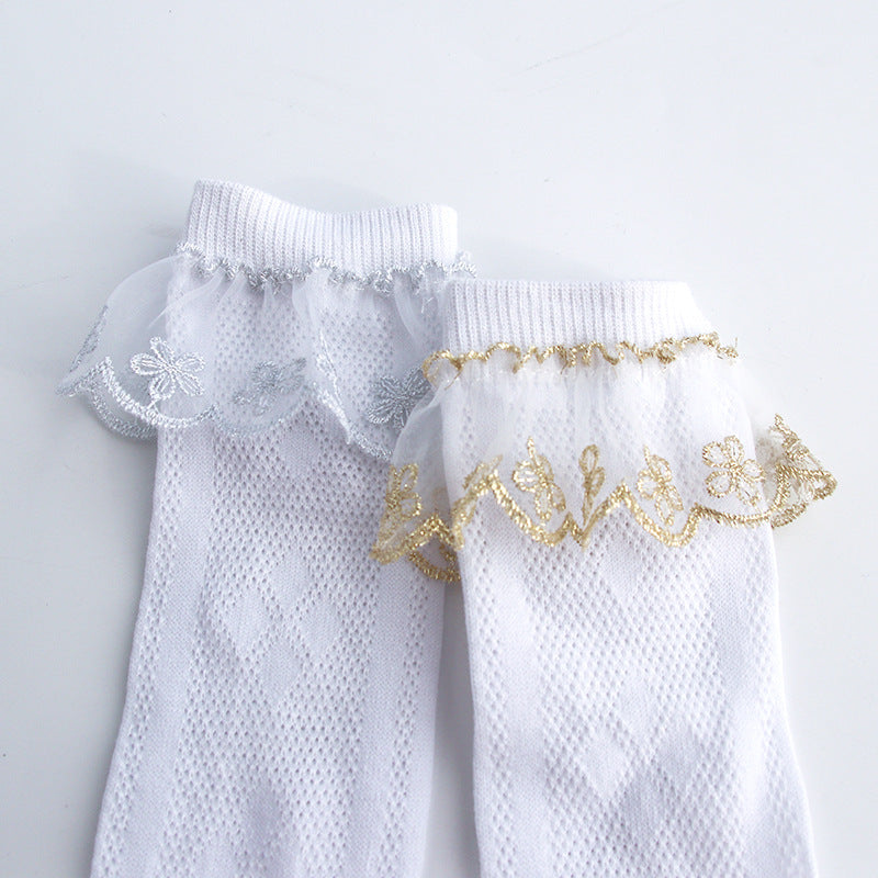 Children's stockings gold and silver lace lace socks mesh thin section children's socks princess lace baby socks girls socks