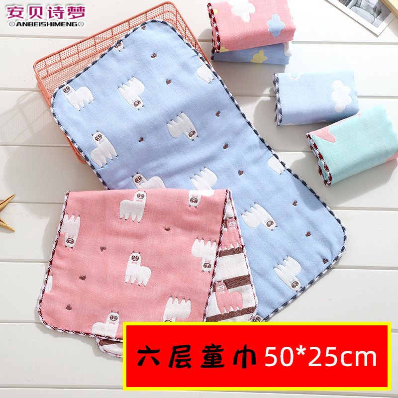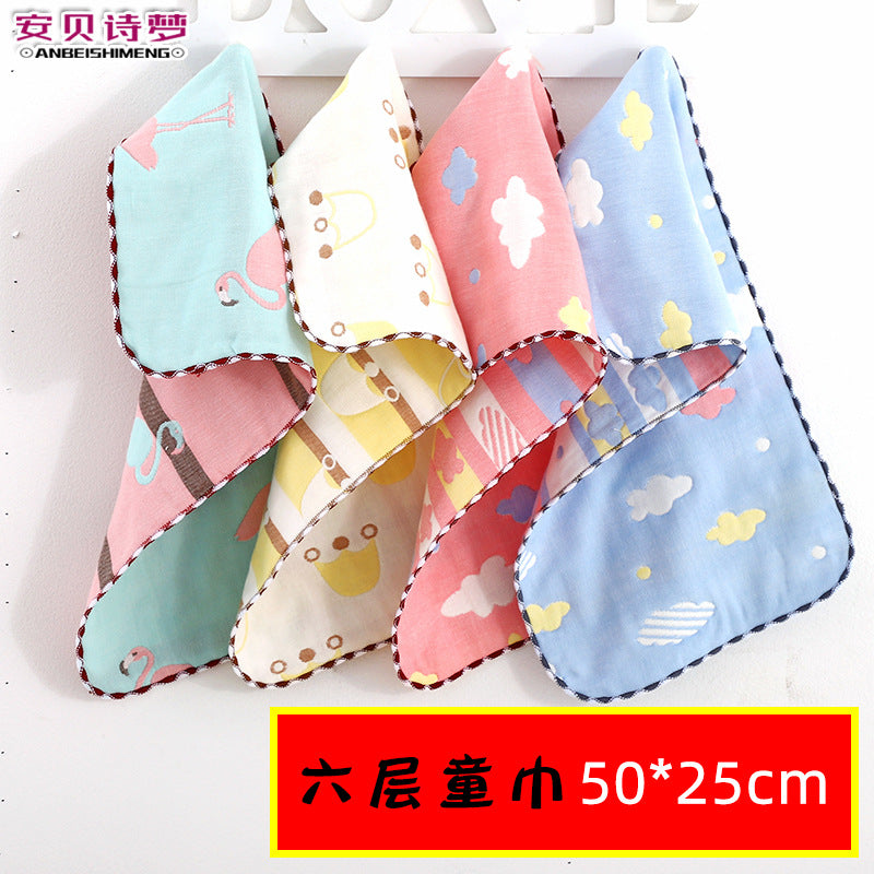 Children's towel gauze cotton six-layer cartoon kindergarten baby long small towel soft absorbent children's face and bath towel