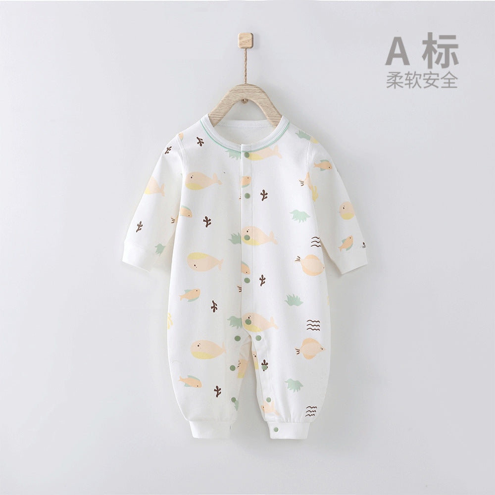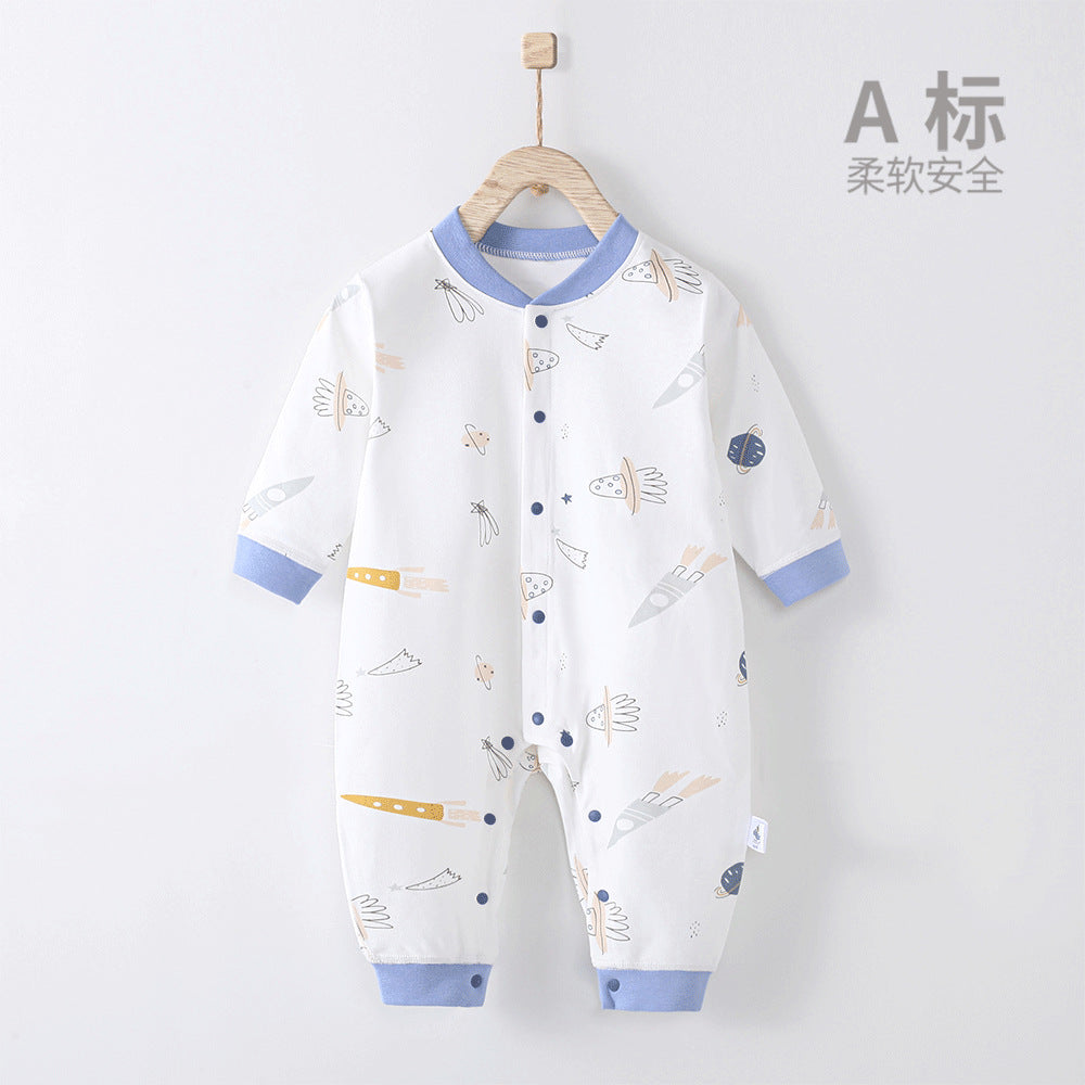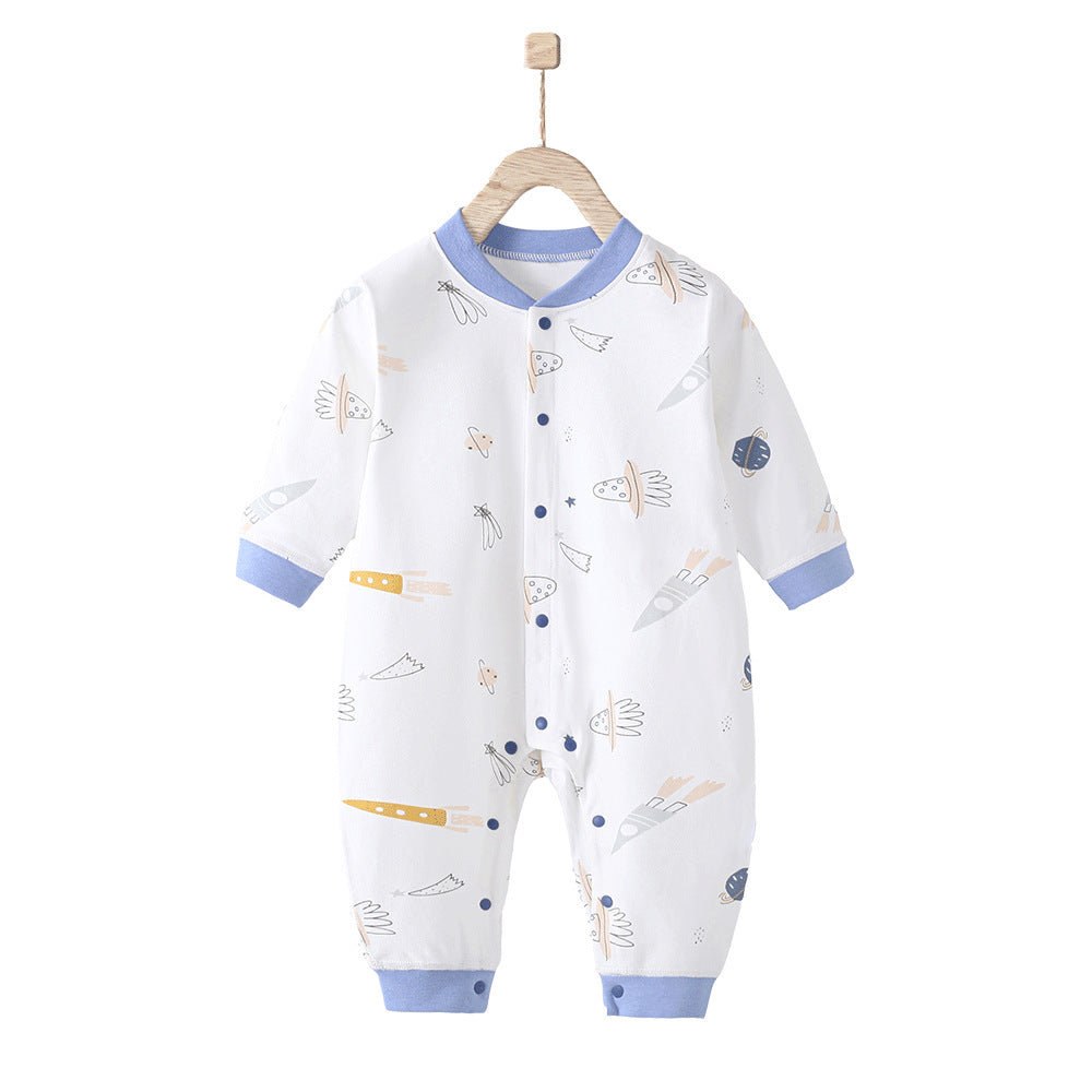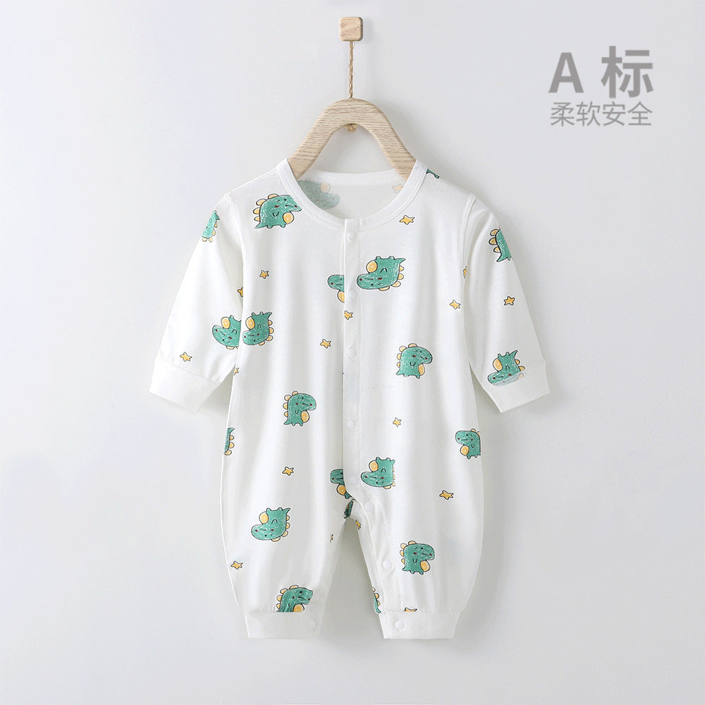 Climbing clothing baby clothes cotton spring and autumn summer long-sleeved boneless round neck to the door closed crotch baby pajamas baby jumpsuit
