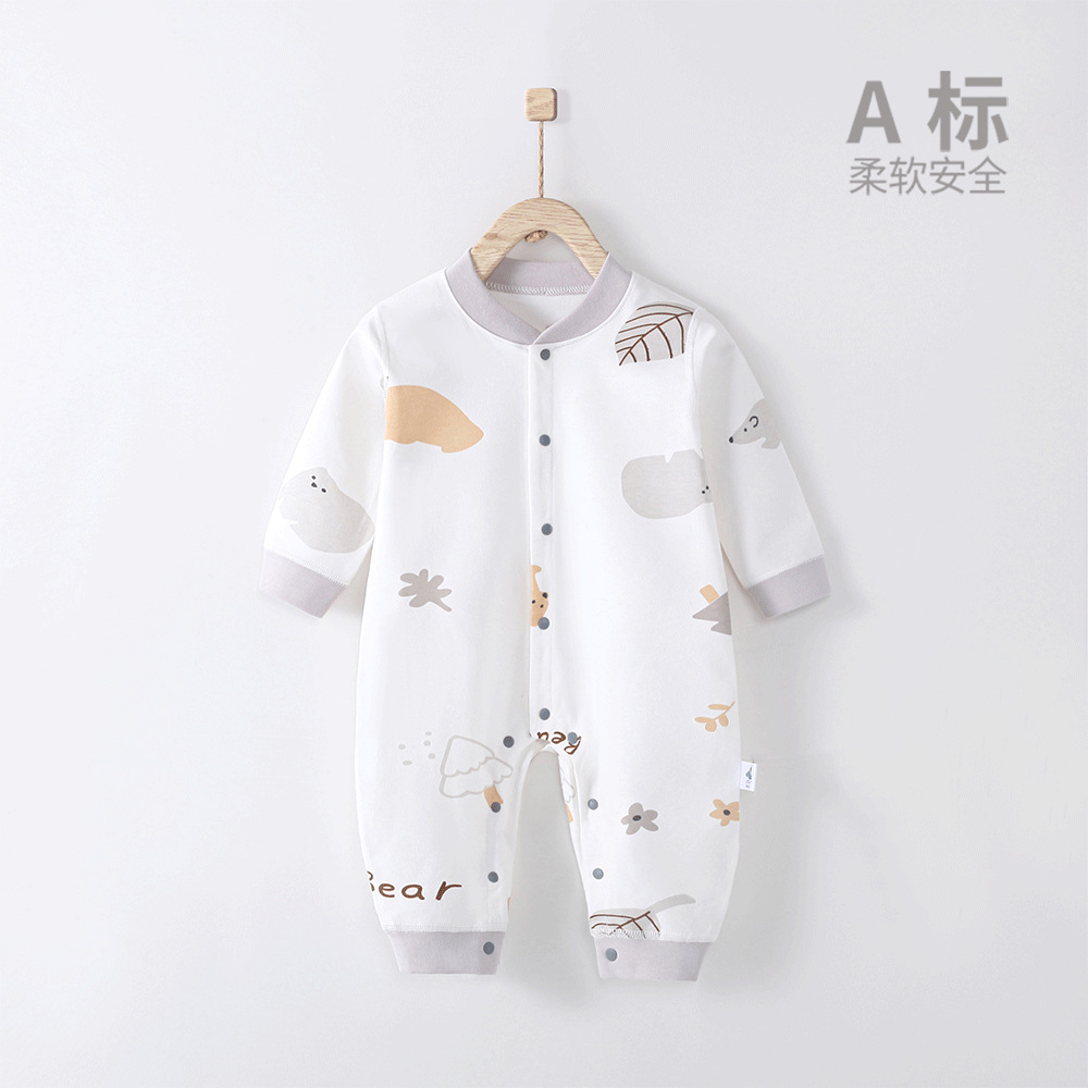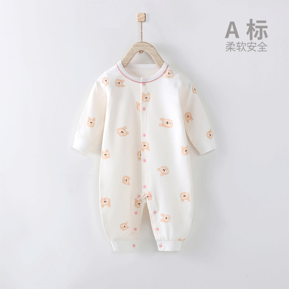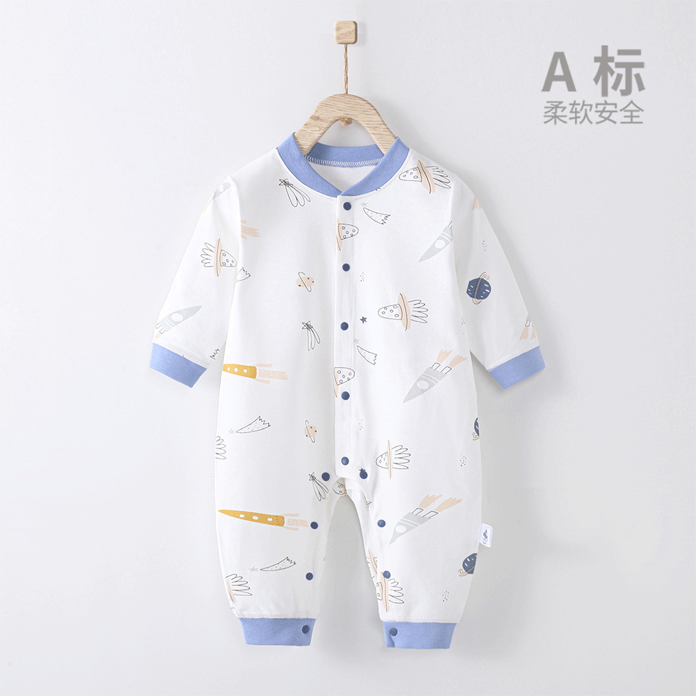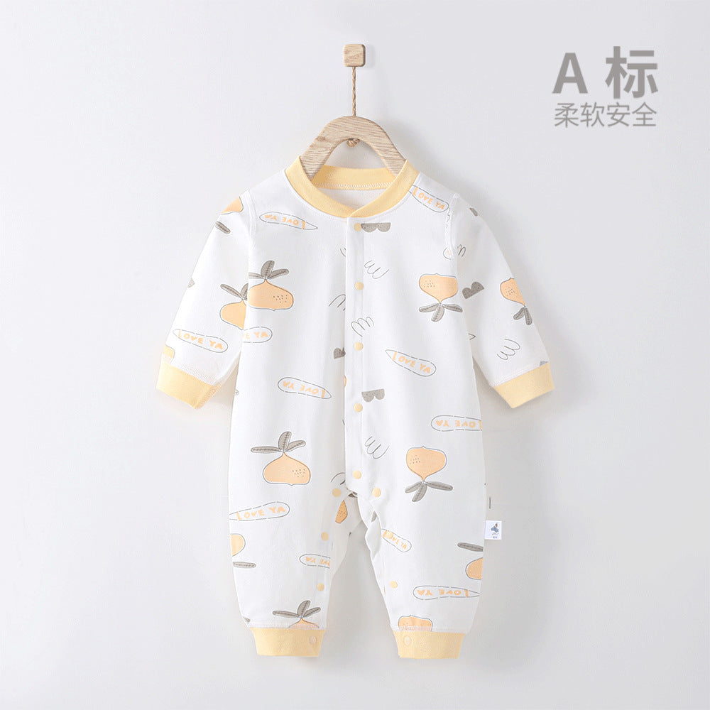 Climbing clothing baby clothes cotton spring and autumn summer long-sleeved boneless round neck to the door closed crotch baby pajamas baby jumpsuit